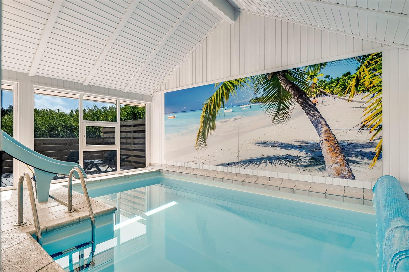 I den indendørs swimmingpool er der mulighed for leg og hyggeligt samvær. Swimmingpoolen måler op til 3,3 m i bredden, 4,9 m i længden og den er op til 1,4 m dyb. Vandet er mellem 24 og 28° C varmt. Swimmingpoolen har modstrømsanlæg. Der findes en vandrutsjebane.