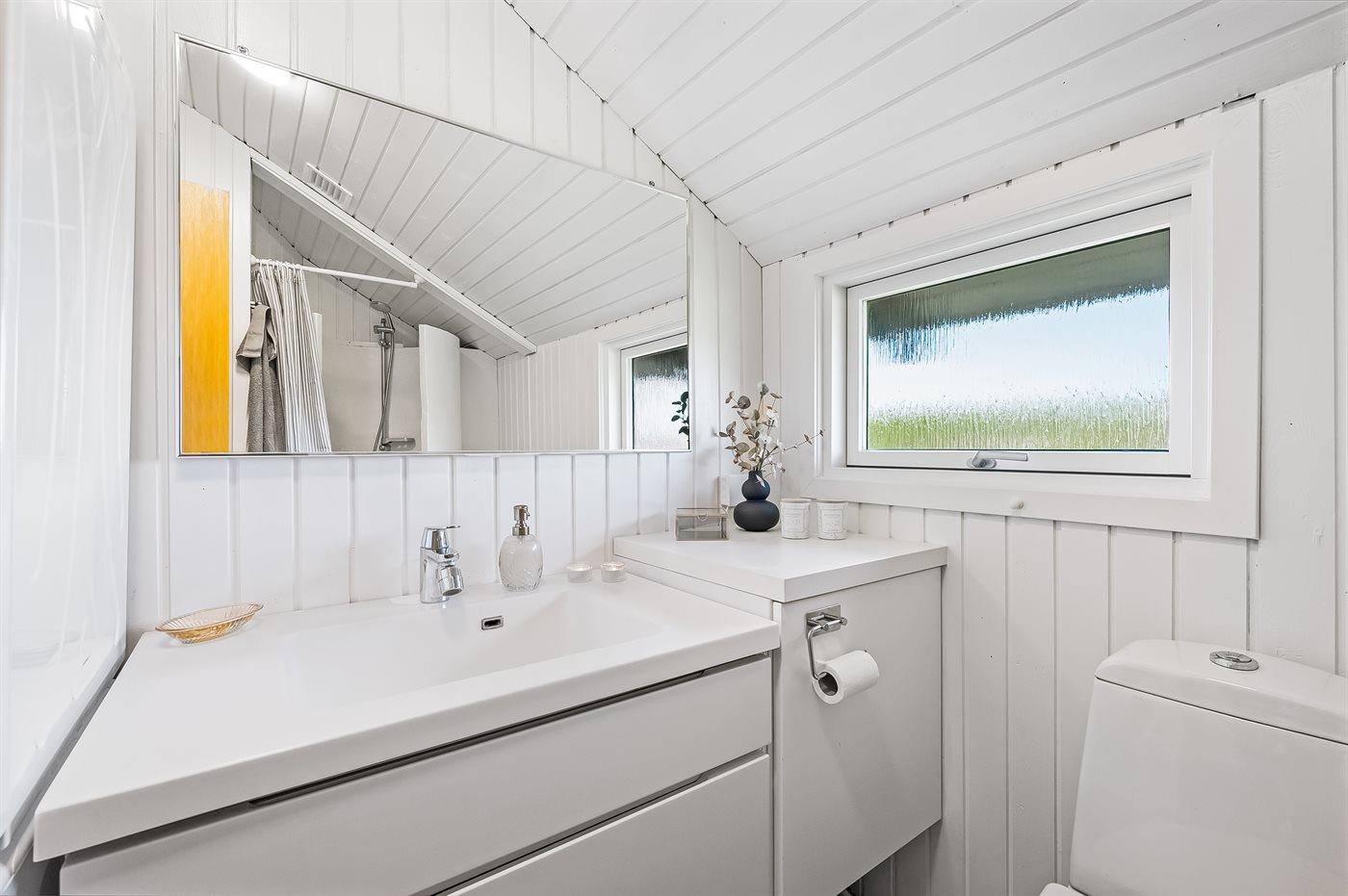 Der er 1 badeværelse med bruseniche og 1 toilet. I saunaen er der mulighed for afslapning.