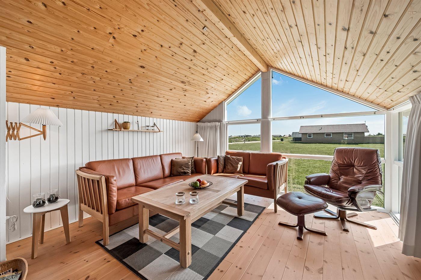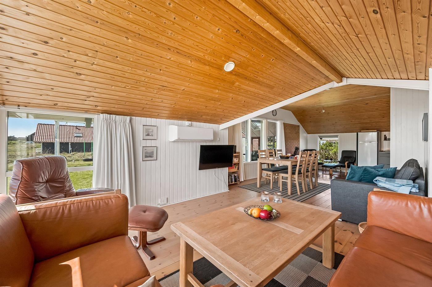 Hyggeligt feriehus kun 250 meter fra Vesterhavet med sauna, brændeovn og stor klitgrund.