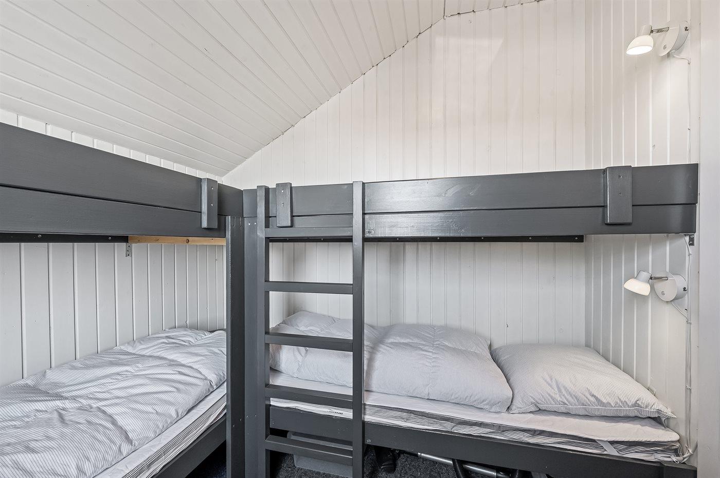 Der er i alt 2 soveværelser. Sovepladserne fordeler sig på: 2 sovepladser i dobbeltseng. 4 sovepladser i køjesenge. 2 sovepladser i sovesofa (enkelt). 2 af disse sovepladser befinder sig i stuen.