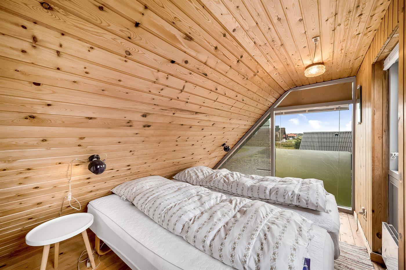 Der er i alt 3 soveværelser. Sovepladserne fordeler sig på: 4 sovepladser i dobbeltsenge. 2 sovepladser i enkeltsenge. Derudover er der 1 stk. barneseng.
