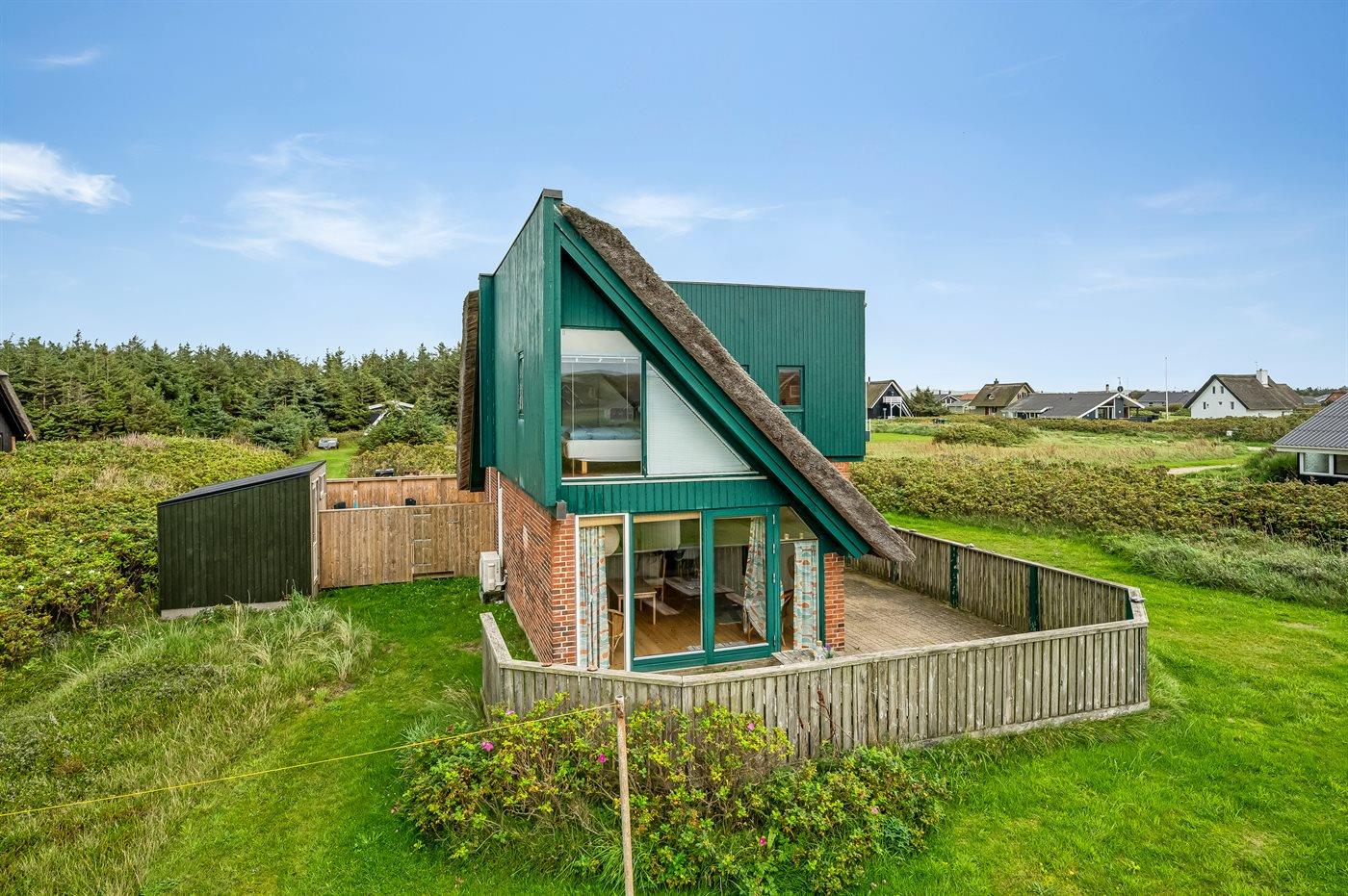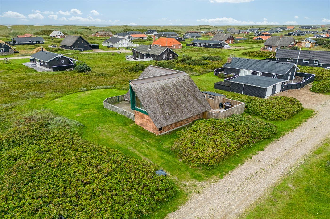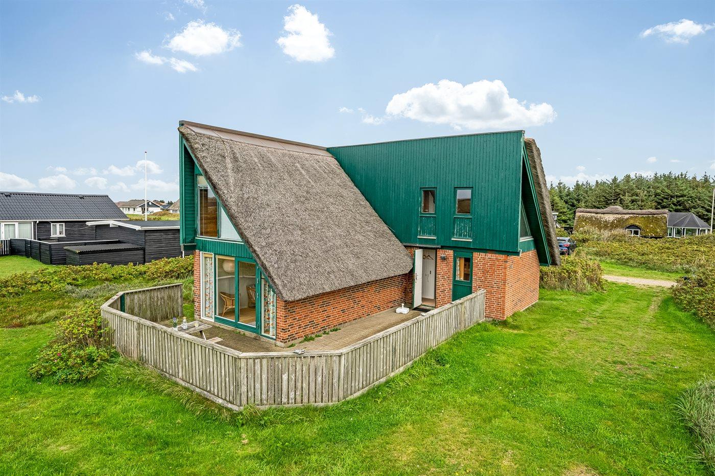 Et virkelig dejligt og hyggeligt sommerhus i 2 etager og med stråtag - attraktivt beliggende kun 200 m fra Vesterhavet på en natur-/klitgrund. Fra husets 1. sal er der god udsigt over landskabet. Et sommerhus med en virkelig spændende indretning - beliggende i et område med gode bade- og fiskemuligheder.