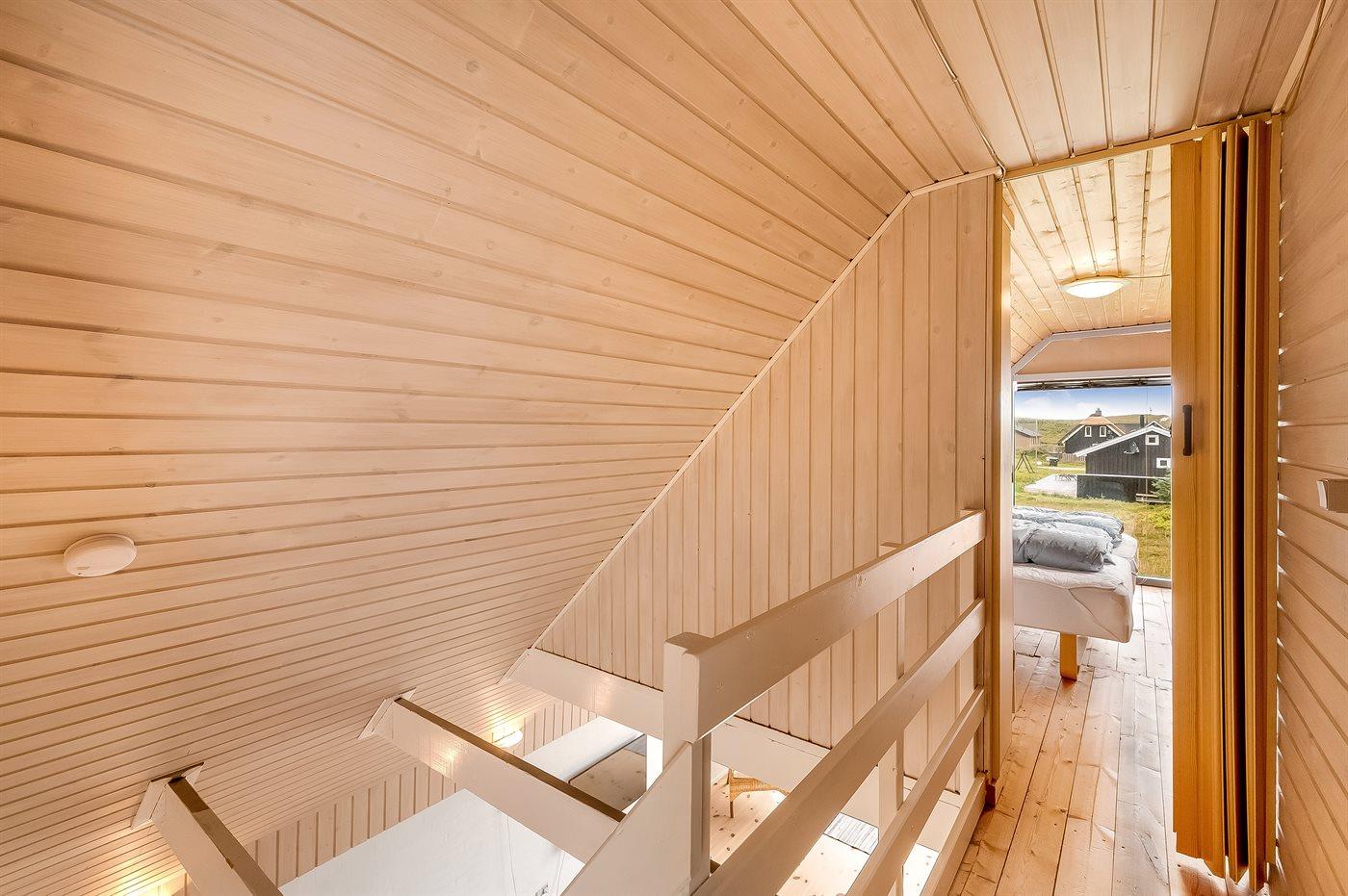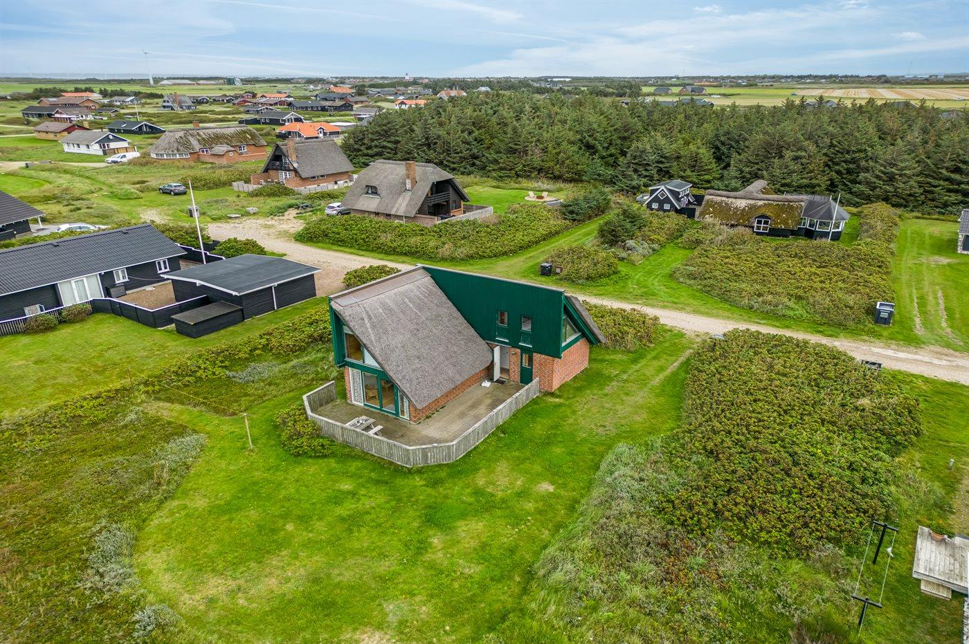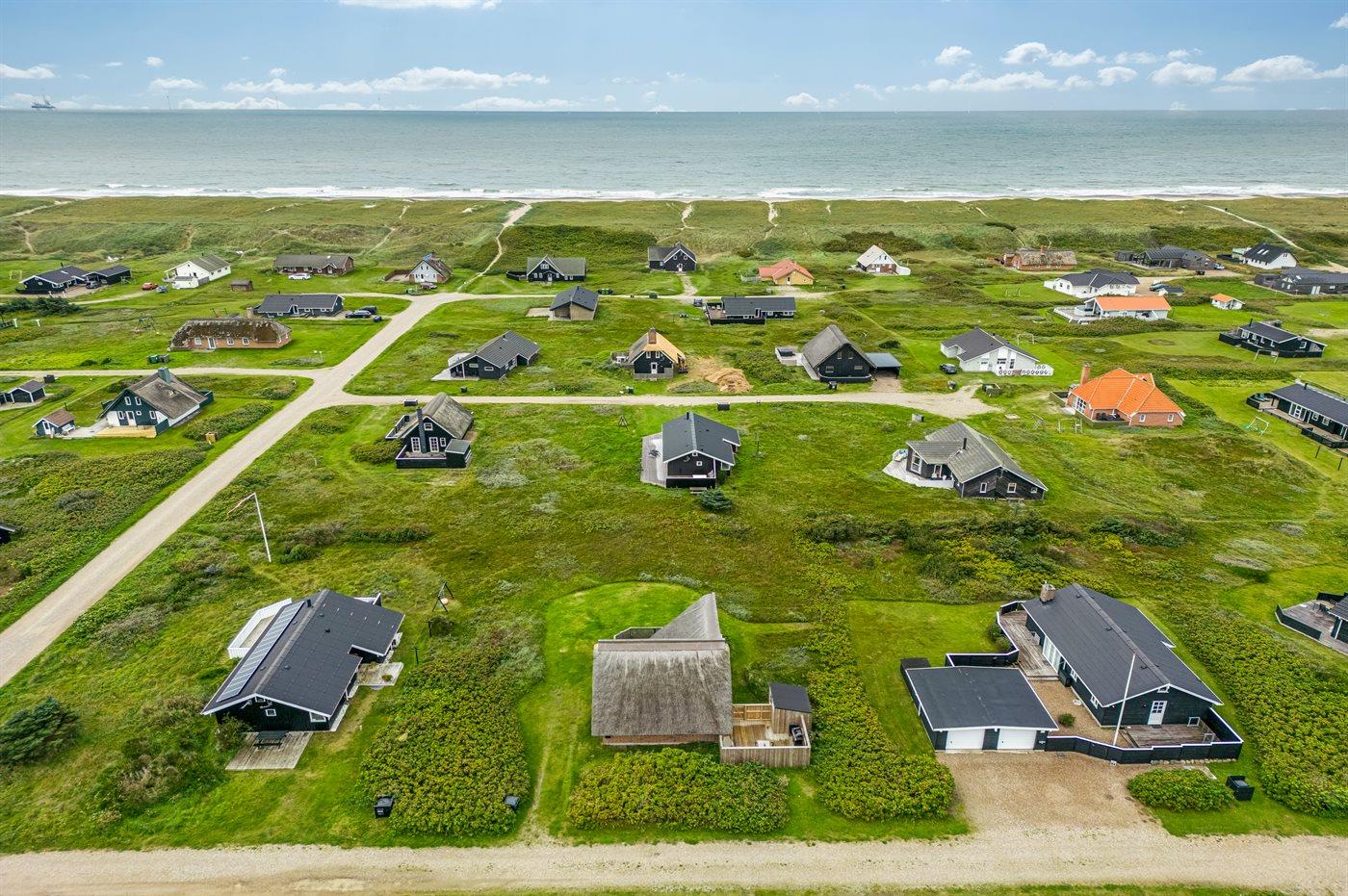 Et virkelig dejligt og hyggeligt sommerhus i 2 etager og med stråtag - attraktivt beliggende kun 200 m fra Vesterhavet på en natur-/klitgrund. Fra husets 1. sal er der god udsigt over landskabet. Et sommerhus med en virkelig spændende indretning - beliggende i et område med gode bade- og fiskemuligheder.