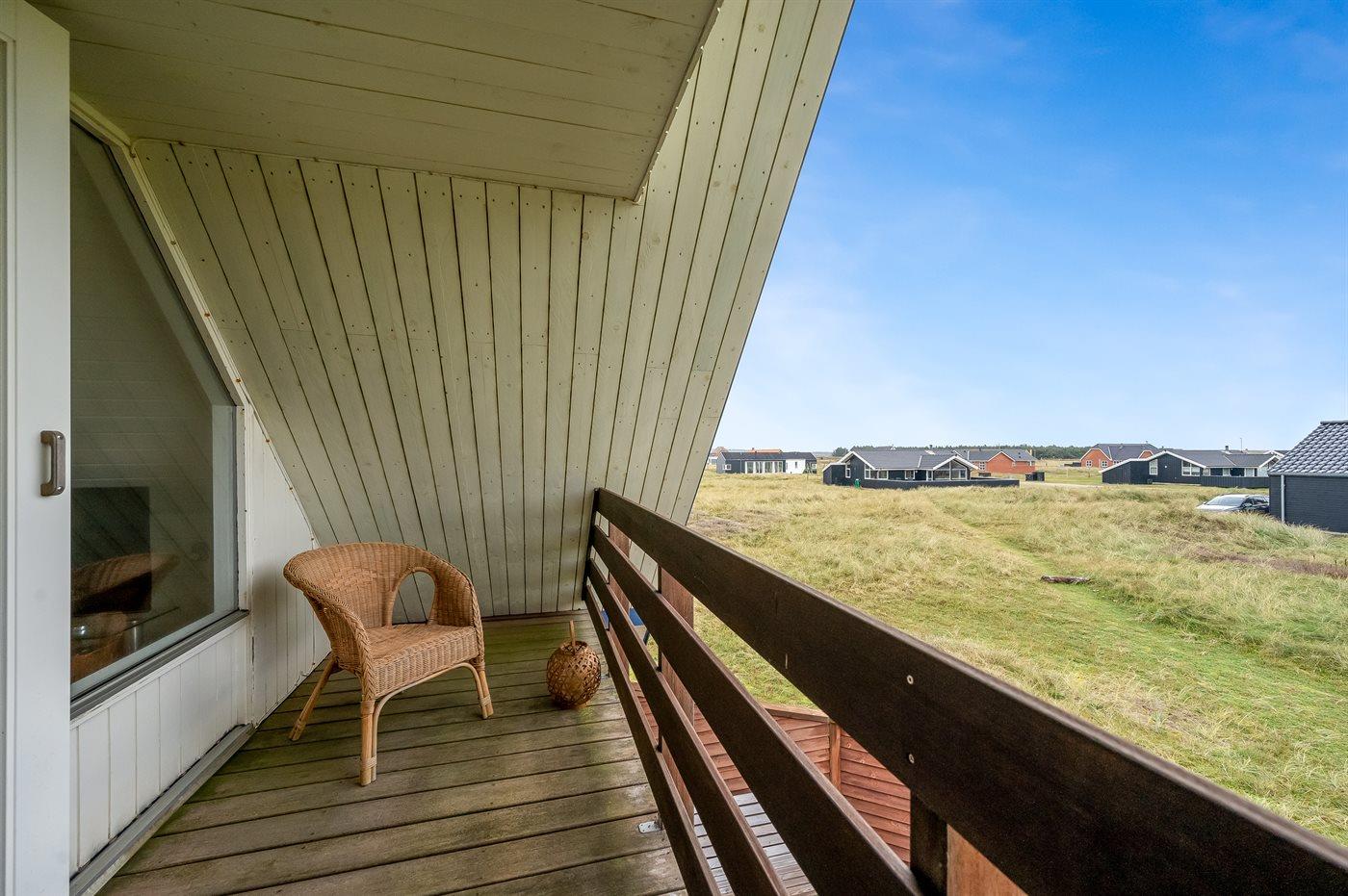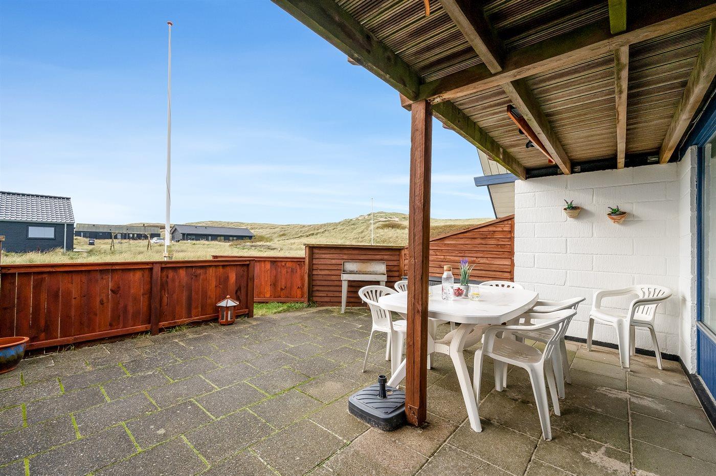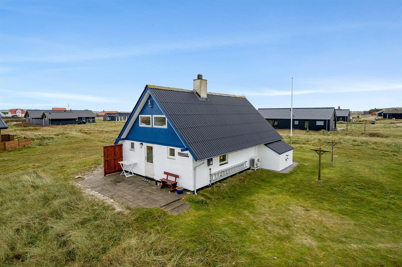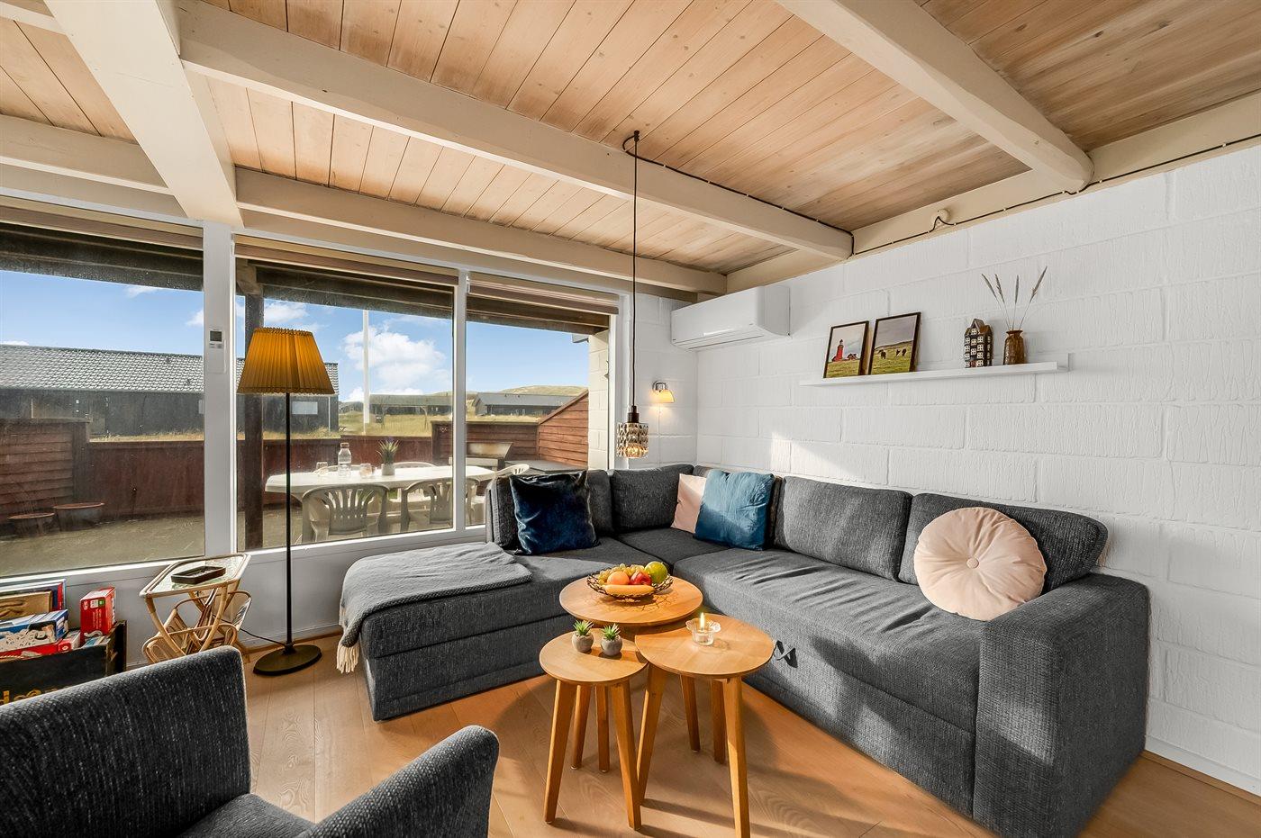 Lige ved Vesterhavet ligger dette dejlige sommerhus på en meget stor grund. Fra såvel altanen som fra opholdsstuen på 1. sal kan man nyde solnedgangen over klitterne.
