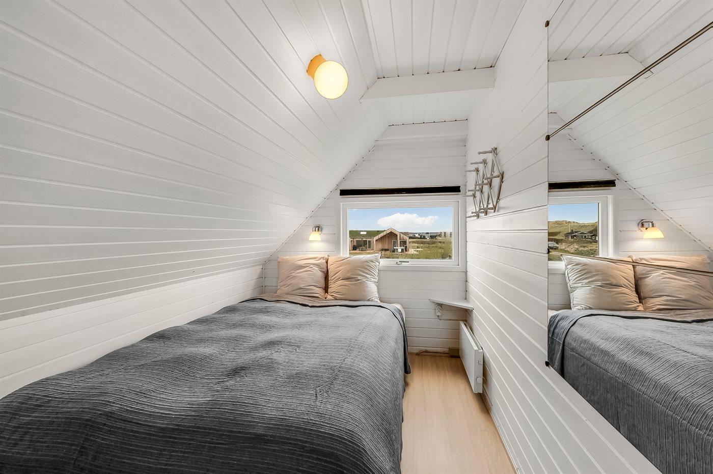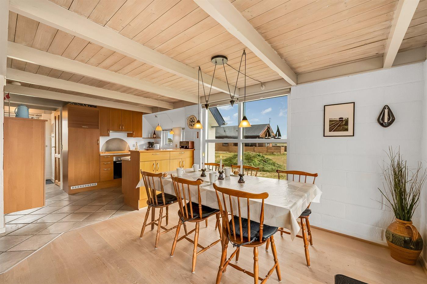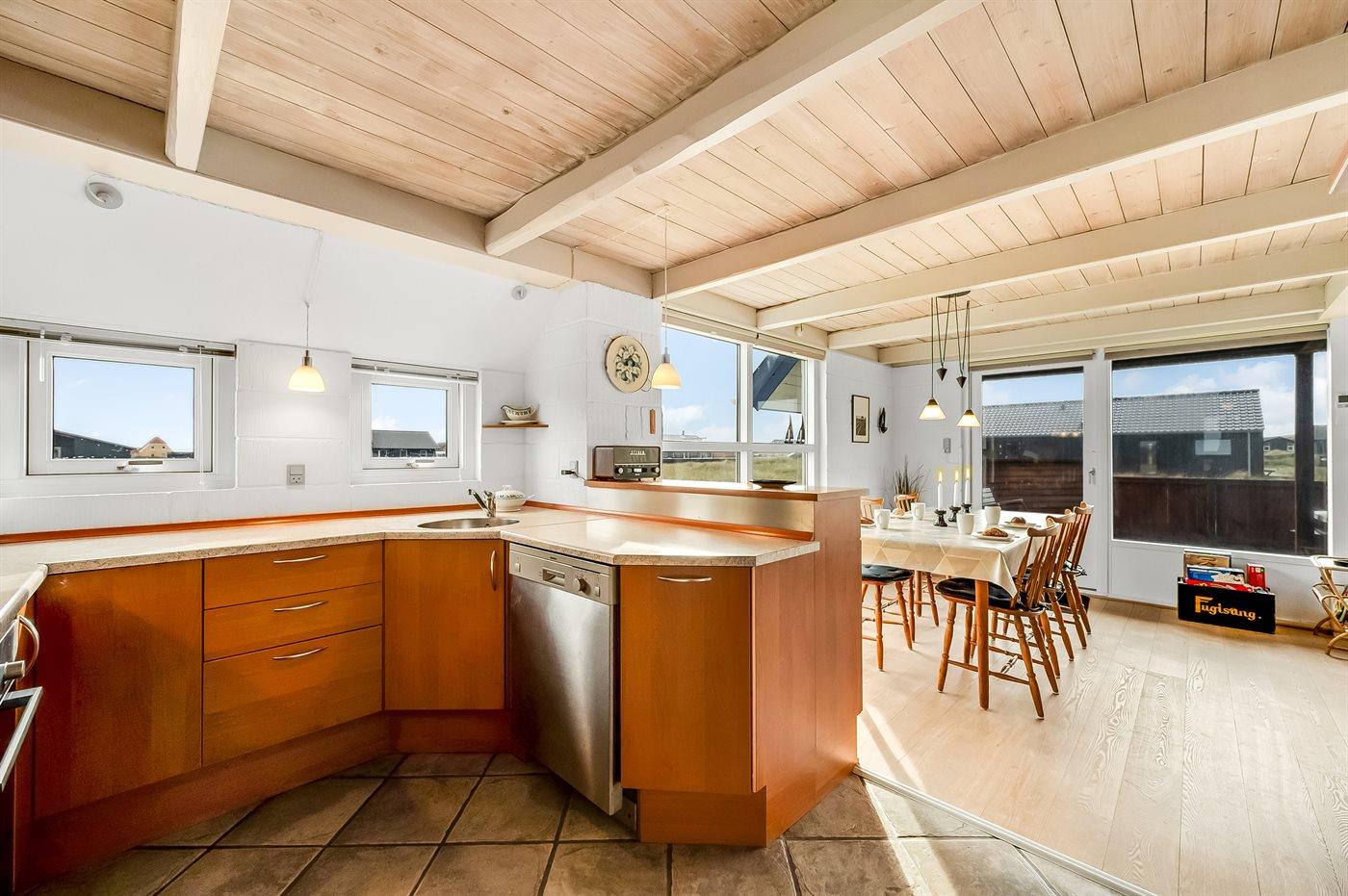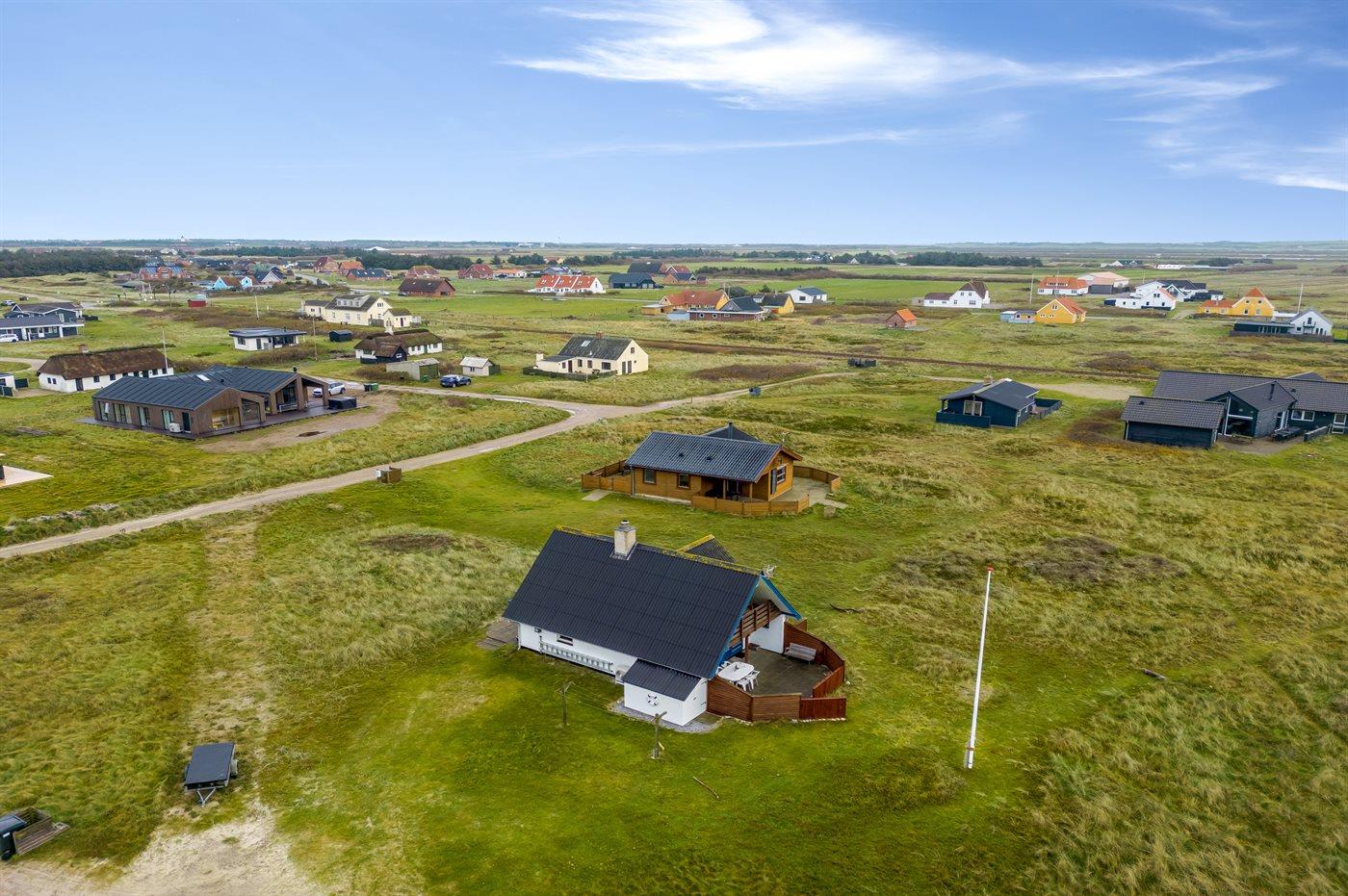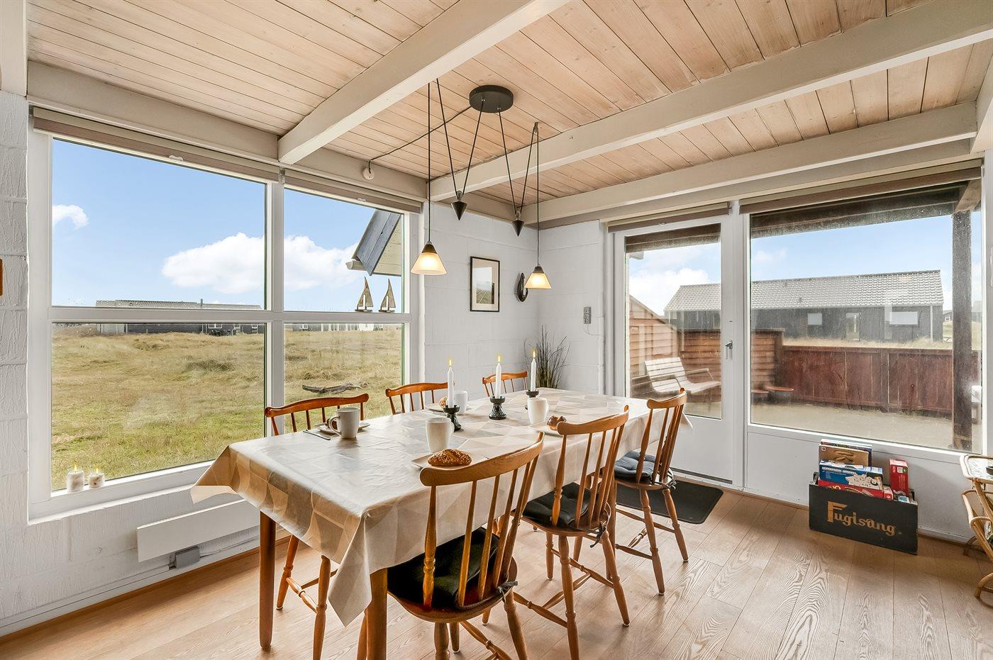 Lige ved Vesterhavet ligger dette dejlige sommerhus på en meget stor grund. Fra såvel altanen som fra opholdsstuen på 1. sal kan man nyde solnedgangen over klitterne.