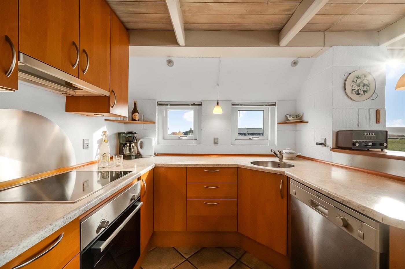 Køkkenet er udstyret med 1 køleskab. Der er 4 keramiske kogeplader, varmluftovn, mikrobølgeovn samt opvaskemaskine.