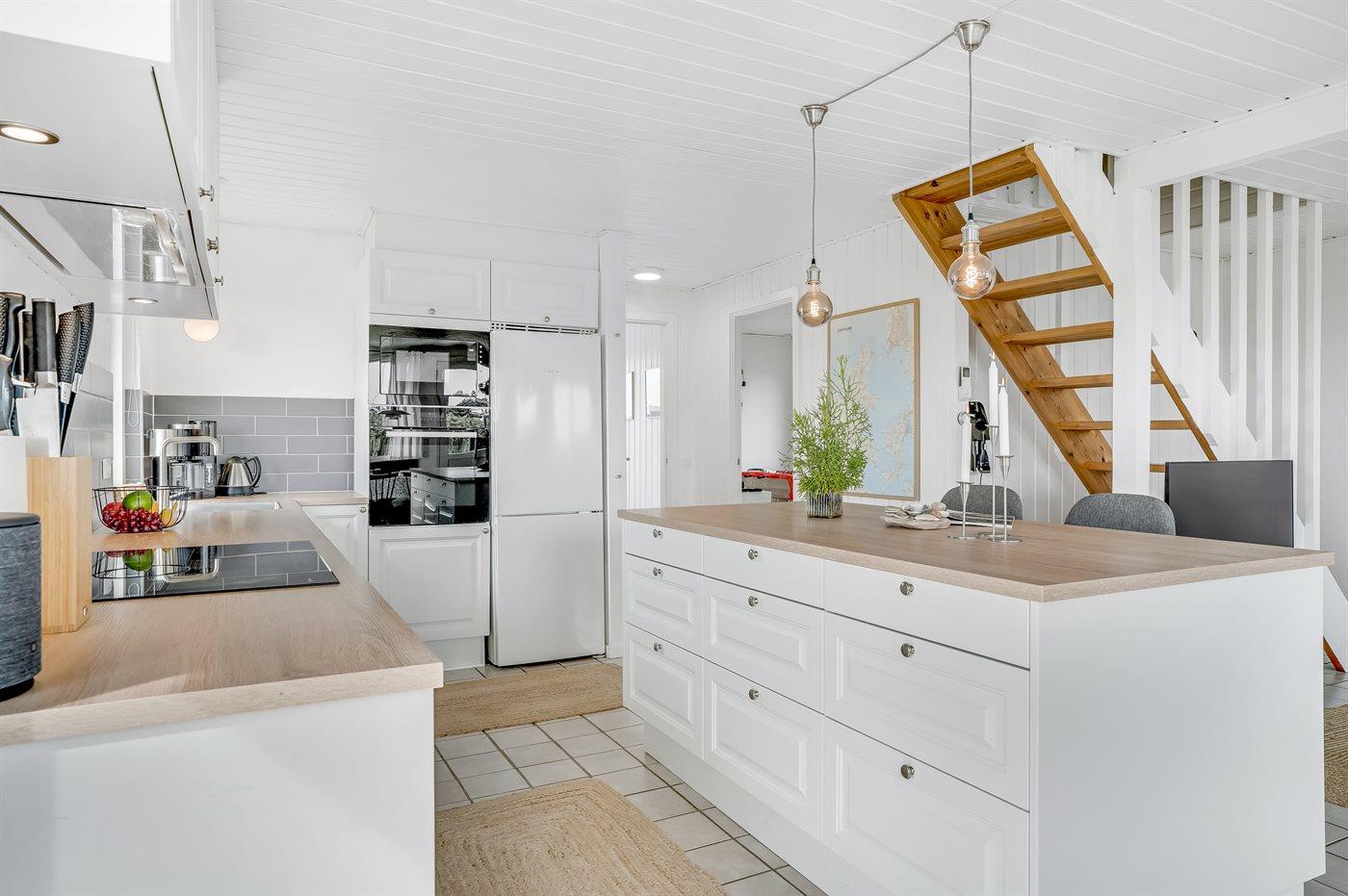 Her får du 117 m² moderne komfort kombineret med hyggelig sommerhusstemning. Sommerhuset har i alt 8 sovepladser, samt en barneseng, men egner sig bedst til 6 personer samt 1 barn op til 3 år. Sovepladserne er fordelt med 3 værelser med dobbeltsenge og en sovesofa i aktivitetsrummet. Der er desuden barneseng og høj stol.