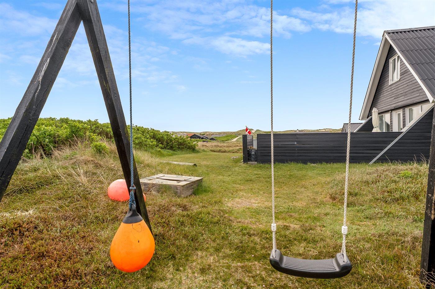 Charmerende sommerhus nær Vesterhavet med sauna, aktivitetsrum og stor terrasse.