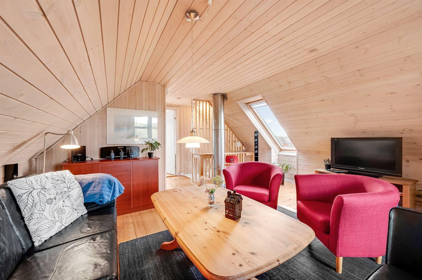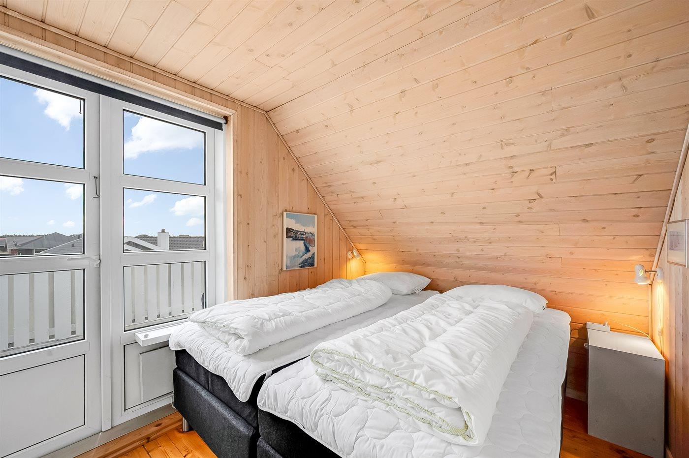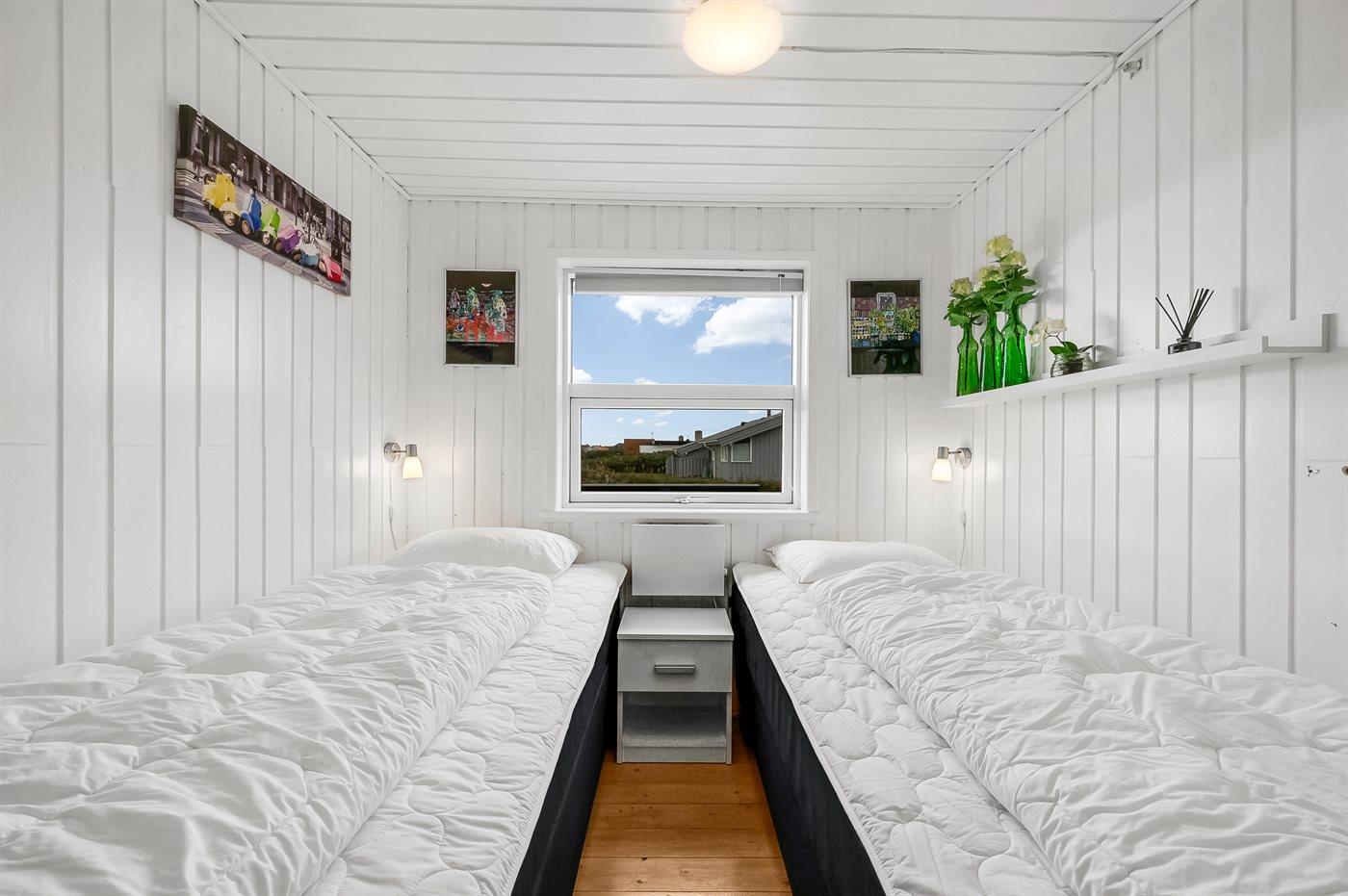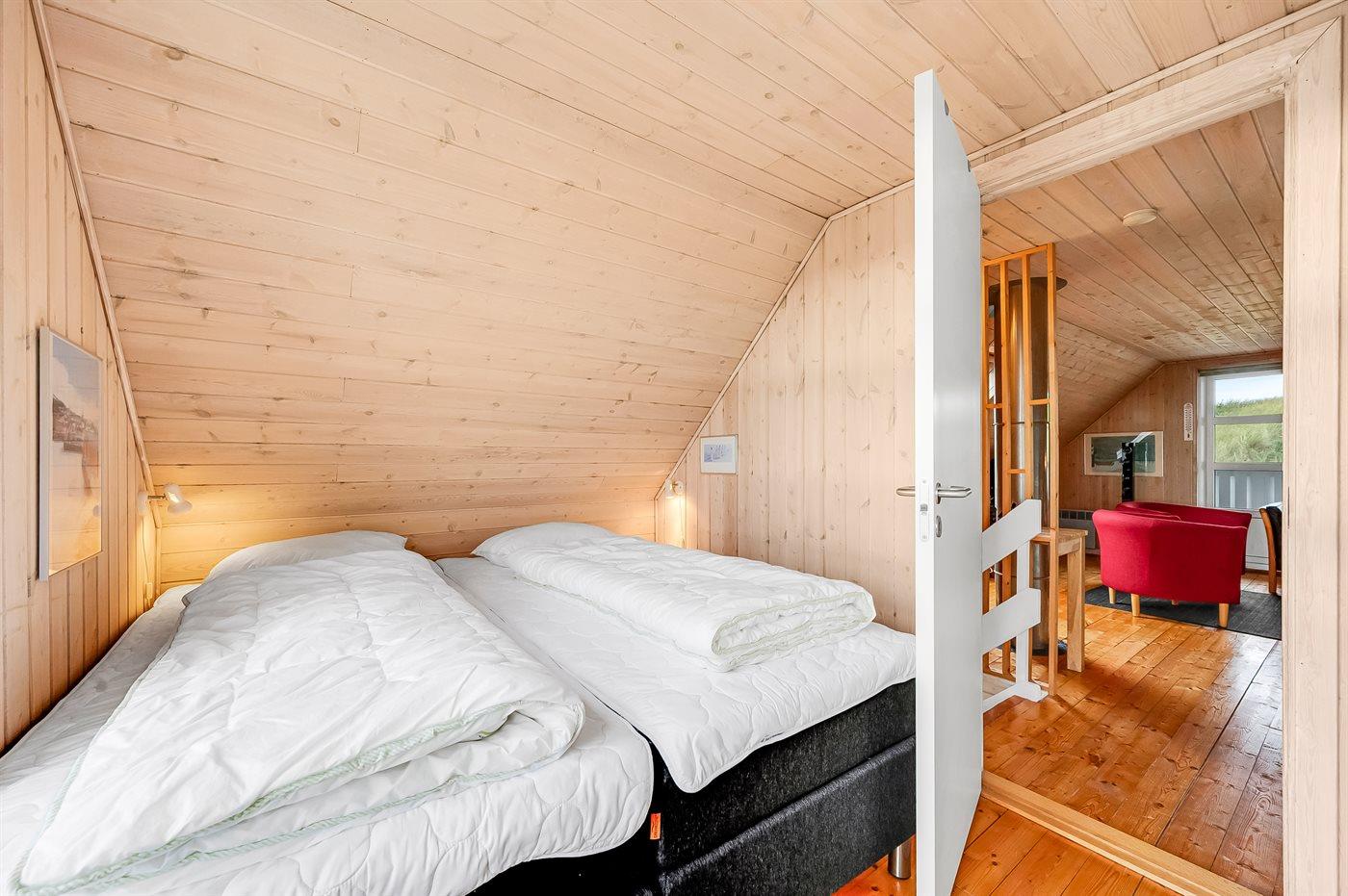 Der er i alt 3 soveværelser. Sovepladserne fordeler sig på: 4 sovepladser i dobbeltsenge. 2 sovepladser i enkeltsenge.