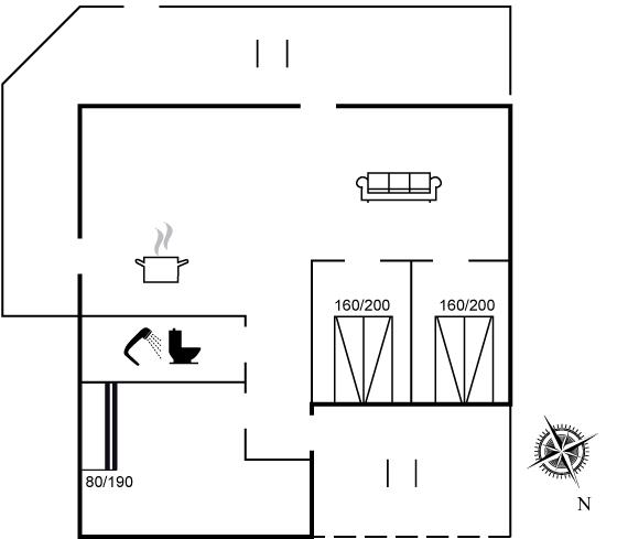 Der er i alt 3 soveværelser. Sovepladserne fordeler sig på: 4 sovepladser i dobbeltsenge. 2 sovepladser i køjeseng.