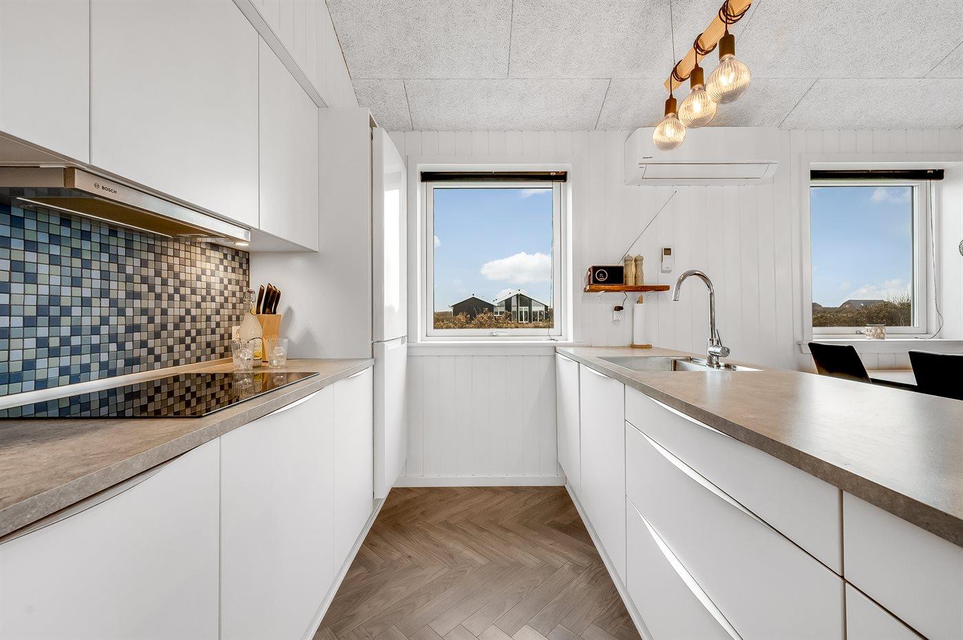 Køkkenet er udstyret med 1 køleskab. Der er 4 induktionskogeplader, varmluftovn, mikrobølgeovn samt opvaskemaskine.