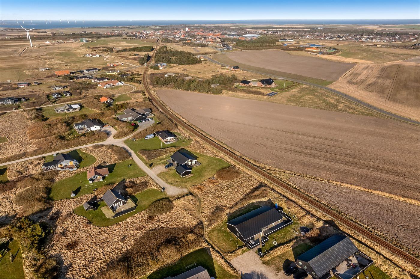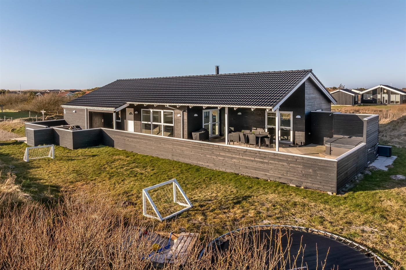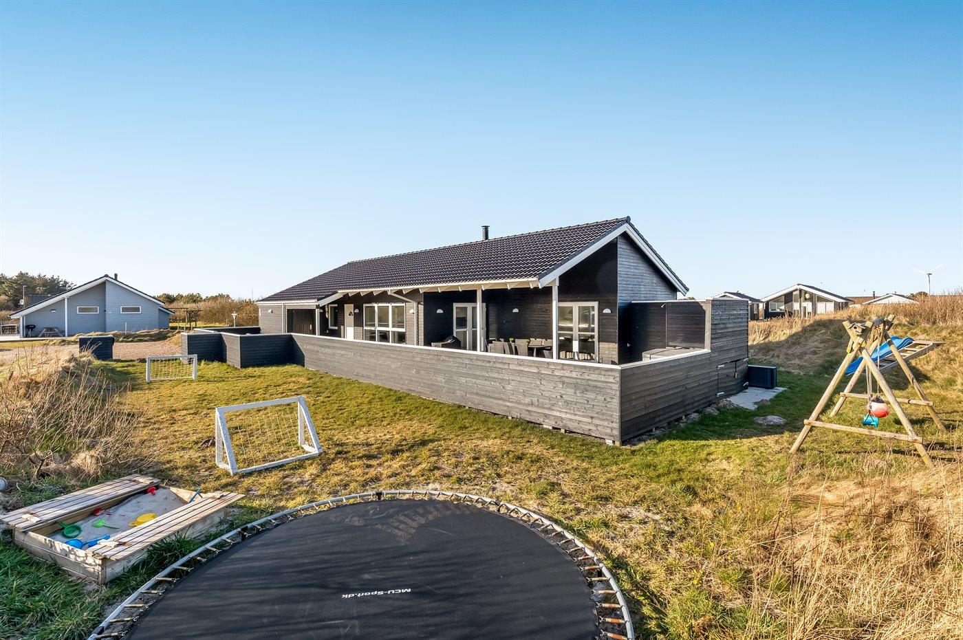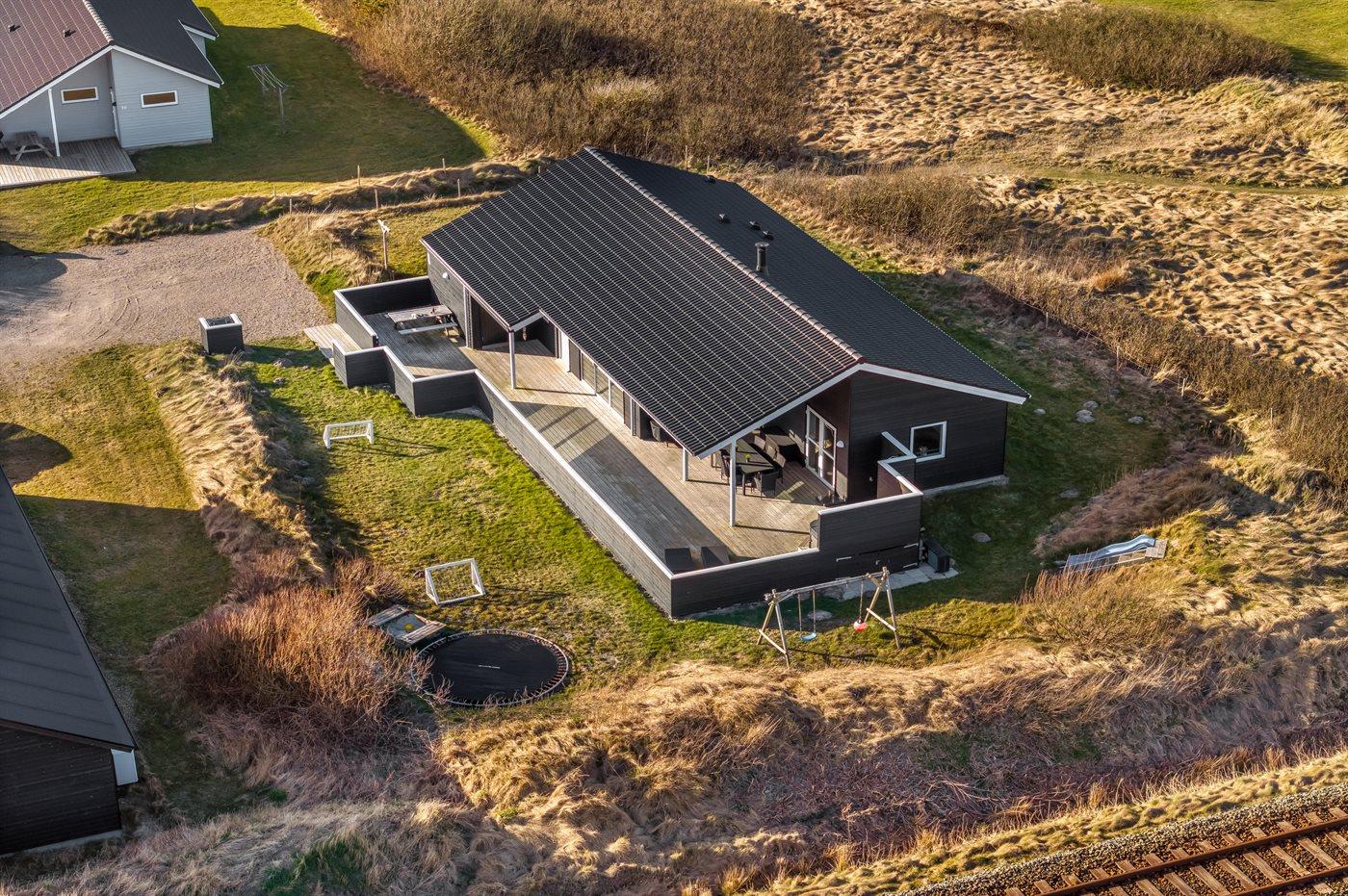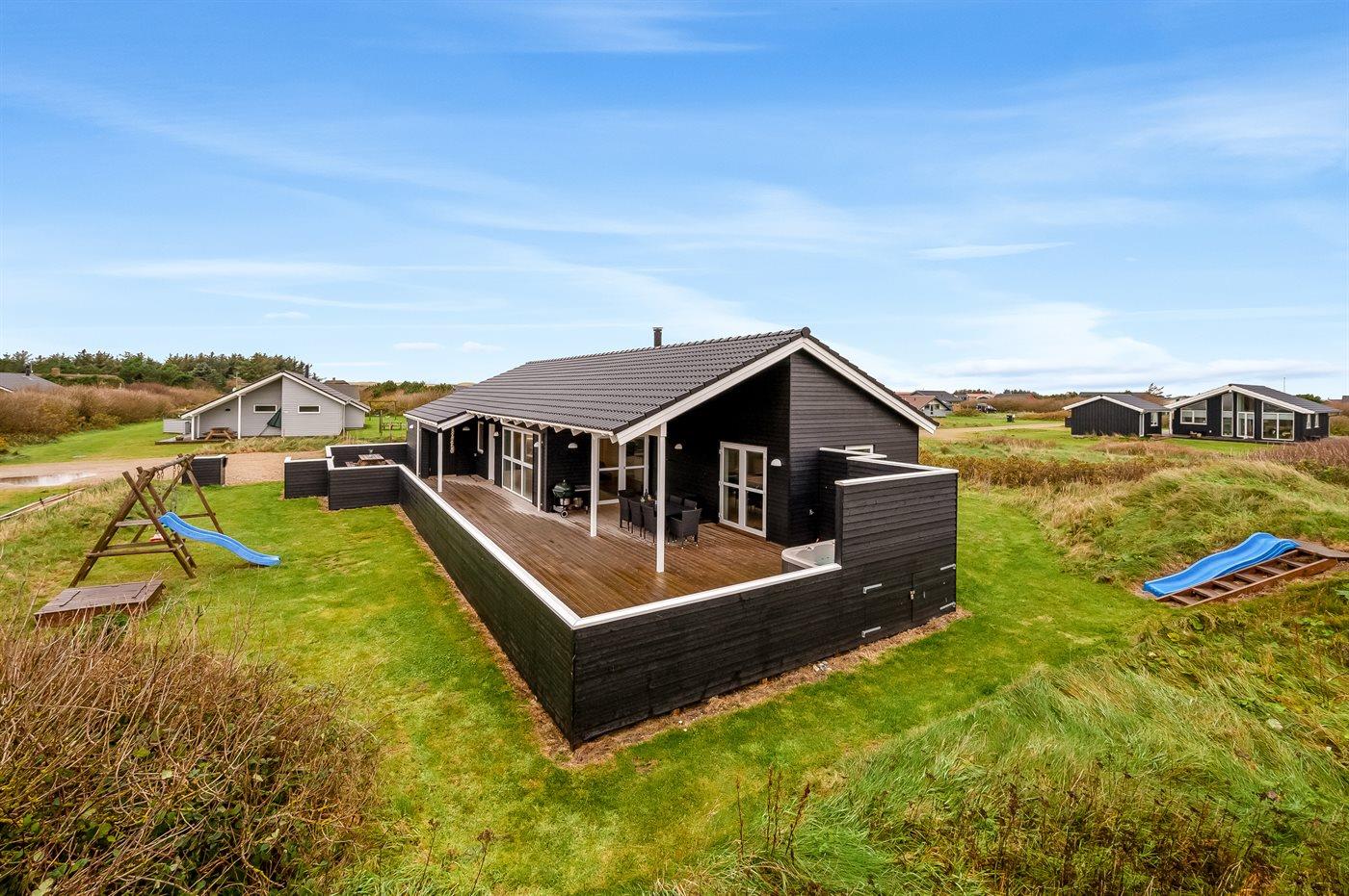 Ferieboligen er beliggende på en 1206 m² stor klitgrund. Der er 400 m til havet. Nærmeste forretning er beliggende i en afstand af 1000 m. Til ferieboligen hører 110 m² terrasseareal. Desuden er der 20 m² overdækket terrasse. Heraf i alt 110 m² lukket terrasse. Gynge. Sandkasse. Rutchebane. Udendørs bruser. Der er installeret stik til opladning af elbil. Parkering ved ferieboligen.
