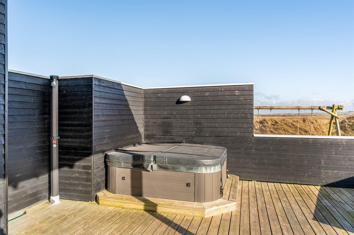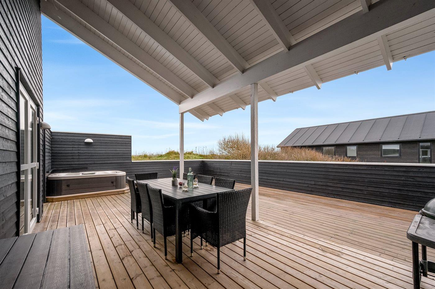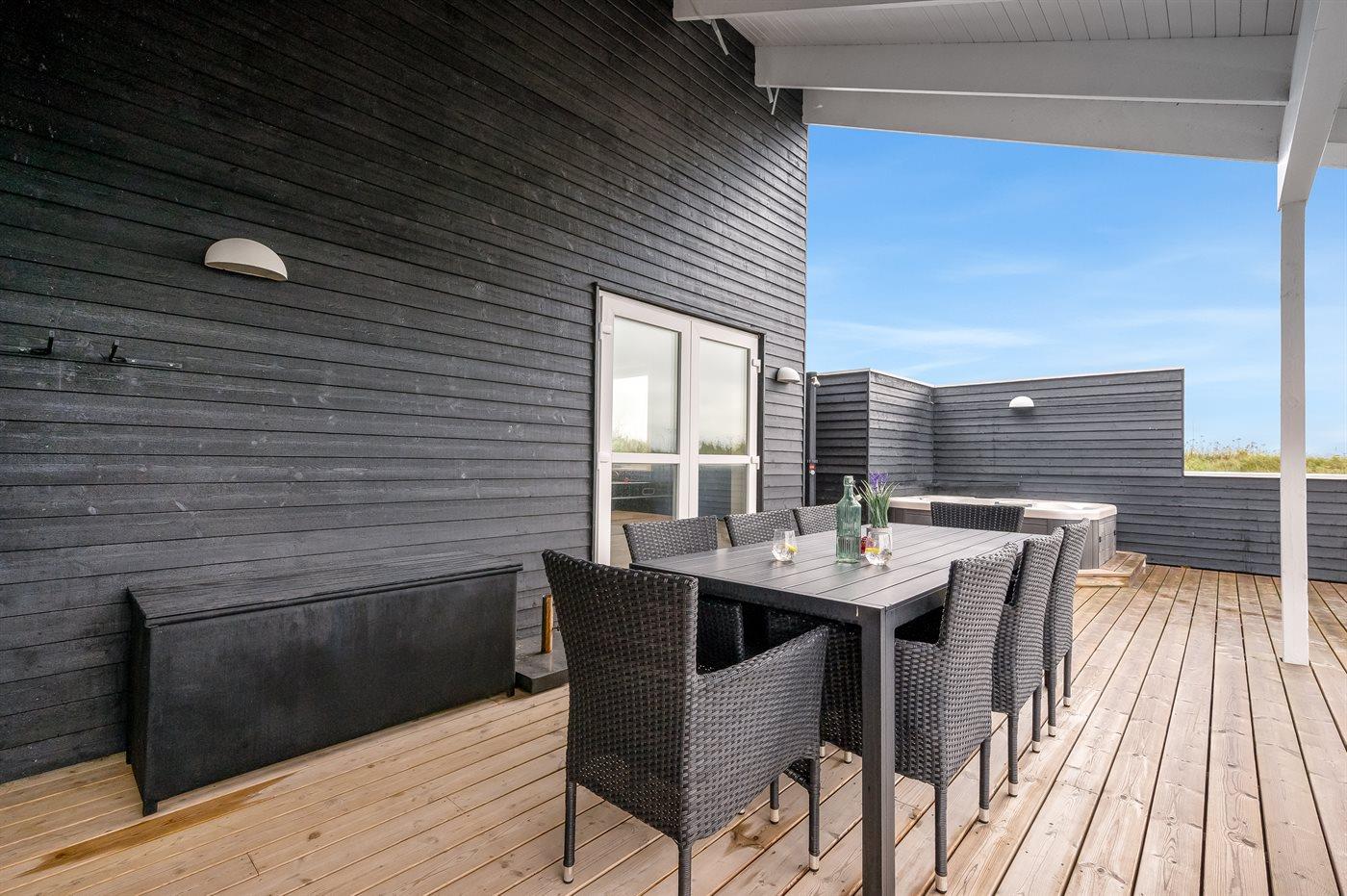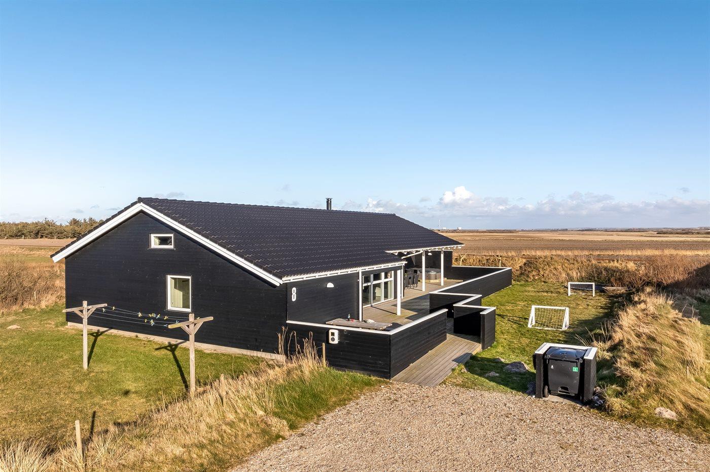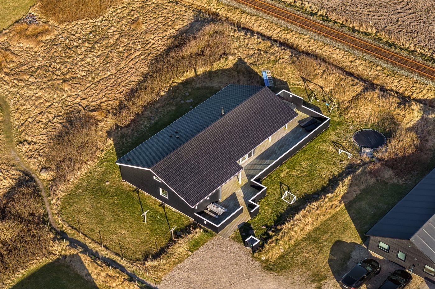 Ferieboligen er beliggende på en 1206 m² stor klitgrund. Der er 400 m til havet. Nærmeste forretning er beliggende i en afstand af 1000 m. Til ferieboligen hører 110 m² terrasseareal. Desuden er der 20 m² overdækket terrasse. Heraf i alt 110 m² lukket terrasse. Gynge. Sandkasse. Rutchebane. Udendørs bruser. Der er installeret stik til opladning af elbil. Parkering ved ferieboligen.