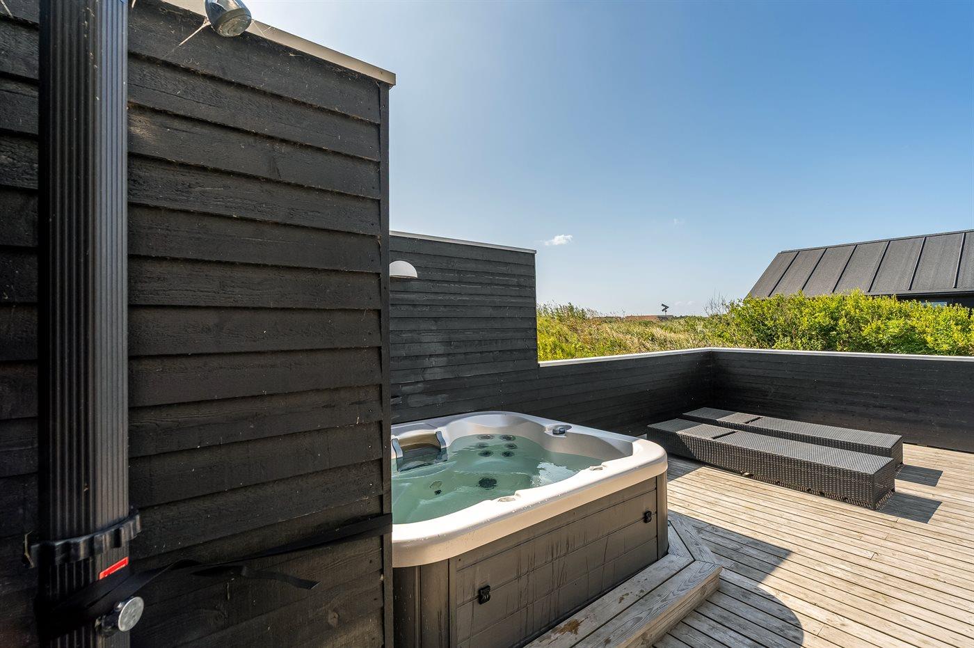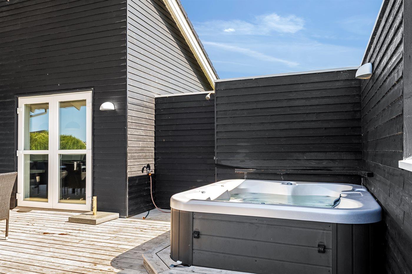 Der er mulighed for afslapning i udendørs standvandsspa til 5 personer.