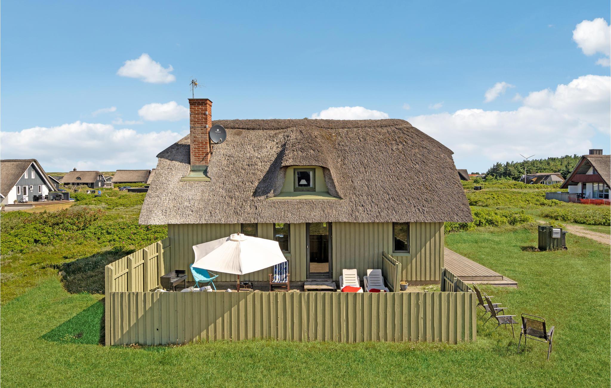 Velkommen til dette indbydende stråtækte hus, som med sin beliggenhed tæt på stranden er det ideelle sted for en uforglemmelig ferie ved Vesterhavet. Loftsbjælkerne og det rustikke look får rummene til at ose af hygge og varme! Huset er den ideelle base for en afslappende ferie tæt på naturen. Slap af sammen om aftenen i den hyggelige stue, hvor den store hjørnesofa indbyder til at sætte sig godt til rette med en god kop kaffe og lidt lækker kage. Tænd op i brændeovnen og lyt til flammernes knitren.
