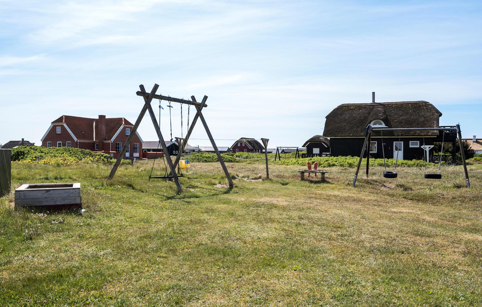 Gå ud på den overdækkede terrasse med masser af siddepladser og gode rammer til spisning udendørs. Nyd solen på liggestolene eller se børnene lege på gyngerne lige ved siden af ??huset. Brug haven til hyggelige grillaftener eller afslappende timer med en bog.