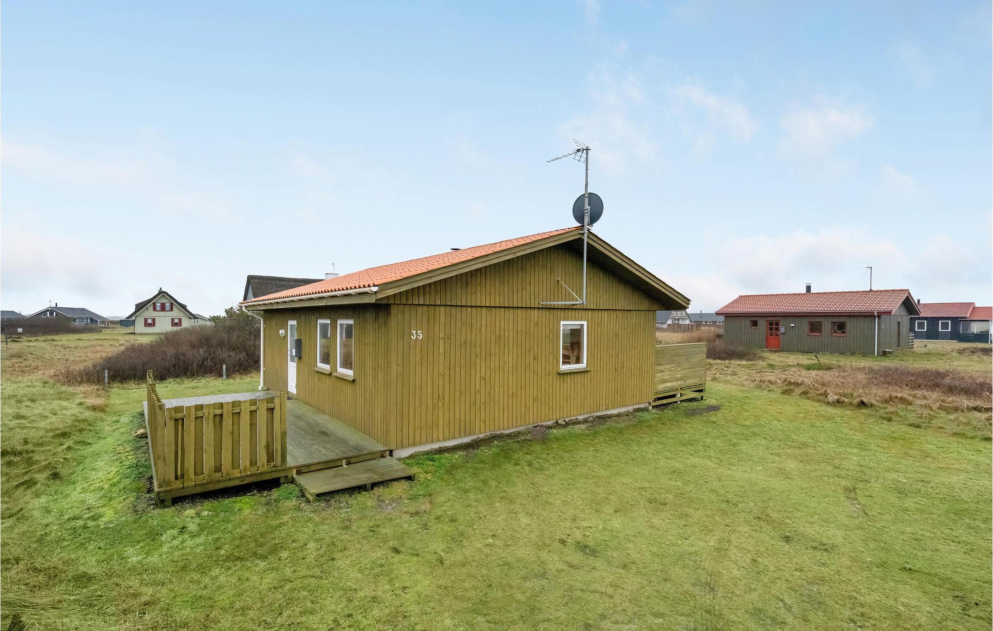 Hyggeligt sommerhus nær Vrist strand med terrasse, gasgrill og gratis internet, perfekt til afslapning og fiskeri.