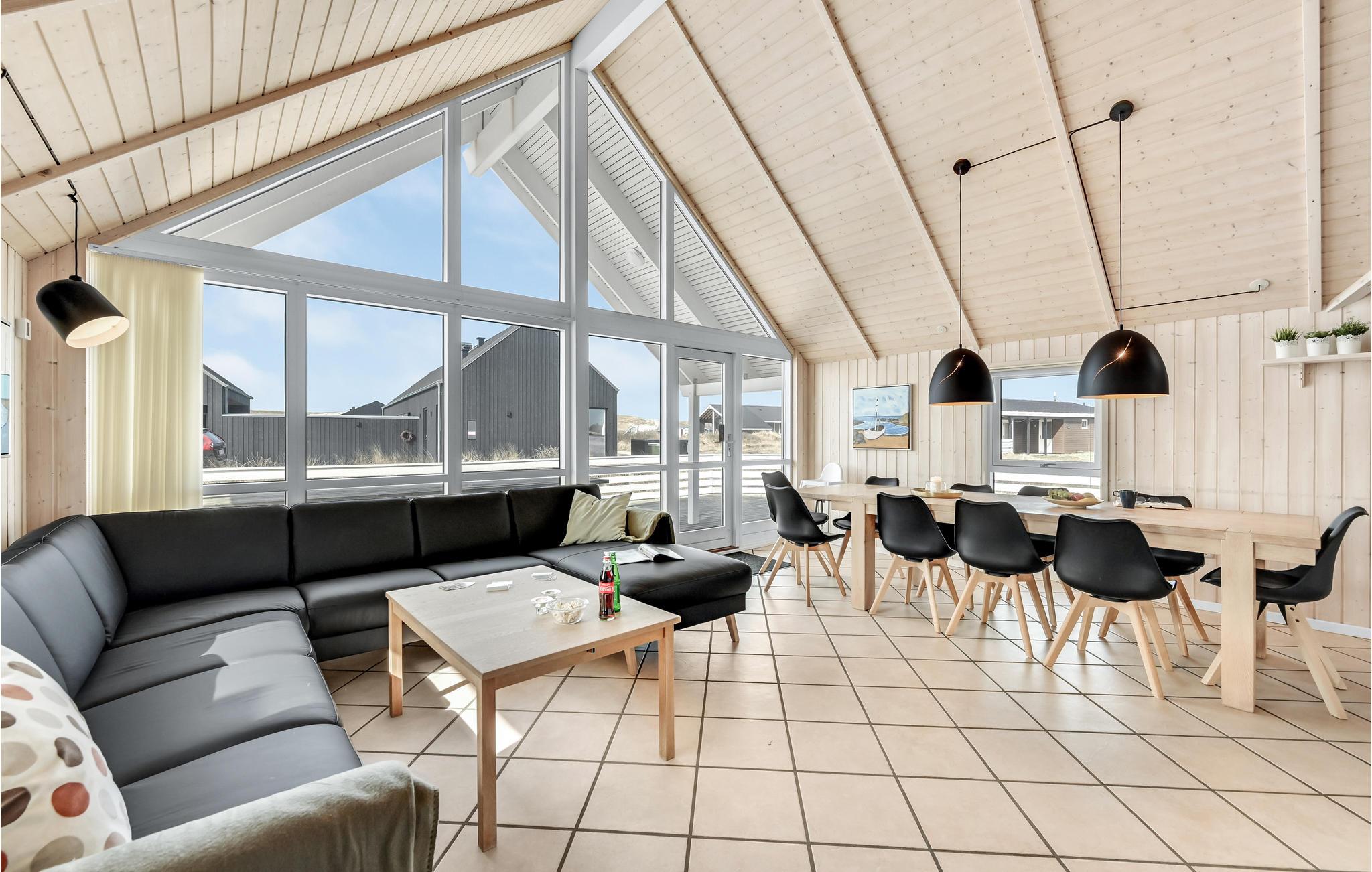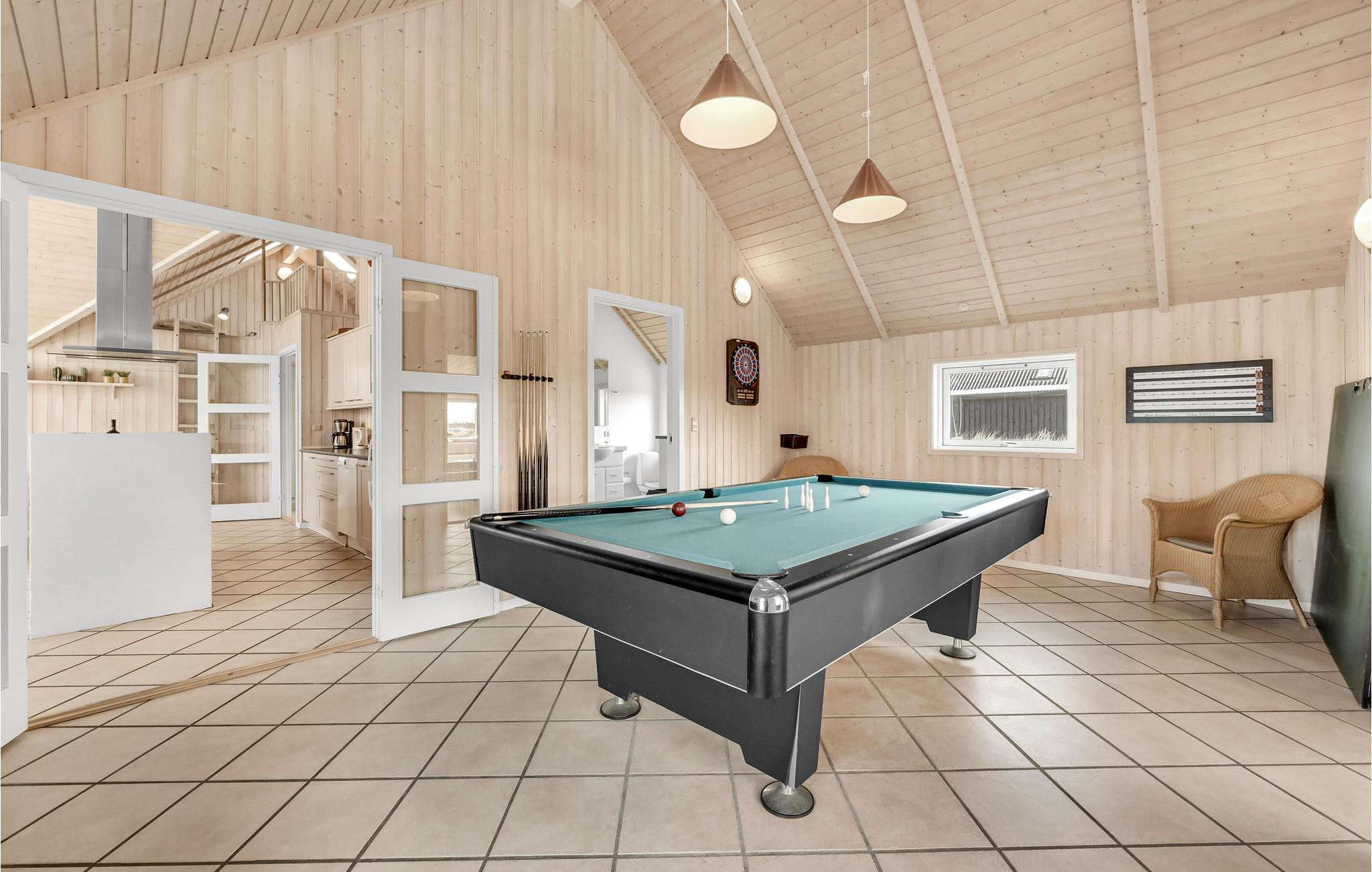 Drømmer I om en ferie, hvor havets brusen, frisk luft og ultimativ afslapning går hånd i hånd? Her får I et feriehus i høj kvalitet, hvor hygge, komfort og natur går op i en højere enhed – året rundt. På en stor, dejlig klitgrund, kun et stenkast fra Vesterhavets brede sandstrand, finder I dette rummelige og indbydende feriehus. Huset er indrettet i lyse, venlige farver med komfortable møbler, aktivitetsrum og en gennemtænkt planløsning, der gør det velegnet til to familier eller en ferie med gode venner. Spil billard, bordtennis eller dart sammen, og nyd ferietiden i det hyggelige stue- og køkkenområde.