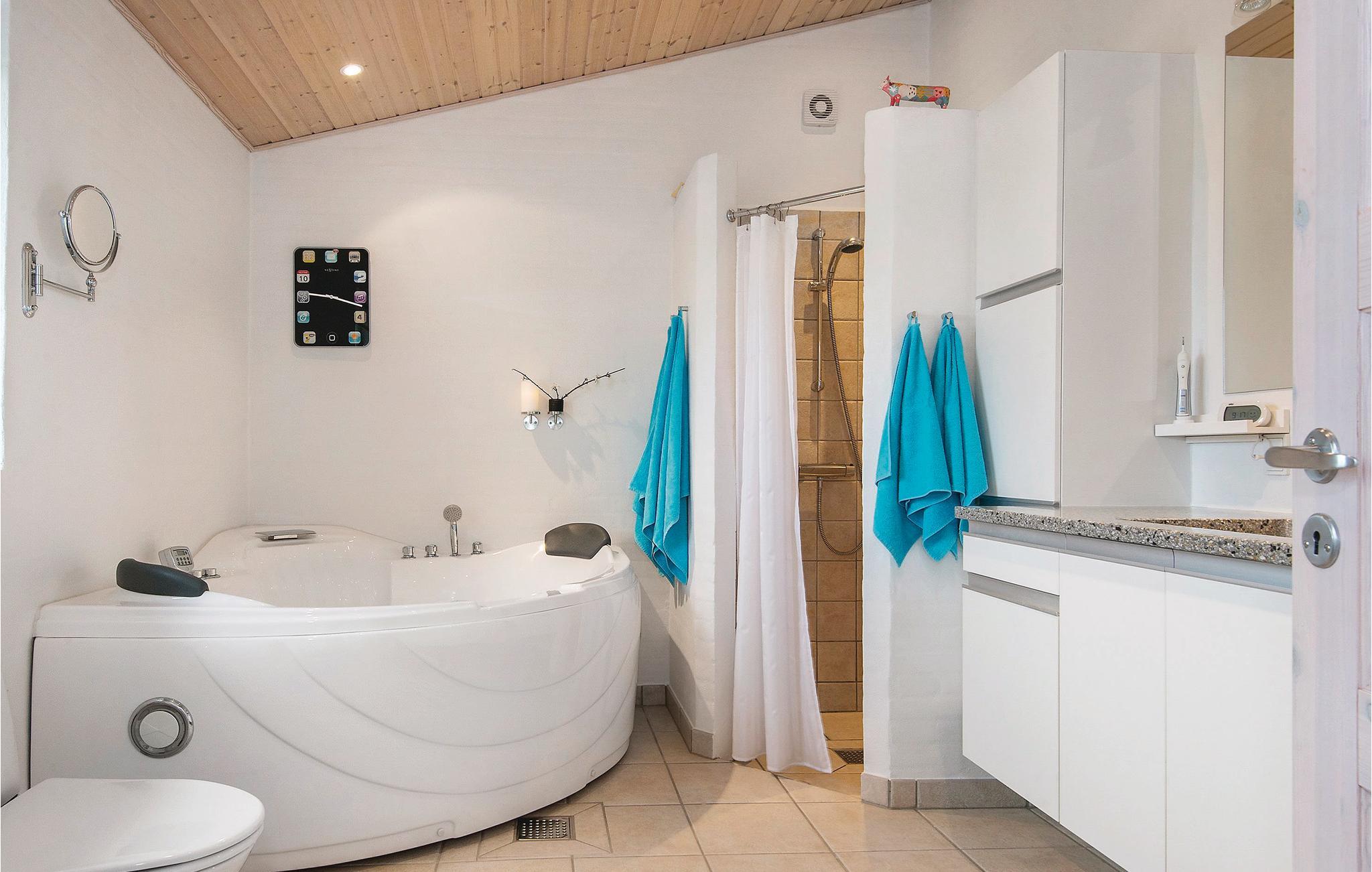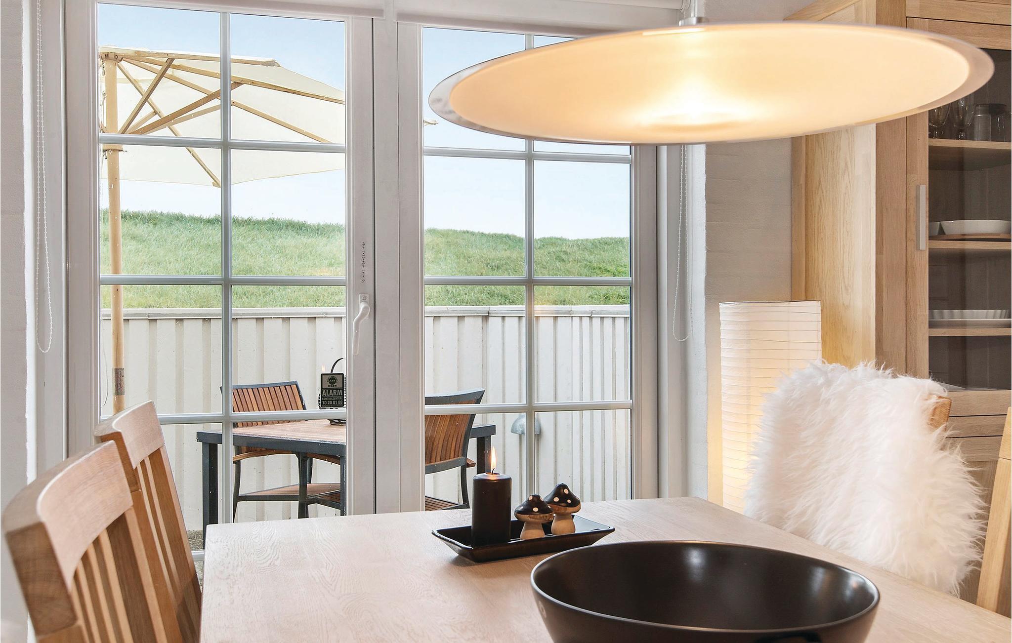 I det smukke klitlandskab ligger dette skønne, velindrettede stråtækte feriehus beliggende i 1. række til vandet. Udendørs kan I nyde ferien på en af terrasserne med udsigt til klitlandskabet, lyden af Vesterhavet og den skønne friske luft. Huset er dejligt lyst indrettet med en flot stue der ligger i forbindelse med det veludstyrede køkken. Rundt om spisebordet er der plads til jer alle, og om aftenen kan I sidde og spille kort eller brætspil. De tre soveværelser har komfortable senge, og afstemte interiørfarver fra værelse til værelse. Efter en hel dag ved stranden, er det skønt at hoppe en tur i spabadet og få blid undervandsmassage.