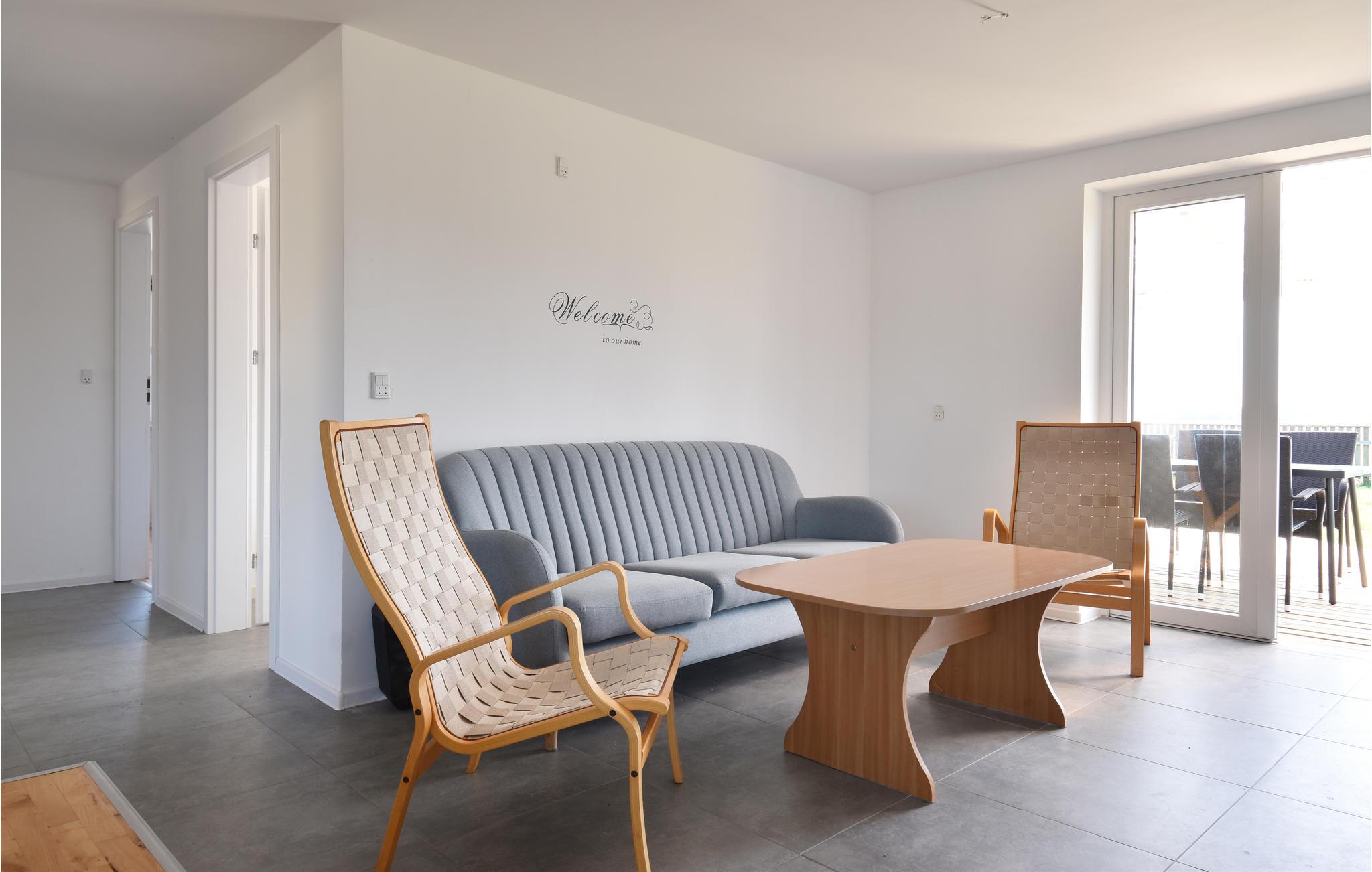 Huset er blevet gennemgribende moderniseret og fremstår i dag som et rigtig hyggeligt feriehus. Det er indrettet med 4 soveværelser, 3 med dobbeltseng og 1 med 1 enkeltseng og 1 køjeseng. Der er gulvvarme på alle flisegulve i huset, gg huset opvarmes med pillefyr. Varme er inkl. i lejen. Køkkenet ligger i åben forbindelse til spiseområdet samt stueområdet. Fjernsynet er udstyret med Appletv, men har ingen tyske programmer. Huset har både vaskemaskine og tørretumbler. Fra stuen er der udgang til husets store overdækkede terrasse og videre til den store og helt indhegnede grund, hvor der er god plads til boldspil og leg. Fra terrassen er der en smuk udsigt over de åbne marker bag huset. Til den anden side kan man se klitterne, og Vesterhavet ligger kun 400 m. fra huset.