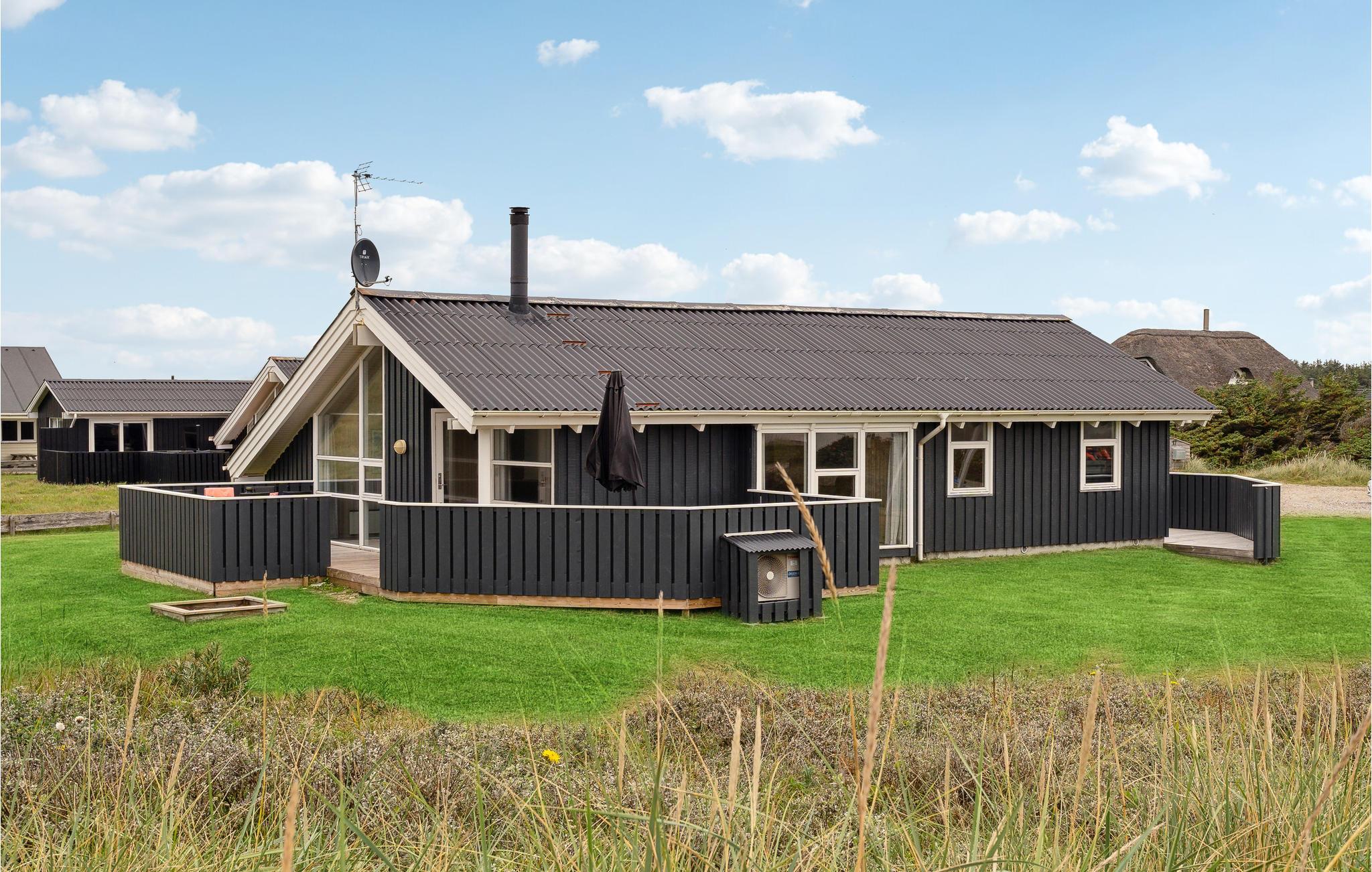 Her har man virkelig mulighed for at komme væk fra hverdagens stress og jag - og bare nyde ferien samt naturen. Huset er placeret på en kuperet klitgrund og har flere terrasser, så man kan nyde solen hele dagen. Huset er indrettet med 4 soveværelser, hvoraf de 2 er med dobbeltseng, det ene med 2 enkeltsenge, mens det sidste værelse har både 2 køjesenge med i alt 4 sovepladser - fra dette værelse er der en stige op til hemsen, hvor der er ydeligere 2 madrasser, som dog ikke er egnet til voksne. Huset har 2 badeværelser, hvoraf det ene er med bruser, og det andet med både bruser, spabad og sauna. Stuen ligger i åben forbindelse med spiseområdet og det lækre lyse køkken. Her er både brændeovn og varmepumpe som ekstra varmekilde. Så når I har været en gåtur nede ved det vindblæste Vesterhav, kan I nyde en tur i spaen og blive varmet godt igennem foran brændeovnen.
