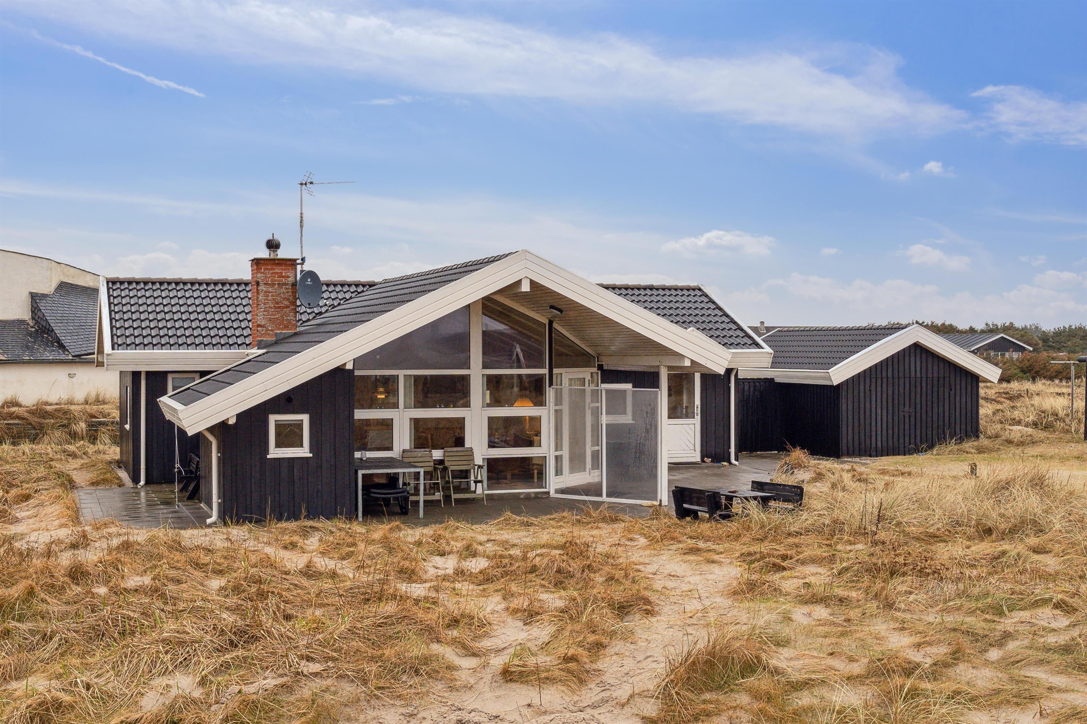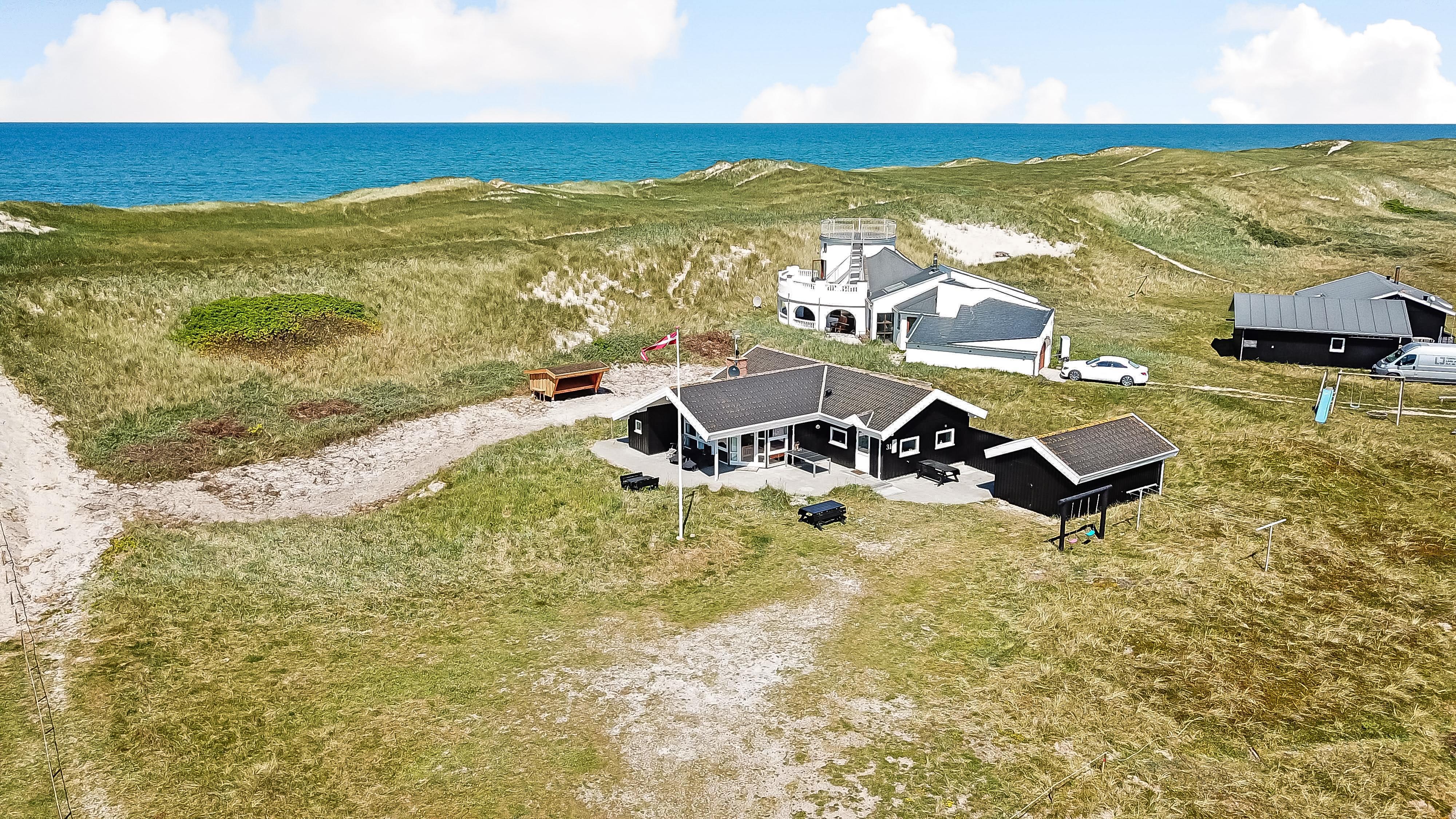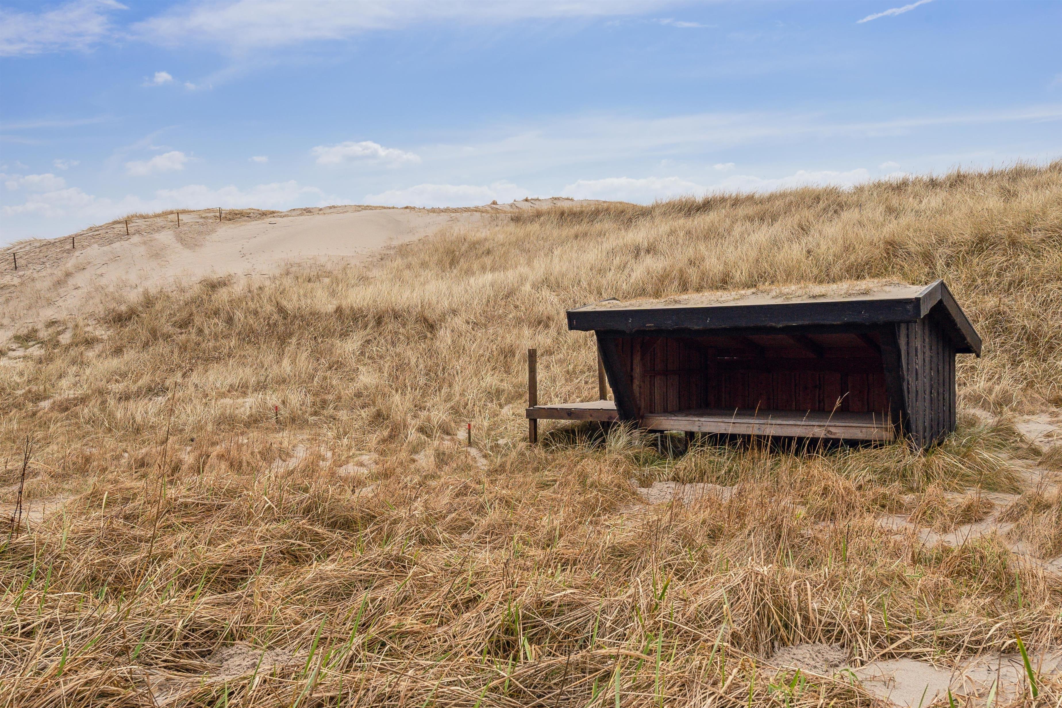 Huset har udgang til en delvis overdækket terrasse med havemøbler, parasol, liggestole og grill. Nyd solen eller en grillaften til lyden af bølgernes brusen som høres i baggrunden. Perfekt beliggende feriebolig med klitudsigt, der vil danne rammerne om jeres hel unikke ferie tæt ved Vesterhavet. Her er fantastiske omgivelser, og det er en oplevelse i sig selv at bo helt tæt ved de høje klitter, som er det eneste der adskiller huset fra Vesterhavet. Huset er beliggende for enden af en blind vej kun ca. 50 m fra Vesterhavet på en ca. 3.500 m2 grund. Nyd at Vesterhavet hver dag fortæller en ny historie, som i kan opleve på tætteste hold.