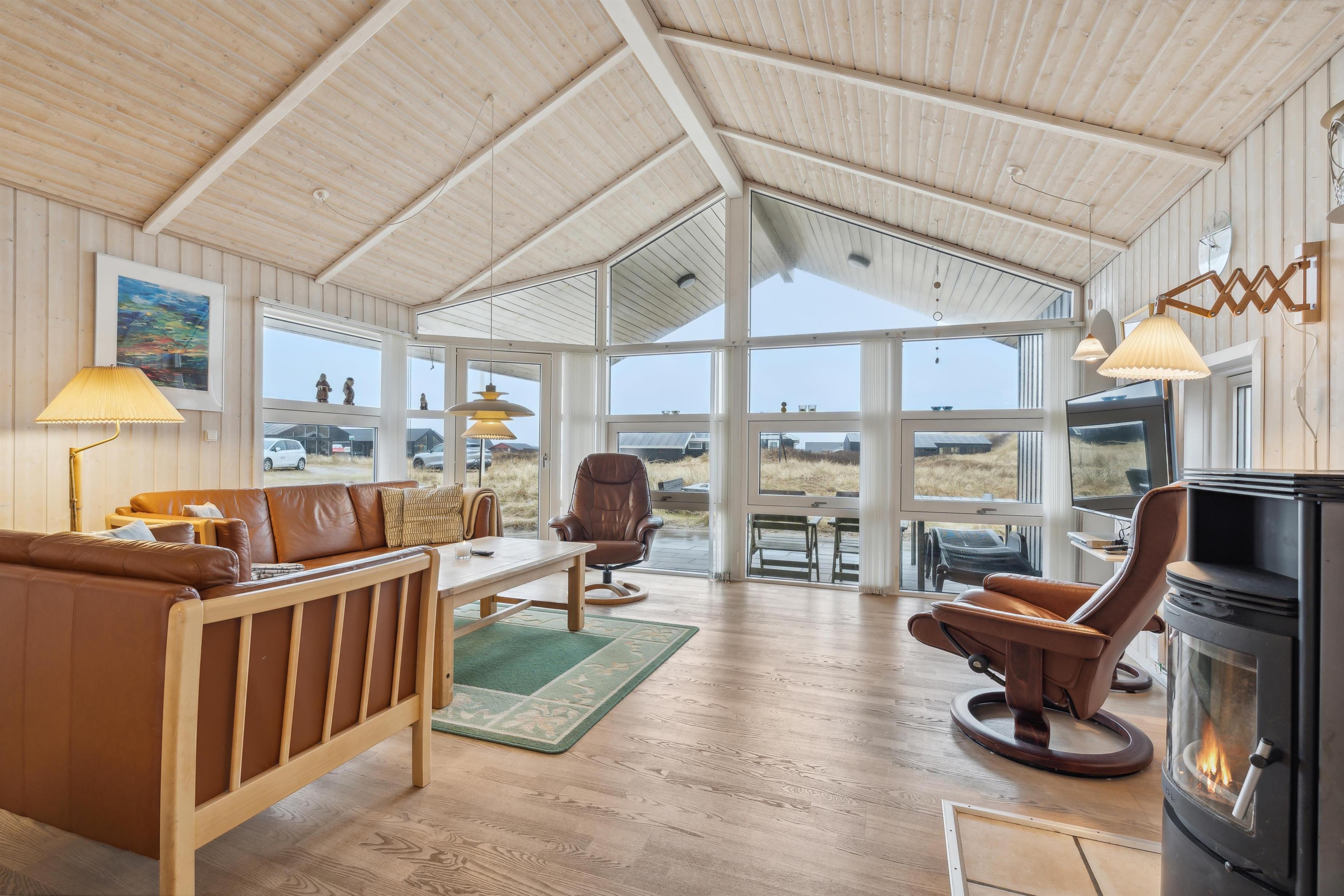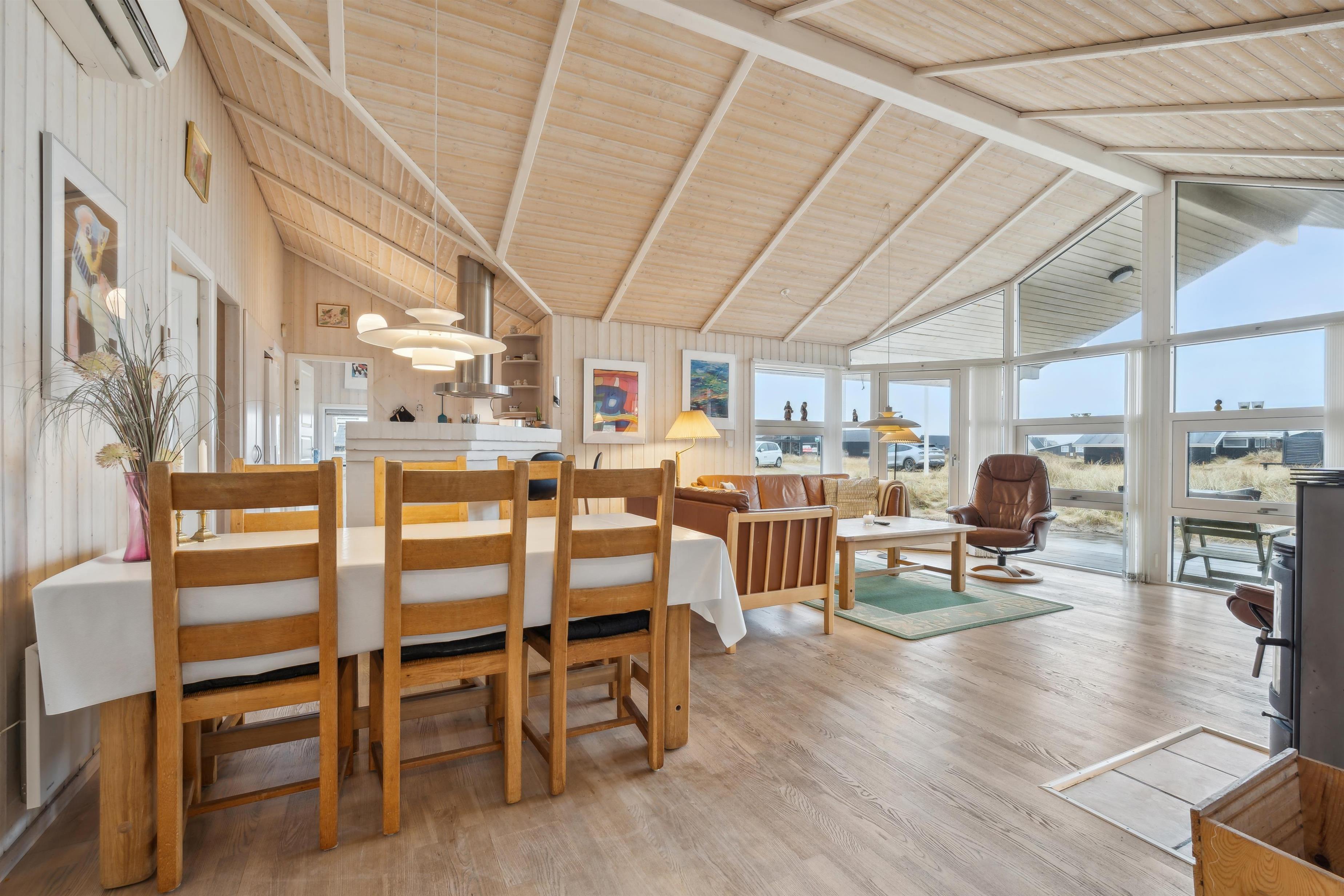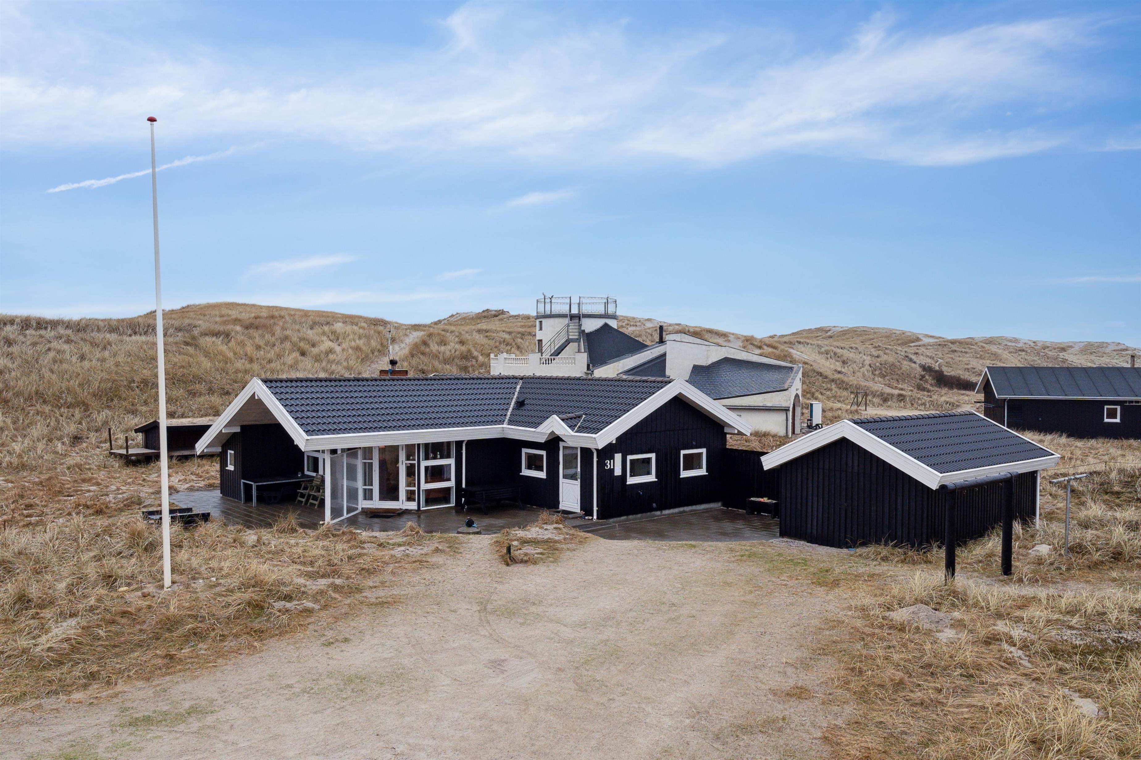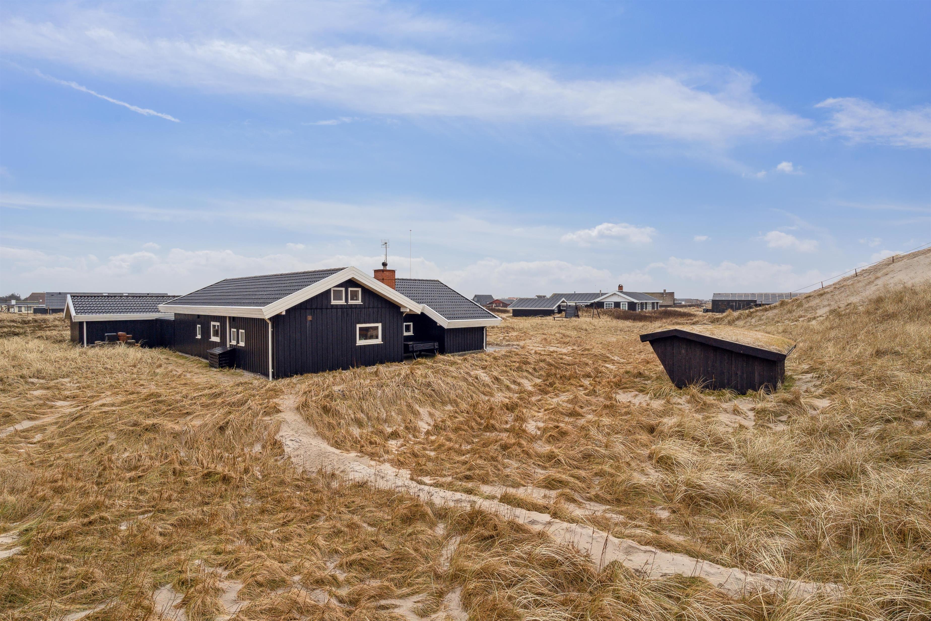 Huset har udgang til en delvis overdækket terrasse med havemøbler, parasol, liggestole og grill. Nyd solen eller en grillaften til lyden af bølgernes brusen som høres i baggrunden. Perfekt beliggende feriebolig med klitudsigt, der vil danne rammerne om jeres hel unikke ferie tæt ved Vesterhavet. Her er fantastiske omgivelser, og det er en oplevelse i sig selv at bo helt tæt ved de høje klitter, som er det eneste der adskiller huset fra Vesterhavet. Huset er beliggende for enden af en blind vej kun ca. 50 m fra Vesterhavet på en ca. 3.500 m2 grund. Nyd at Vesterhavet hver dag fortæller en ny historie, som i kan opleve på tætteste hold.