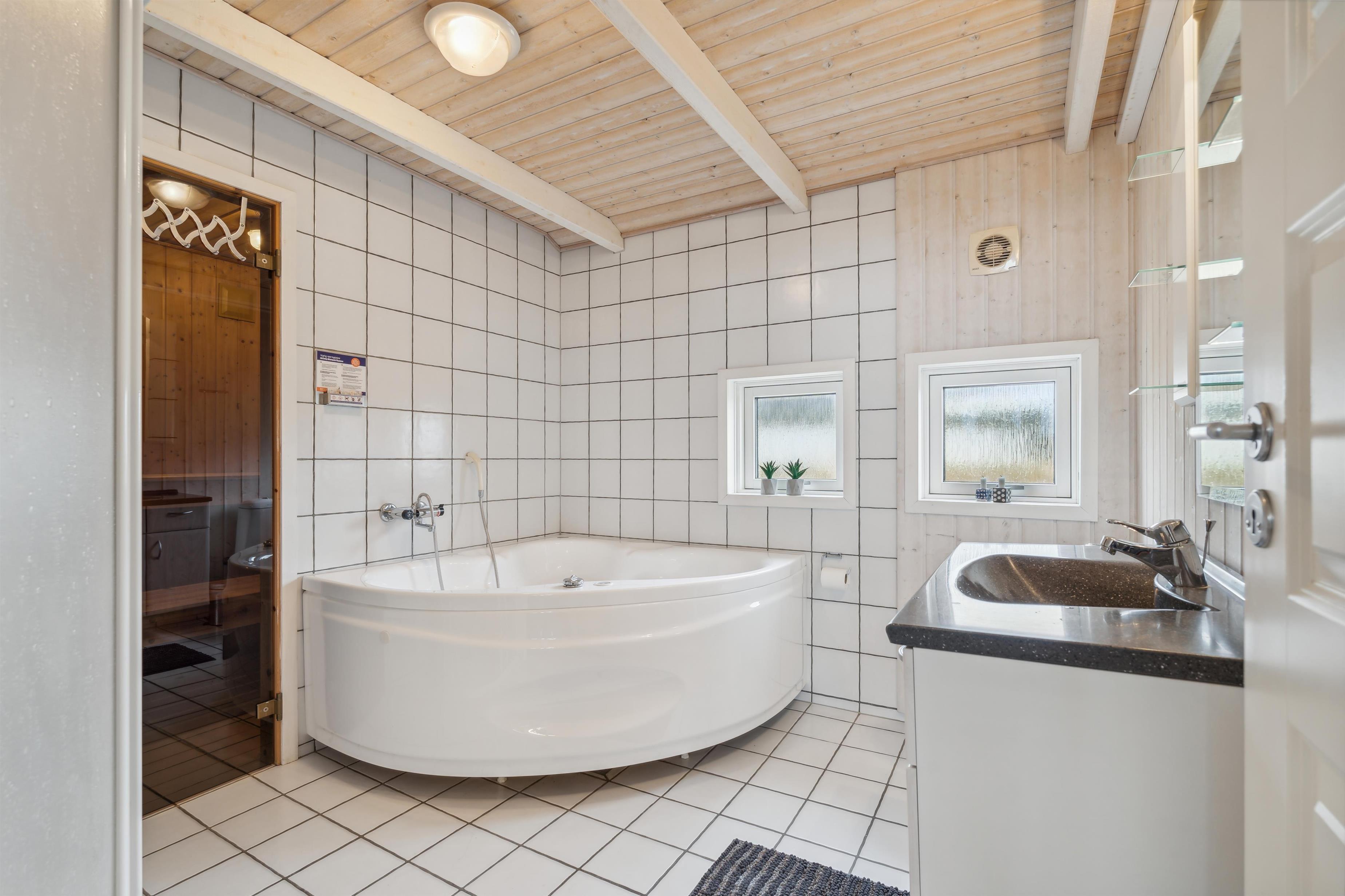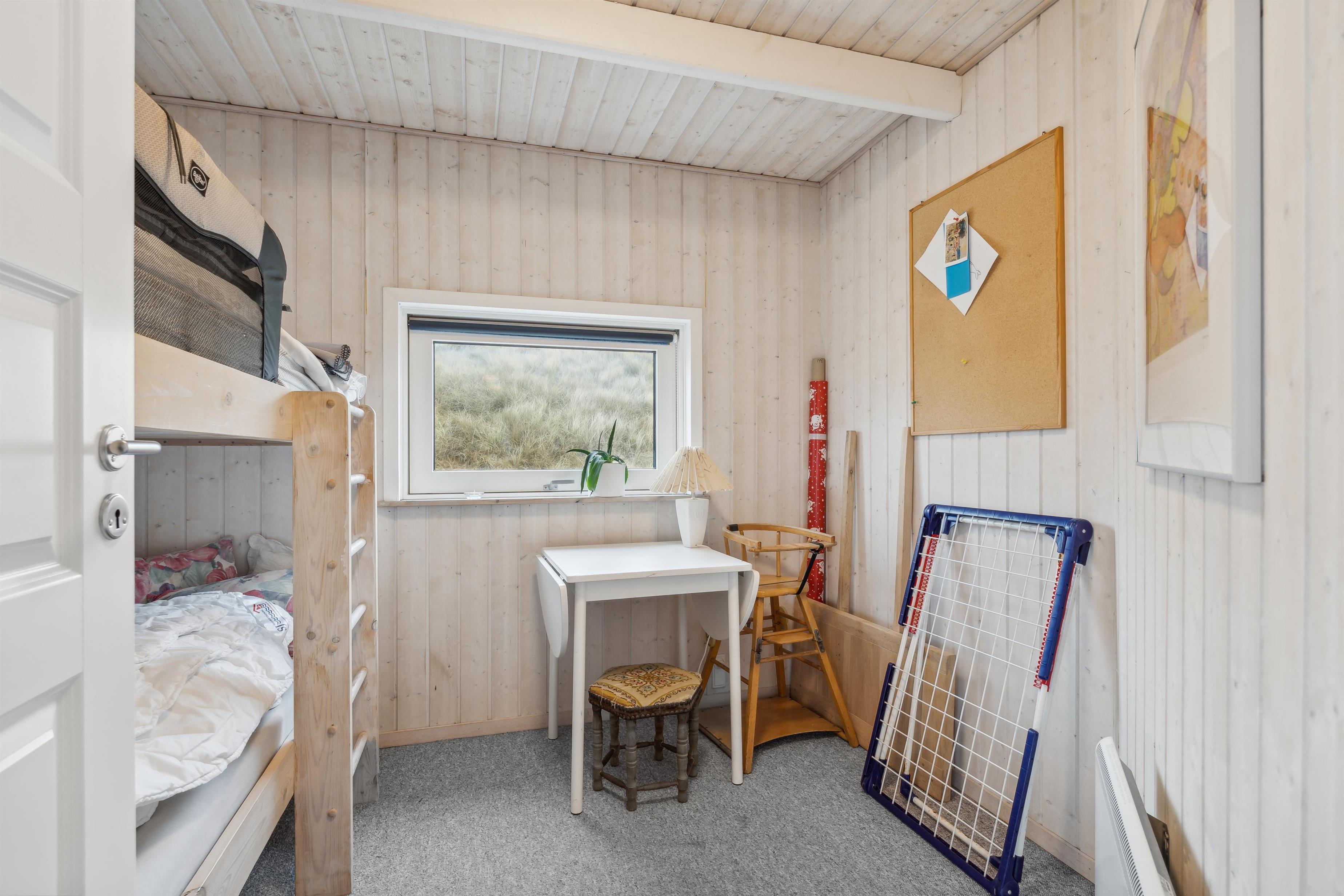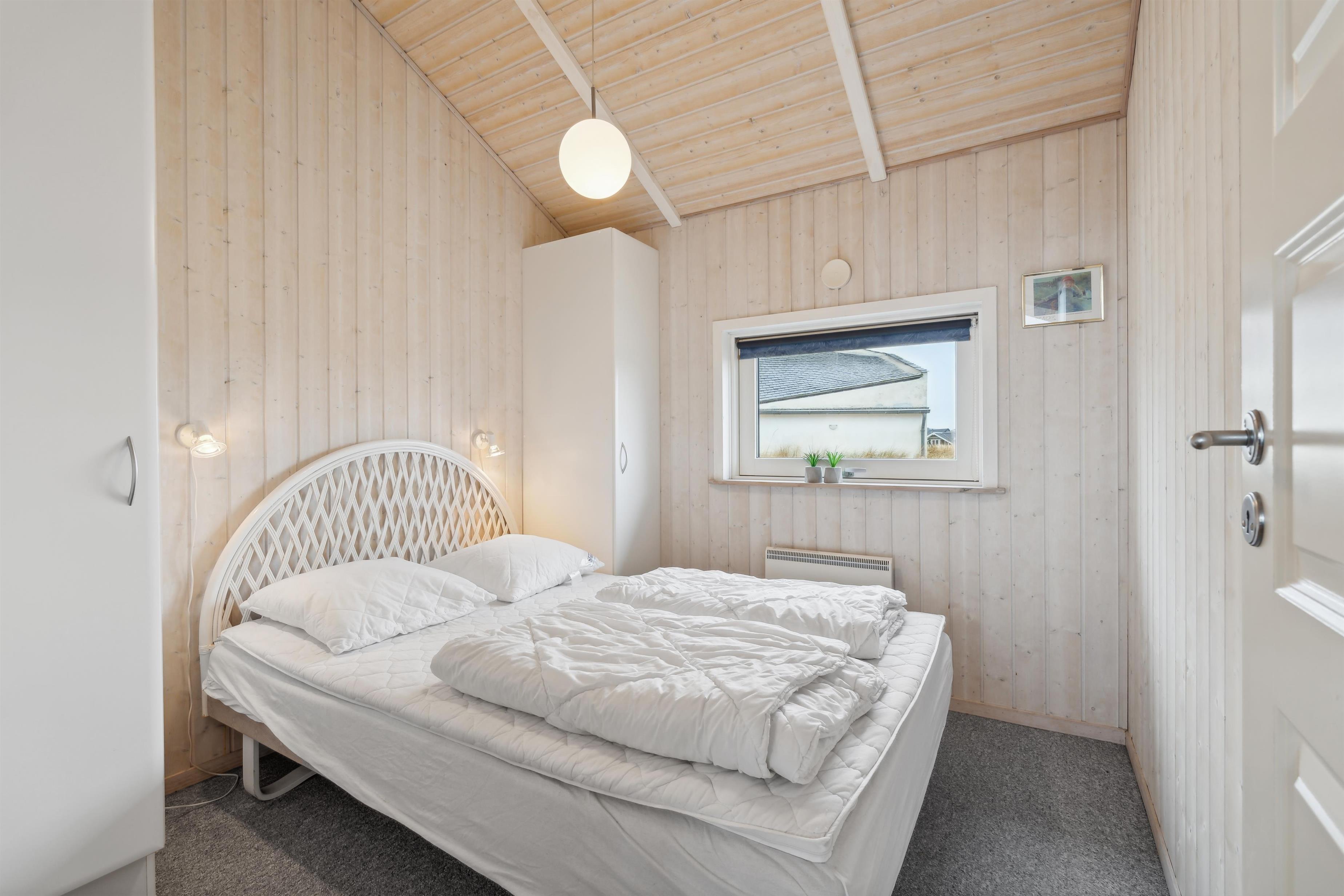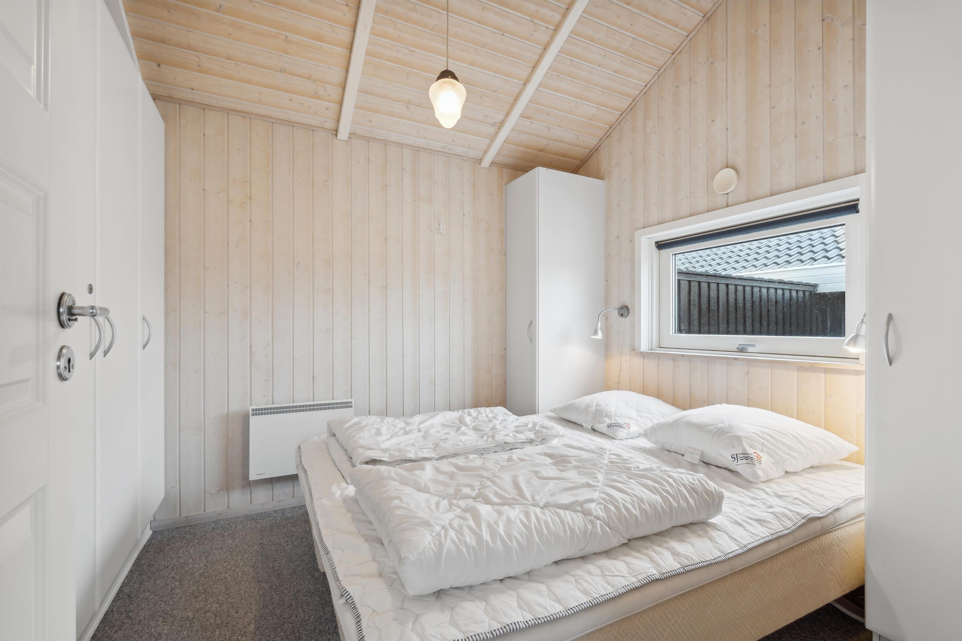 Godt feriehus på ca. 88 m2 fra 2003 med 3 værelser (1DS, 1DS, 1KS) samt en hems til begejstring for mange børn og barnlige sjæle. Huset er praktisk indrettet i lyse og venlige farver og med pæne møbler. En dejlig entré med vaskemaskine og tørretumbler byder jer velkommen. Funktionelt og veludstyret køkkenhjørne med bl.a. opvaskemaskine, stort køleskab, mikroovn og komfur med glaskeramiske kogeplade. Opholdsstuen har fladskærms-TV med tyske og danske kanaler, CD afspiller, radio, spiseplads samt en hyggelig brændeovn, der sammen med den opsatte varmepumpe sørger for at alle kan holde varmen selv på de kolde, charmerende efterårsdage. Der er også en lille alkove med madras og puder der helt sikkert vil tiltale de små og som kan benyttes både som sove- og legerum. Stort, moderne badeværelset med bla. spa, direkte adgang til saunaen, bruseniche, toilet, håndvask og klinkegulv med gulvvarme. Ekstra badeværelse med toilet, bruseniche, håndvask og klinkegulv med gulvvarme. Barnestol og barneseng er i huset. Seperat fryser i skur. Har man el-bil eller en Plug-In hybrid, så er der opsat ladeboks i garagen. Ikke ryger hus. Husdyr ikke tilladt.