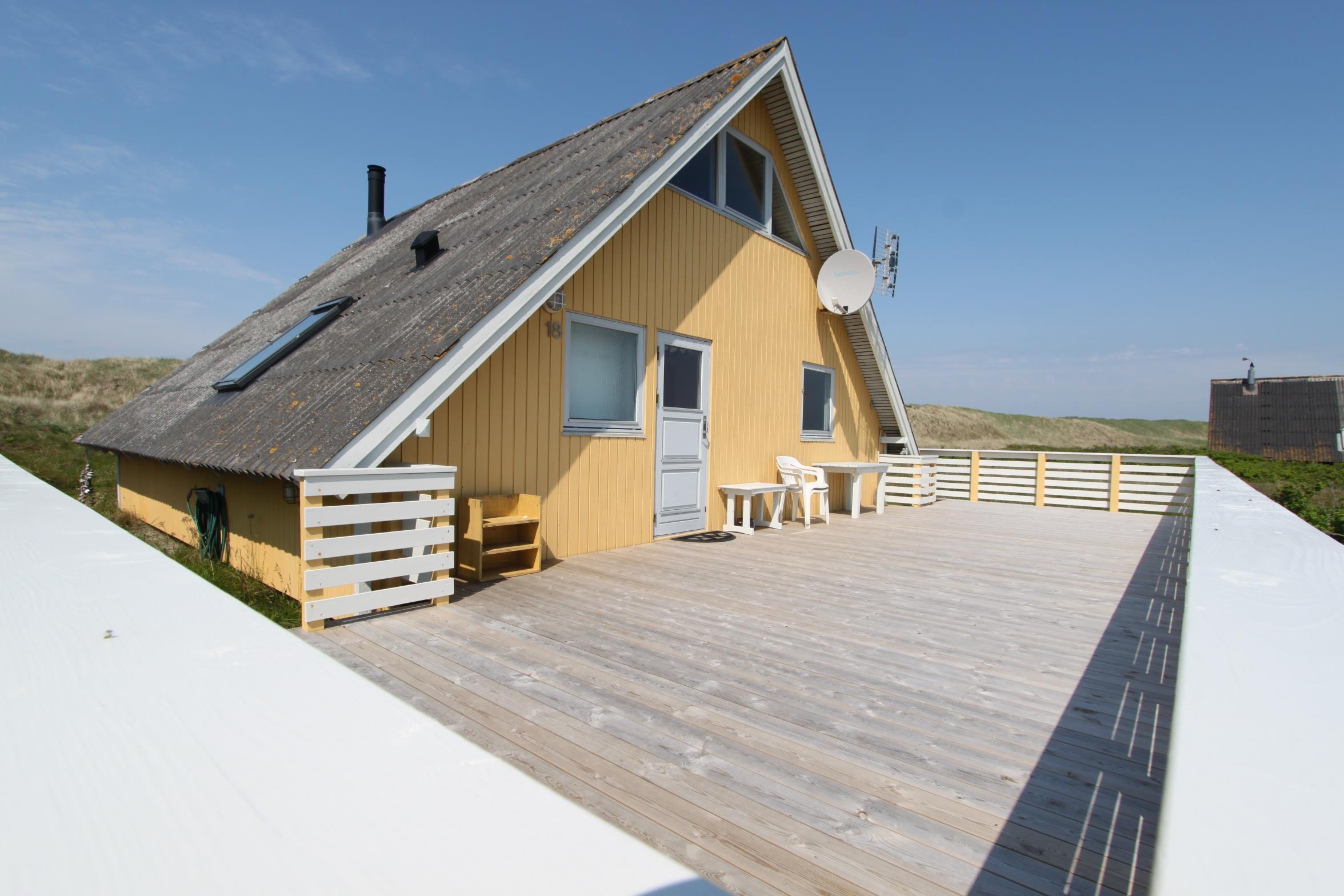 Huset er beliggende på den sidste grund lige foran klitterne før Vesterhavet. Huset har en rigtig skøn terrasse hvorfra der er en god udsigt over området. Der er selvfølgelig havemøbler, solvogne, grill og parasol på terrassen. Huset ligger i gåafstand til Vesterhavet der er blot 50 m. Vesterhavet byder hver dag på en ny oplevelse og en frisk spadseretur langs vandet er total afstressende. Ca. 15 min kørsel fra huset ligger havnebyen Thyborøn hvor der findes flere attraktioner og gode spisesteder og shoppingmuligheder. I den anden retning også ca. 15 min kørsel ligger Lemvig som er en gammel handelsby. Her er der ligeledes gode shoppingmuligheder, legeplads, skaterbane osv.