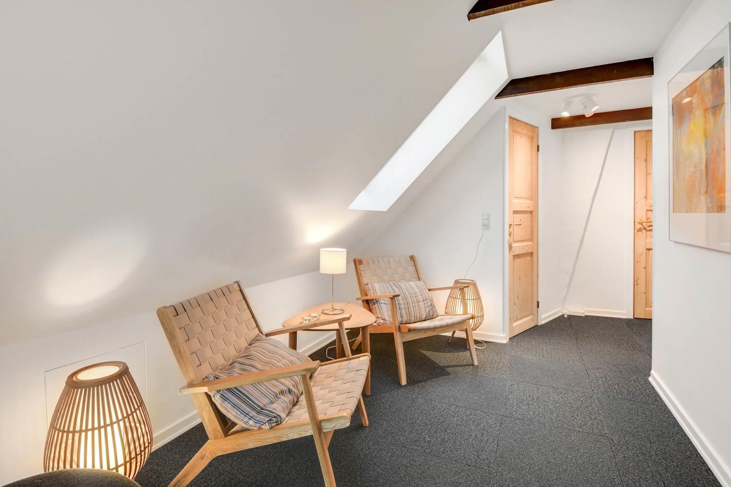 Total nyrenoveret (2022) og skønt stenhus i 2 etager. Når I parkerer bilen i carporten og går ind af hoveddøren, bliver I budt velkommen af et flot renoveret bryggers med vaskemaskine, tørretumbler samt en helt ny luft til vand varmepumpe, som gør huset meget energibesparende. Fra bryggers er der indgang til køkkenet, som er med alle tænkelige hjælpemidler samt service. Køkkenet er med nyt glaskeramisk komfur, køle-/fryseskab, opvaskemaskine, emhætte og mikroovn, der er klinker på gulvet. Fra køkkenet kommer man ind i en lille hyggestue med gode møbler og TV med chromecast og spillekonsol samt en dejlig brændeovn som sørger for en behagelig varme også på de kolde dage. Spisestue med et stort spisebord med behagelige stole og et anlæg med radio og cd-spiller. I stueetagen er der også et flot badeværelse toilet, bruser, håndvask og flisegulv. Et soverum med 1 DS. Fra stuen er der trappe op til 1. sal, hvor der findes en dejlig stue med lædermøbler, F-TV med tyske og danske programmer samt chromecast med mulighed for streaming af TV / Radio / Apps som I selv har et abonnement til. På 1. sal er der desuden 3 Soverum: 2S + 2S + 1DS. Fra stuen på 1. sal er der udgang til en balkon, hvorfra man har en fantastisk udsigt over hele området. Ikke rygerhus. Max 1 husdyr er tilladt. Har man el-bil eller en Plug-In hybrid, så er der ved huset 3-faset 16amp CEE stik, der kan lade op til 11 kWh.