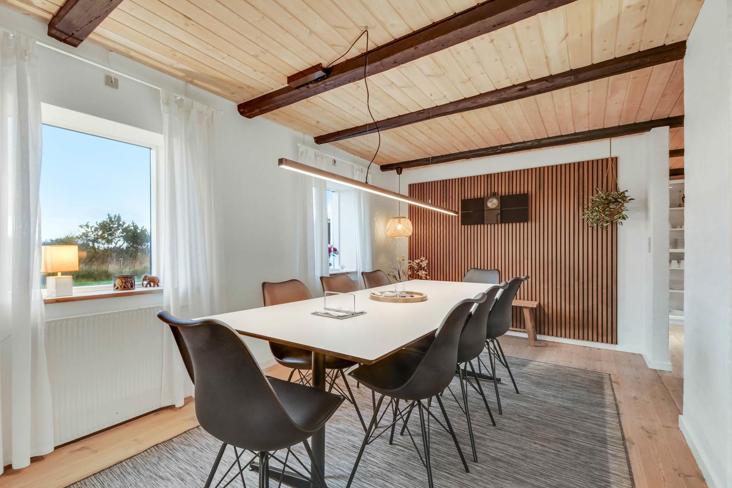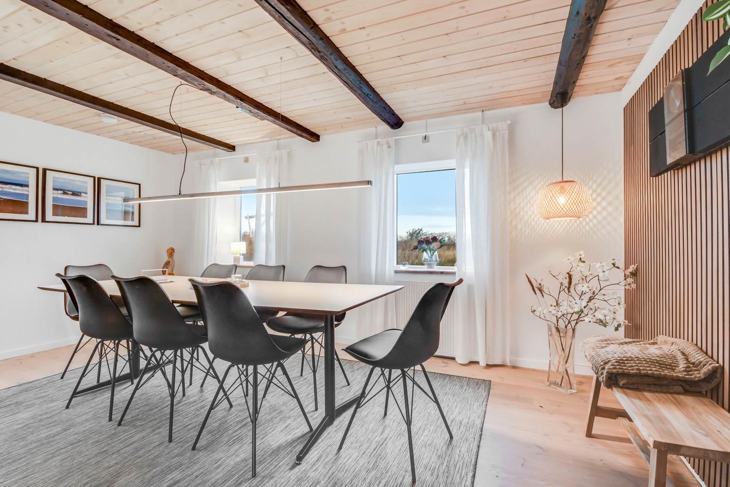 Huset er beliggende på en 1386 m2 naturgrund med større træer og buske, i rolige omgivelser. Der forefindes både en åben og en overdækket terrasse og der er selvfølgelig havemøbler, solvogne og grill. Til de mindste gæster er der sandkasse, gyngestativ og udendørs fodboldsmål. Huset er beliggende blot 800 m fra Vesterhavet, som hver dag fortæller en ny historie. Området indbyder til gåture eller cykelture. Blot 15 min i bil kommer man til havnebyen Thyborøn, som har flere butikker, restauranter, aktiviteter og seværdigheder og er absolut et besøg værd. Lemvig ligger også i køreafstand fra huset, og her er der en hyggelig havnepromenade med legeplads, butikker og restauranter. Dette hus er det perfekte valg for familien, som ønsker at bo lidt for sig selv og alligevel tæt på alt.
