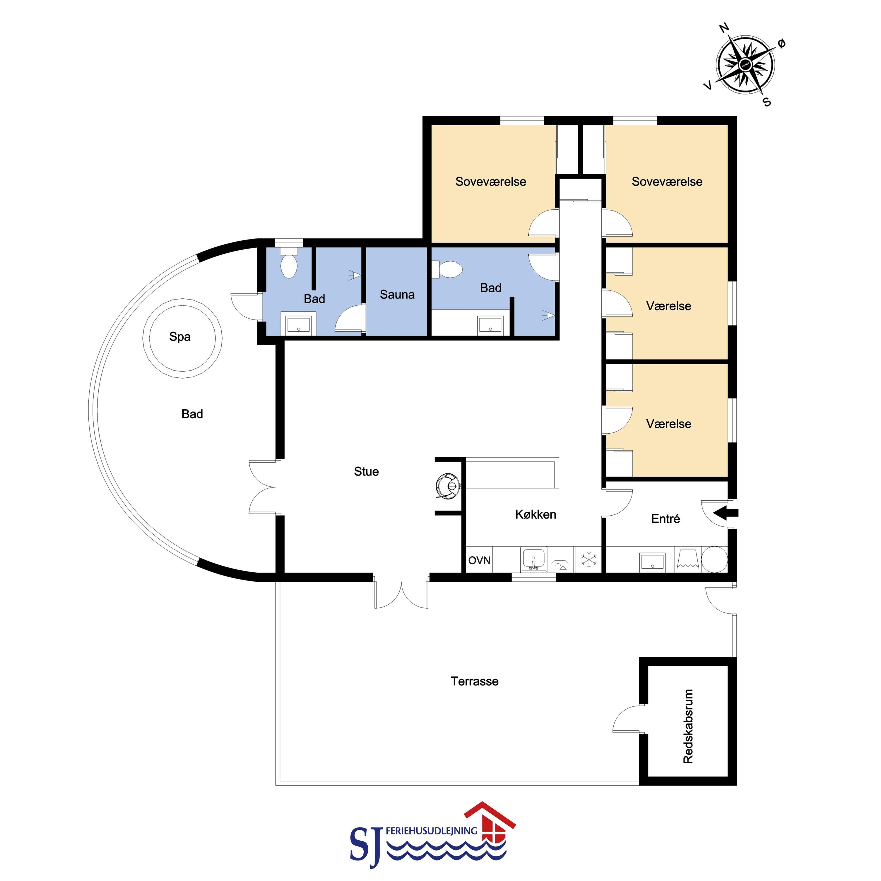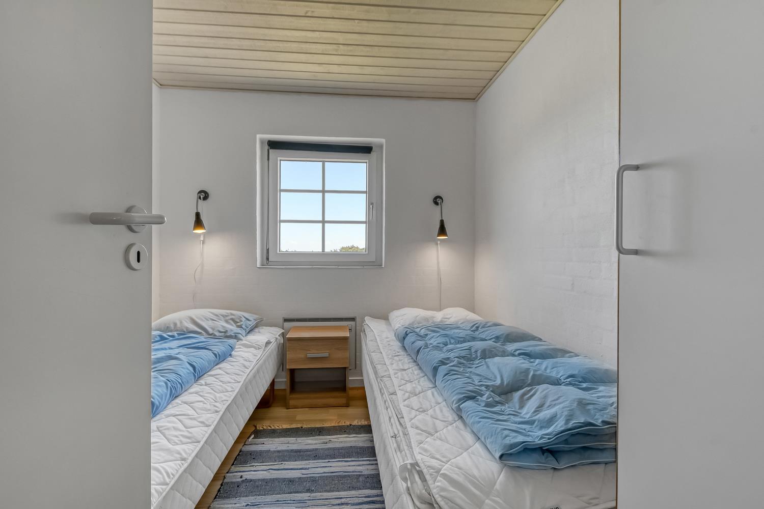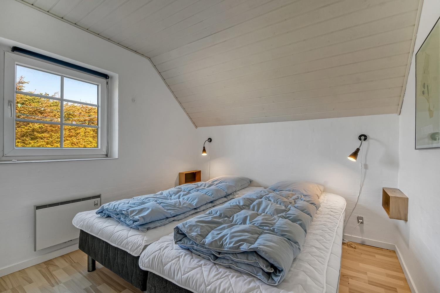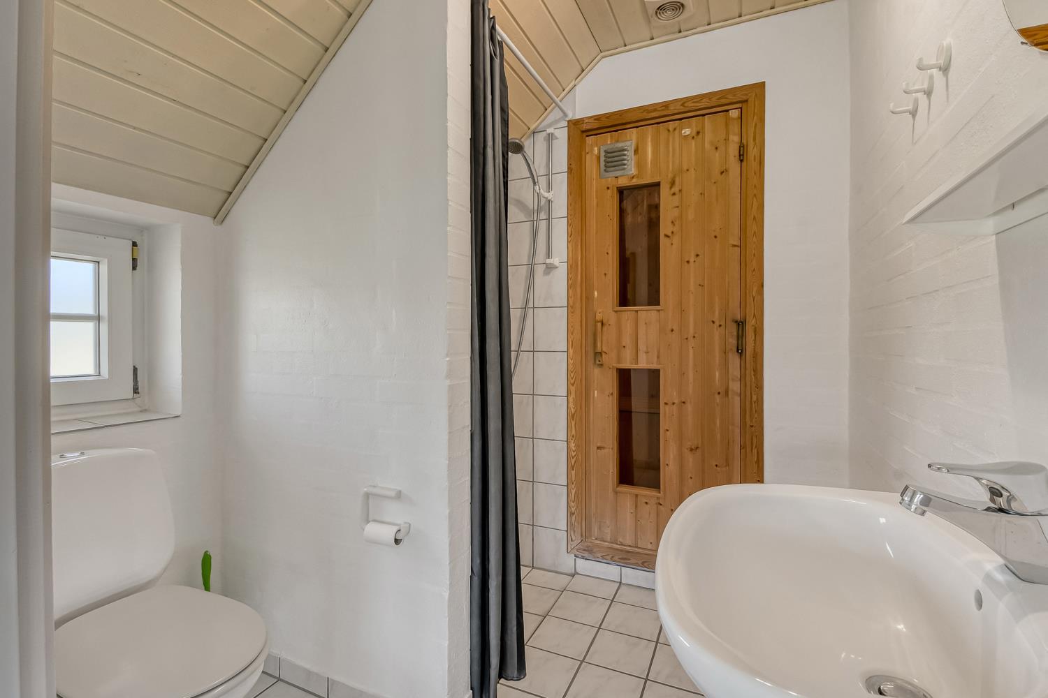 Dejligt feriehuse på ca. 127 m2. En dejlig entre med håndvask, mikroovn, vaskemaskine og tørretumbler byder jer velkommen og fører jer direkte ind i køkkenhjørnet. Køkkenet har alt i service og køkkengrej og er også udstyret med komfur med glaskeramiske kogeplader, emhætte, køleskab med fryseboks og opvaskemaskine. Tæt ved køkkenet står spisebordet til 8 personer, som hele familien kan samles ved når sulten skal stilles. Opholdsstuen er udstyret med lædermøbler, TV med danske som tyske kanaler og DVD / CD / Radio. En dejlig brændeovn og en strømbesparende varmepumpe sørger for at huset kan opvarmes så man kan holde varme på de kolde efterårsdage. 4 soveværelser (1DS, 1DS, 2ES, 2ES). Husets badeværelse har bruser, toilet, håndvask, bruser og klinkegulv med gulvvarme. Gå forbi husets TV og luk døren op til et dejligt wellness rum med stort spabad, sauna og ekstra badeværelse med bruser, toilet og håndvask samt klinkegulv med gulvvarme. I wellnessrummet er der også installeret et ekstra TV. Der er praktisk klinkegulv med gulvvarme i stue og køkken samt trægulve i soveværelserne. Har man el-bil eller en Plug-In hybrid, så er der ved Ladeboks til Type 2 ladestik, der kan lade op til 11 kWh. Ikke ryger hus. 2 hunde tilladt.