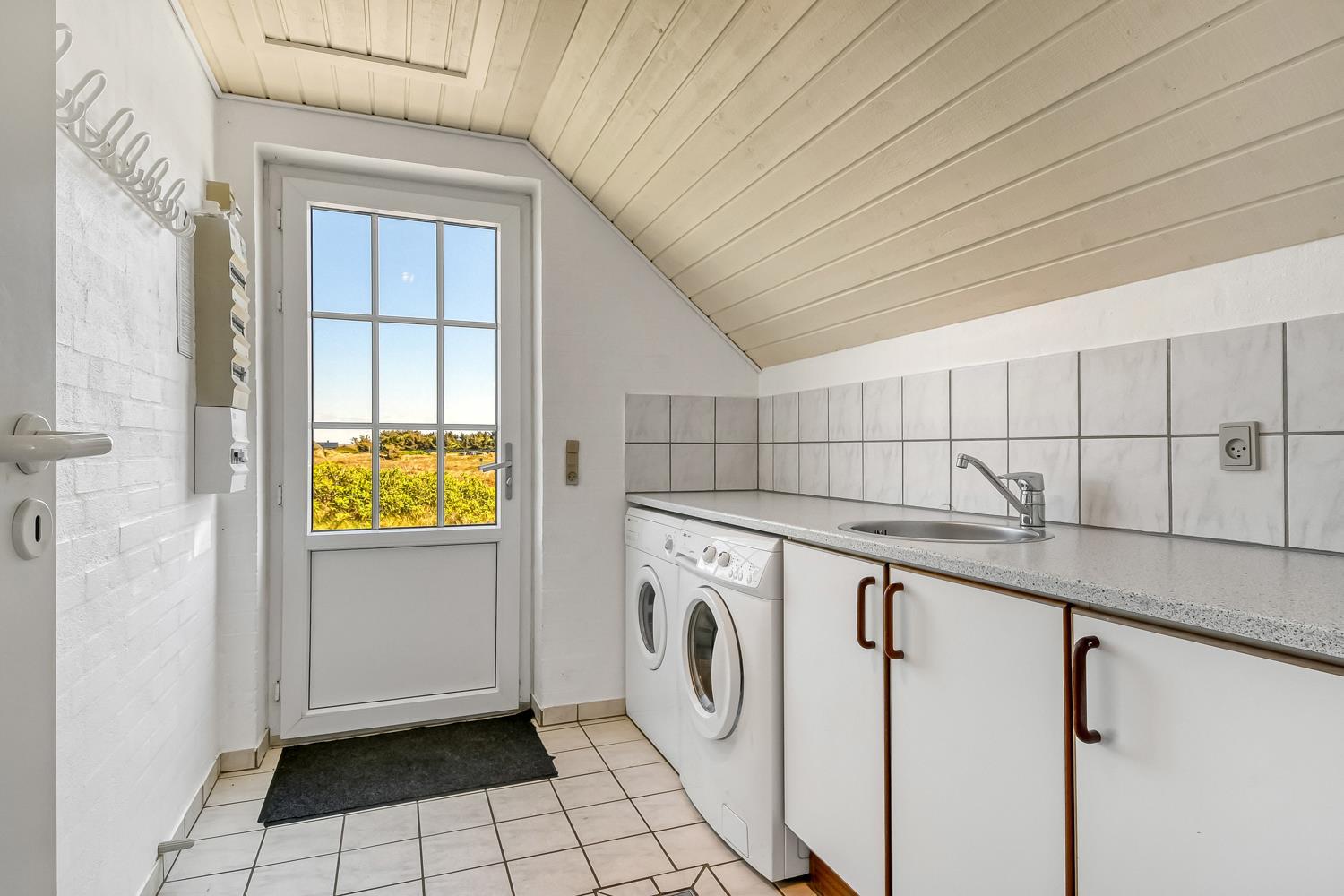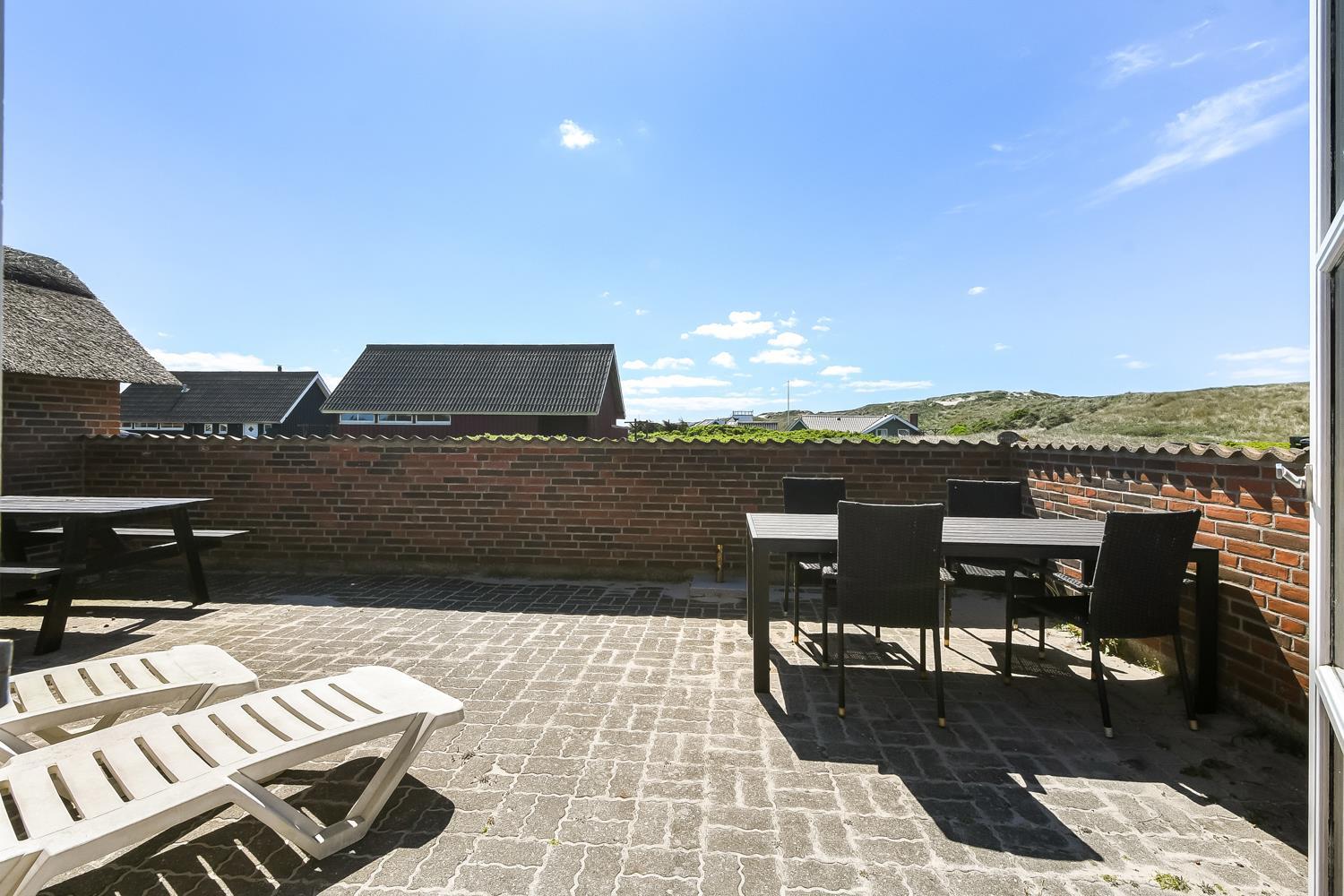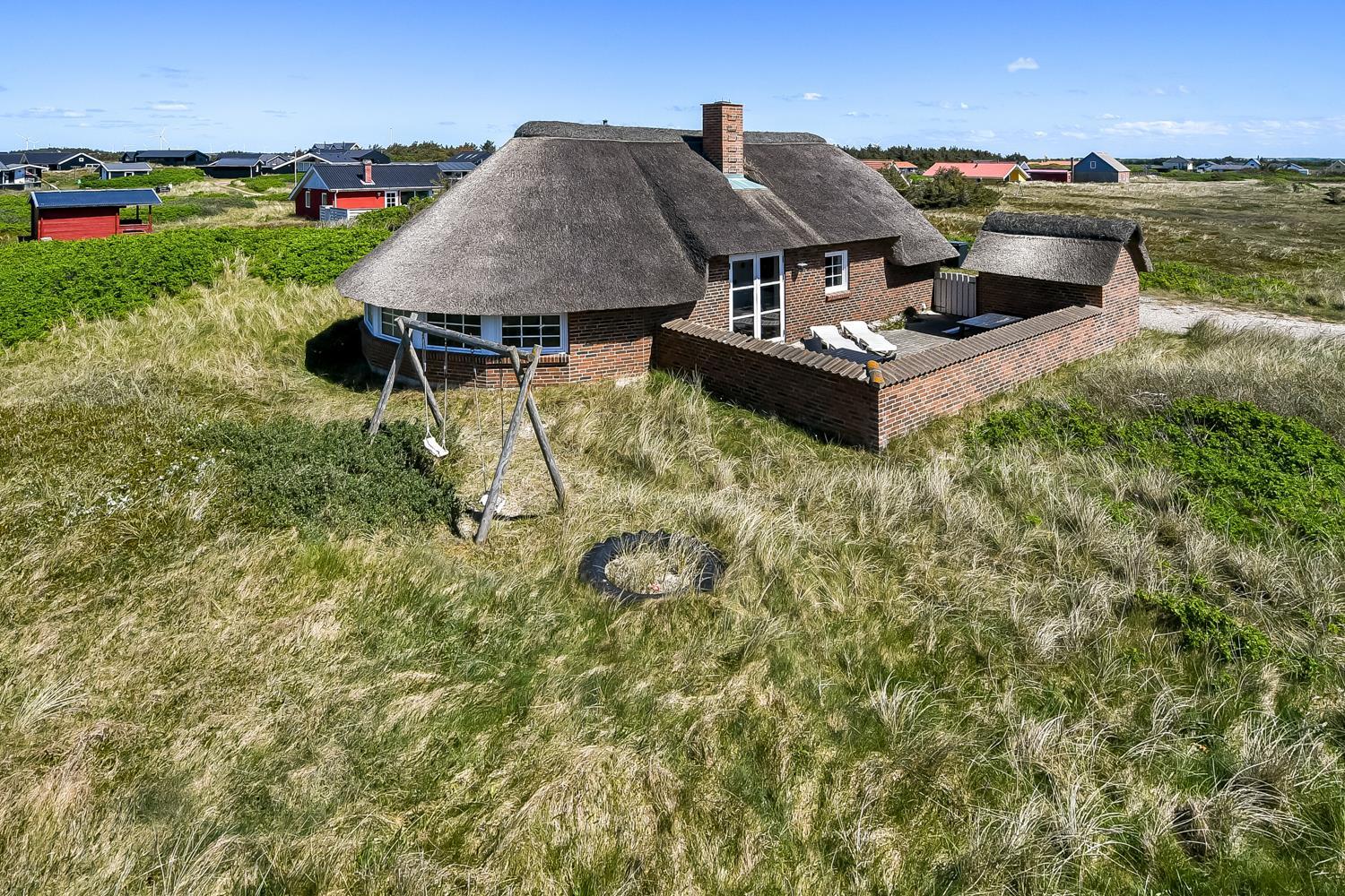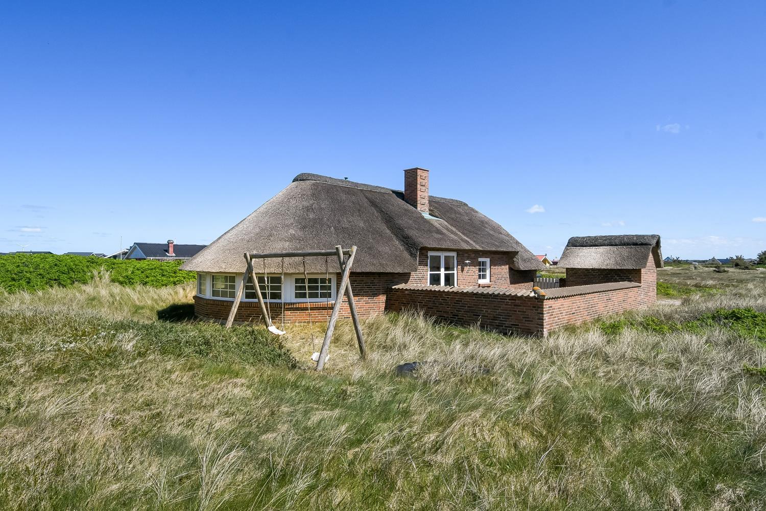 Huset ligger på en ca. 1.400m2 klitgrund. Terasseanlægget er indhegnet og byder på gode havemøbler, liggestole, parasol og grill og som er perfekt til den hyggelige grillaften. ca. 180m fra huset ligger Vesterhavet, der altid invitere til en frisk gå- eller løbetur. Områdets købmand har sæsonåbent og ligger ca. 350 m fra huset og som i sæsonen byder på frisk morgenbrød. Her kan de daglige indkøb også klares. Området madsted ligger ca. 3.000 m fra huset. 10 - 15 km fra huset kan flere aktiviteter og shoppingmuligheder nås. Så hvad enten I er til aktiv ferie eller total afslapning, danner dette feriehus en dejlig ramme.