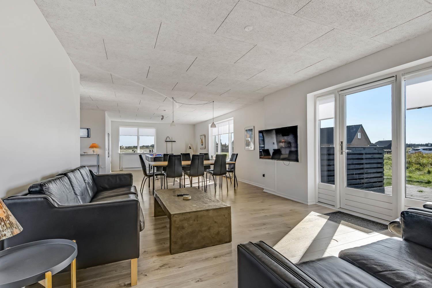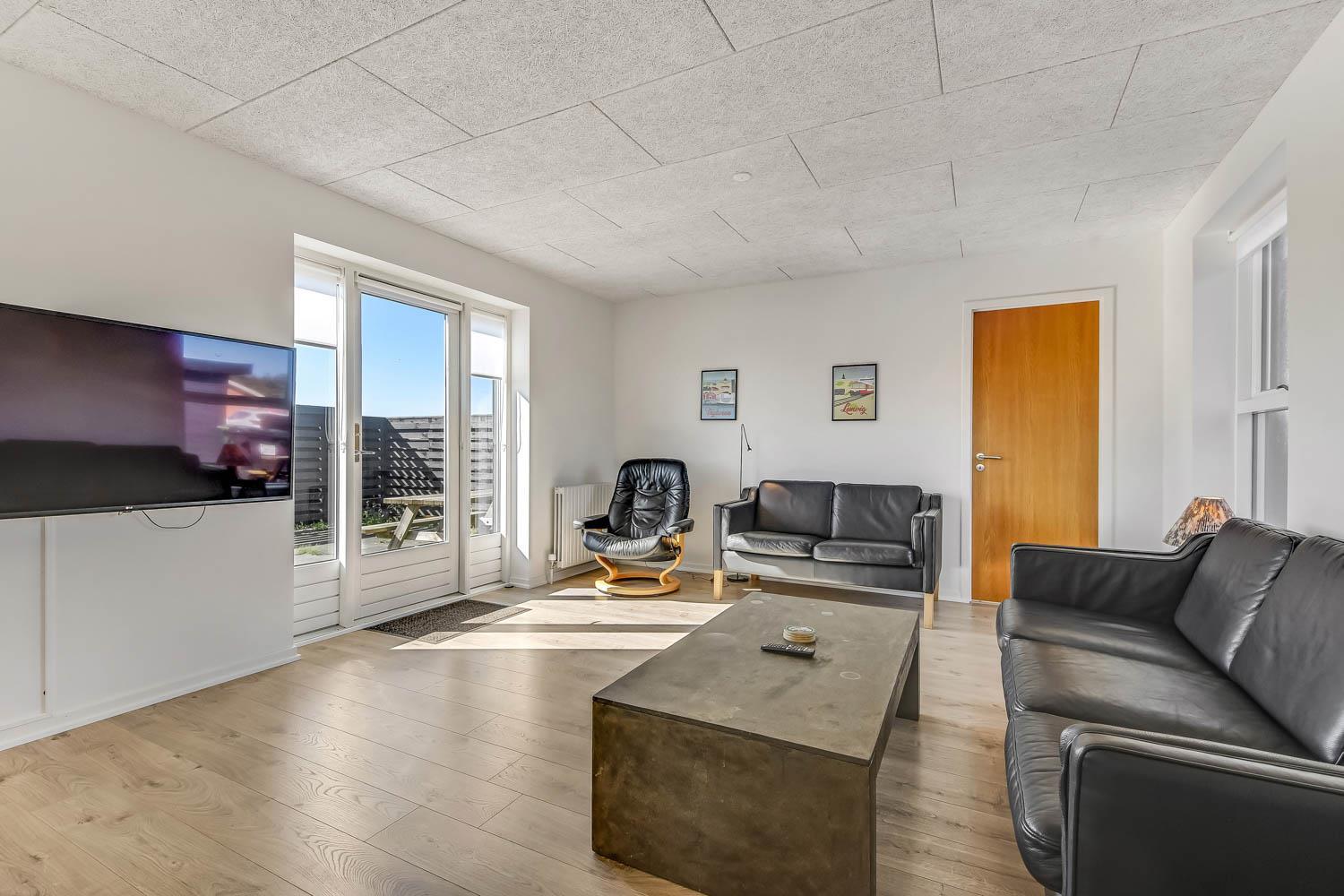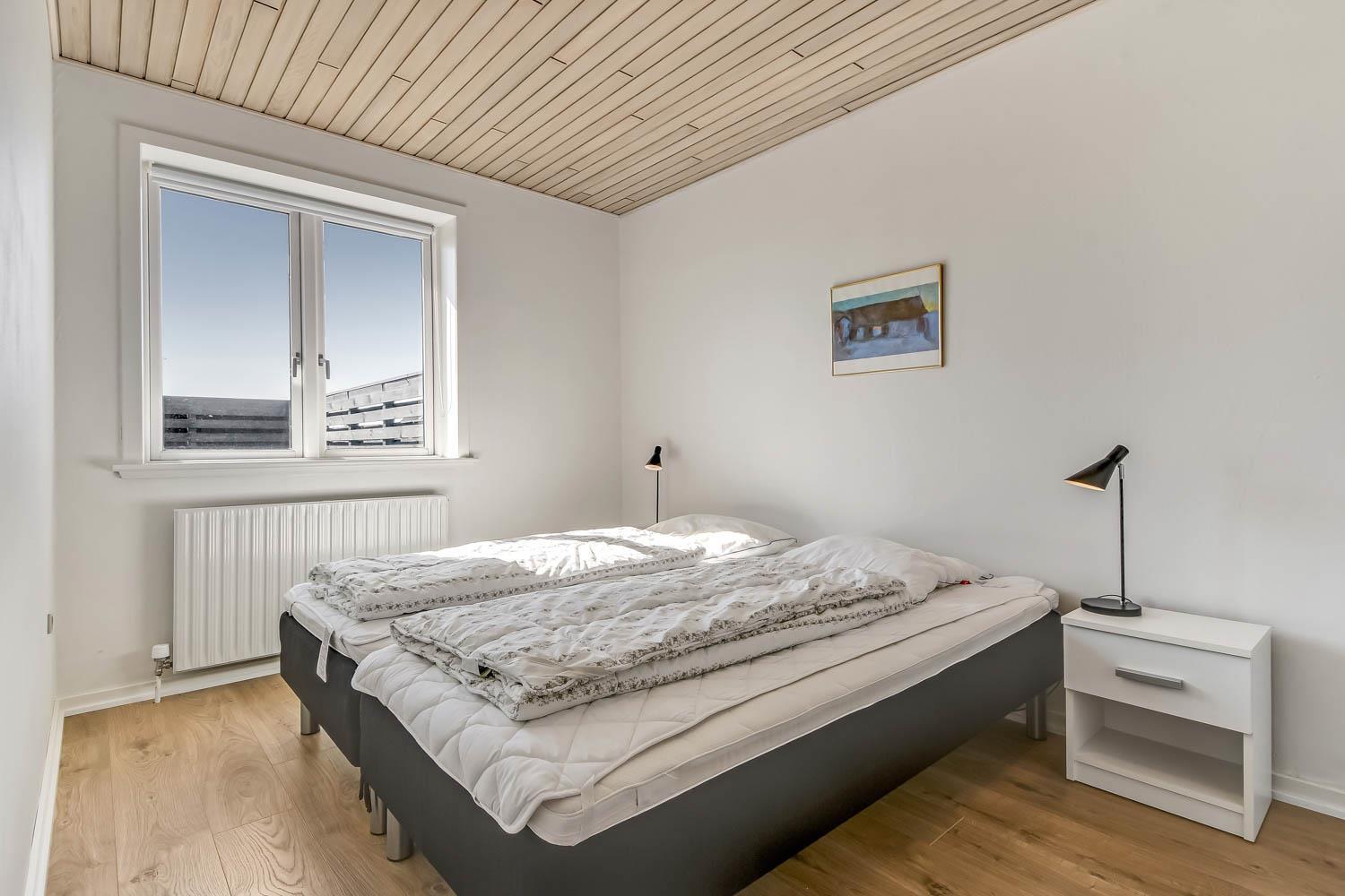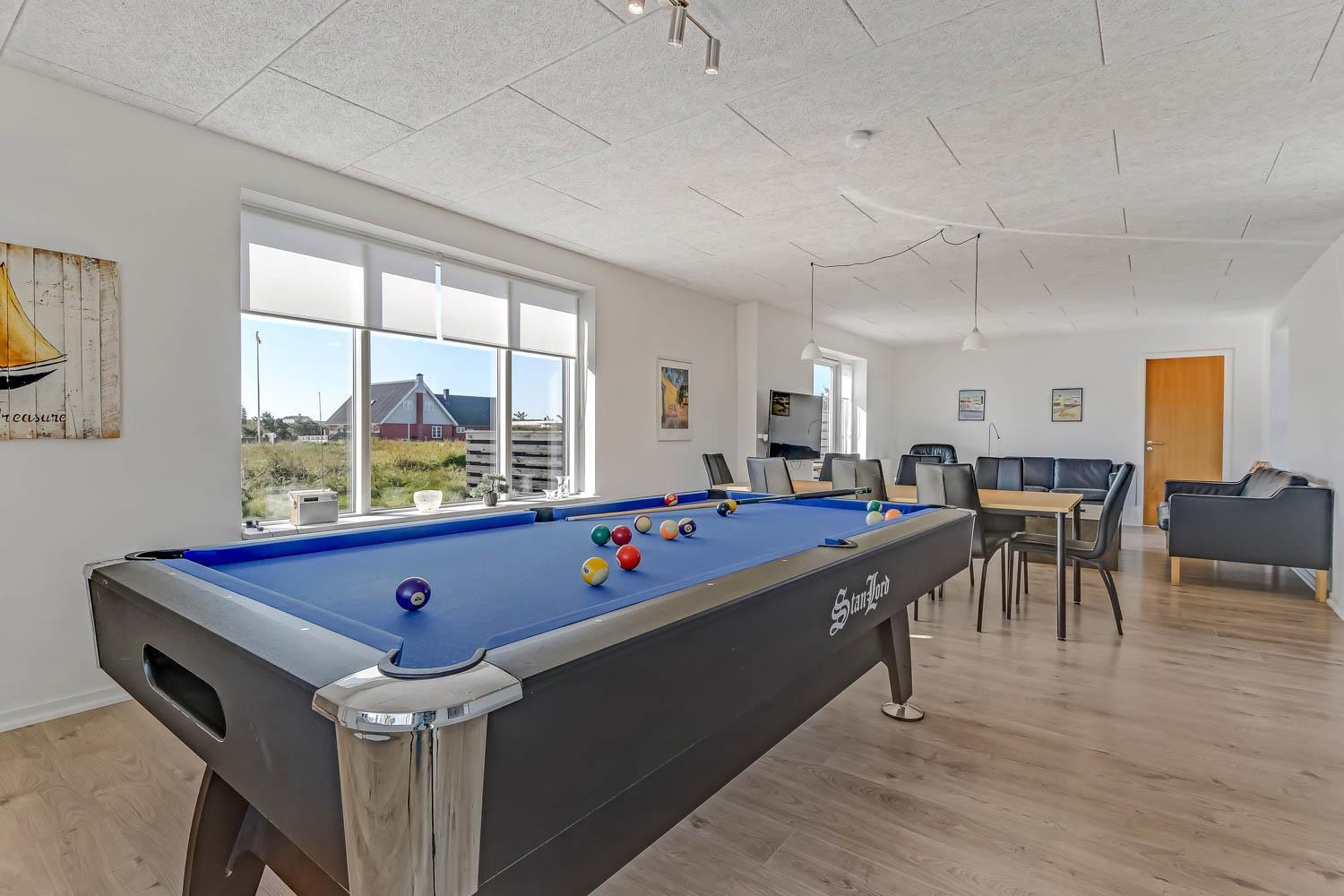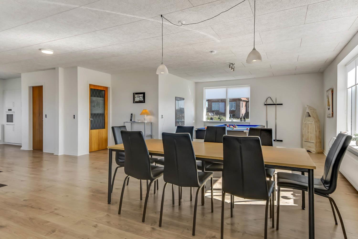 Feriehus på 145 m2. Huset er bygget i 1967 – men er i 2021 blevet totalt istandsat. Huset er minimalistisk i sit udtryk og praktisk indrettet. Entrè med ekstra afliggeplads byder velkommen. Kombineret opholdsstue og køkkenhjørne som er holdt i lyse og venlige farver. Opholdsstuen med, nye lækre lædermøbler, spisebord, Smart-TV med danske og tyske programmer samt mulighed for streaming af TV / radio / Apps samt billardbord. Ideelt til aktivitet hen over hele dagen. Varmepumpen hjælper med at reducere udgiften til varmeregningen. Praktiske og rengøringsvenlige hårde gulve i hele huset. 4 gode soverum med gode nye senge (1DS, 1DS, 1DS, 1DS). Helt nyt og lækkert køkkenhjørne med alt i service / køkkengrej samt komfur med glaskeramiske kogeplader, emhætte, opvaskemaskine, køleskab og mikroovn. Flot, nyt badeværelse klinkegulv med gulvvarme, toilet, håndvask, bruser samt vaskemaskine og tørretumbler. Ekstra badeværelse med klinkegulv med gulvvarme, toilet, håndvask og bruser. Fryser i udehus. Ikke ryger hus. Husdyr ikke tilladt.
