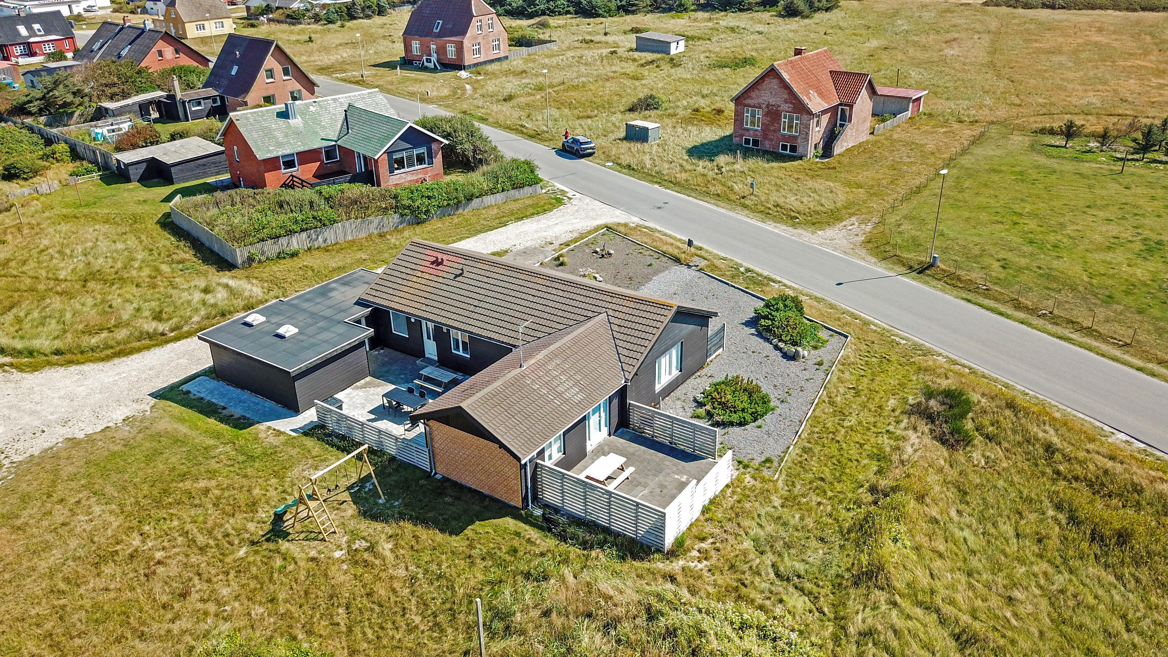Huset er beliggende på en ca. 1.161 m2 stor naturgrund kun 250 m fra Vesterhavet. Der er udgang til 2 fantastisk, nylavet terasser, hvoraf den ene er indhegnet . Havemøbler, solvogne og grill som kan flyttes rundt efter behag. Et utrolig dejligt hus, hvor der er tænkt på det meste og med masser af muligheder. 5 - 10 min fra huset ligger Vesterhavet, der altid invitere til en frisk gå- eller løbetur. Områdets købmand har sæsonåbent og ligger ca. 200 m fra huset og som i sæsonen byder på frisk morgenbrød. Her kan de daglige indkøb også klares. Også området madsted ligger ca. 3.000 fra huset. Inden for 25-30 minutter kan flere aktiviteter og shoppingmuligheder nås. Ideelt indrettet hus til op til 8 personer. Så hvad enten I er til aktiv ferie eller total afslapning, danner dette flotte feriehus en dejlig ramme både hvad angår hus, beliggenhed og omgivelser
