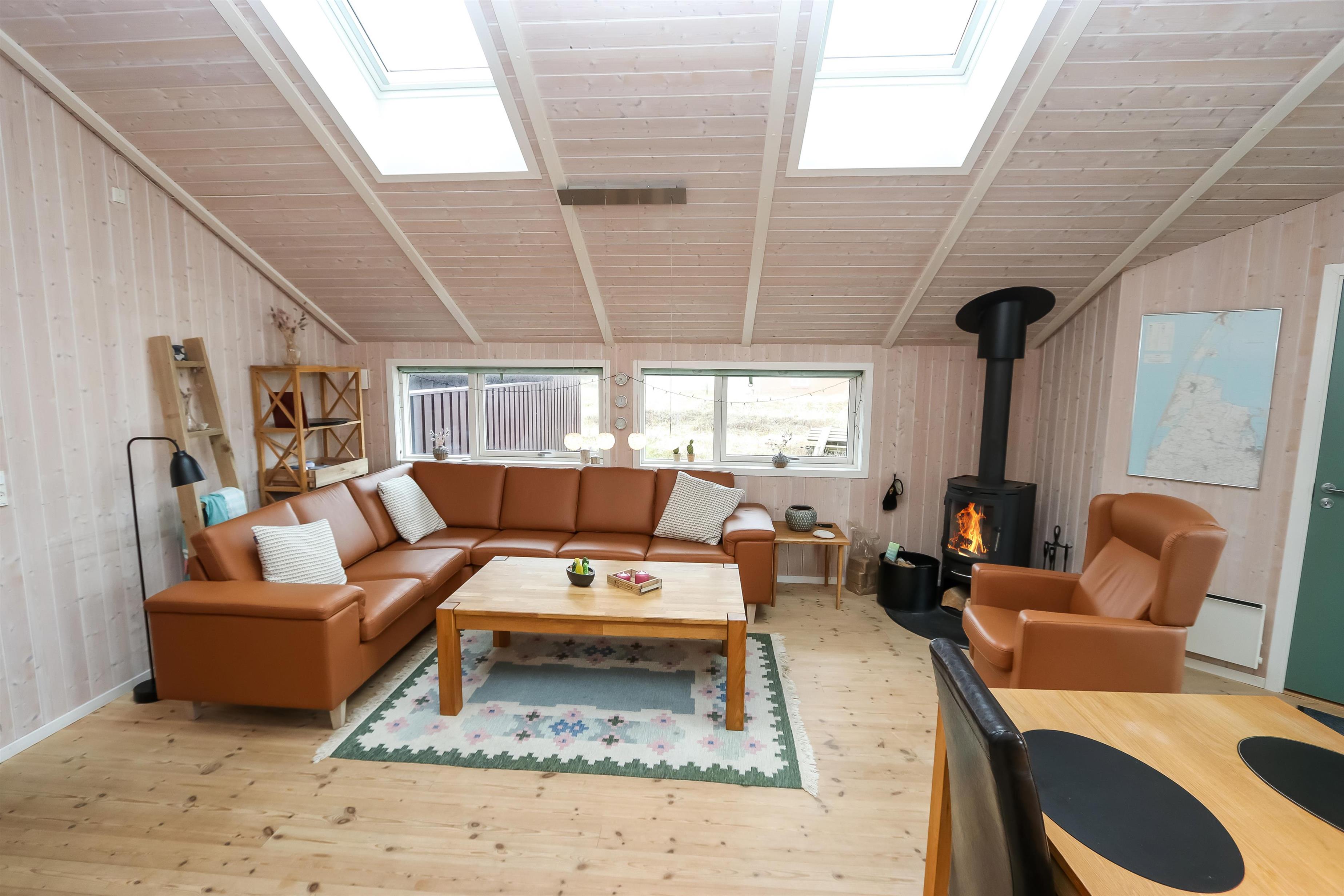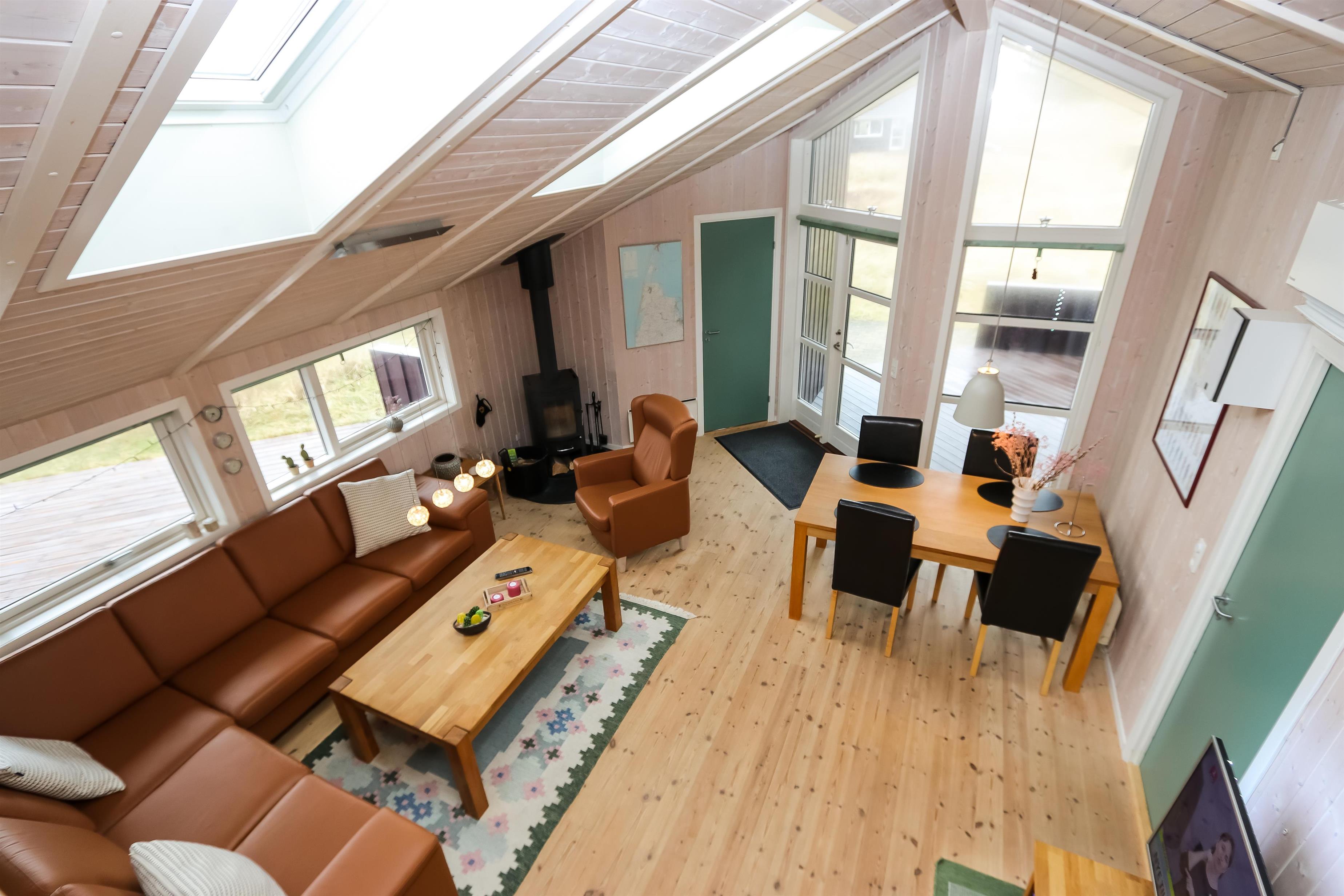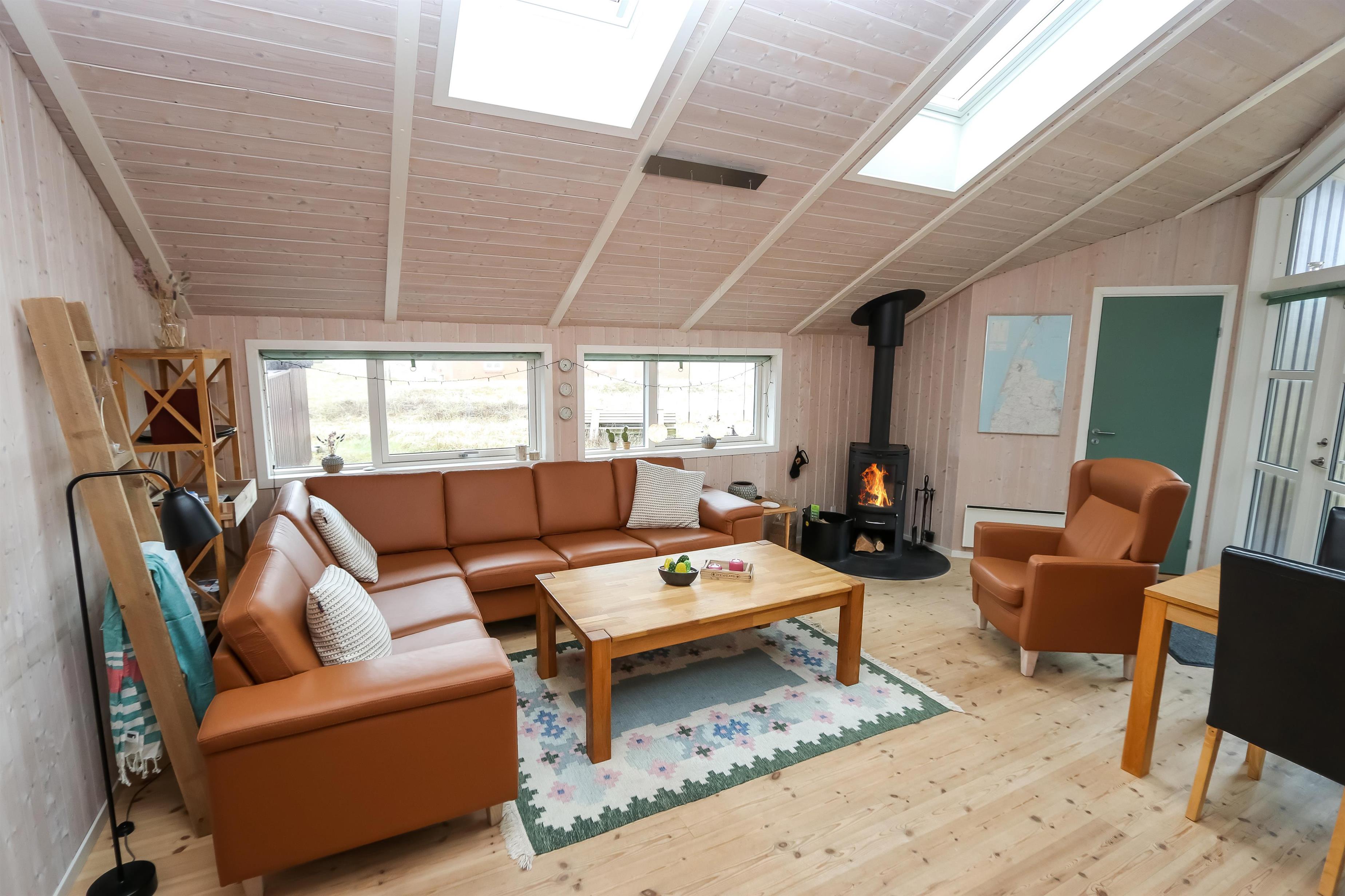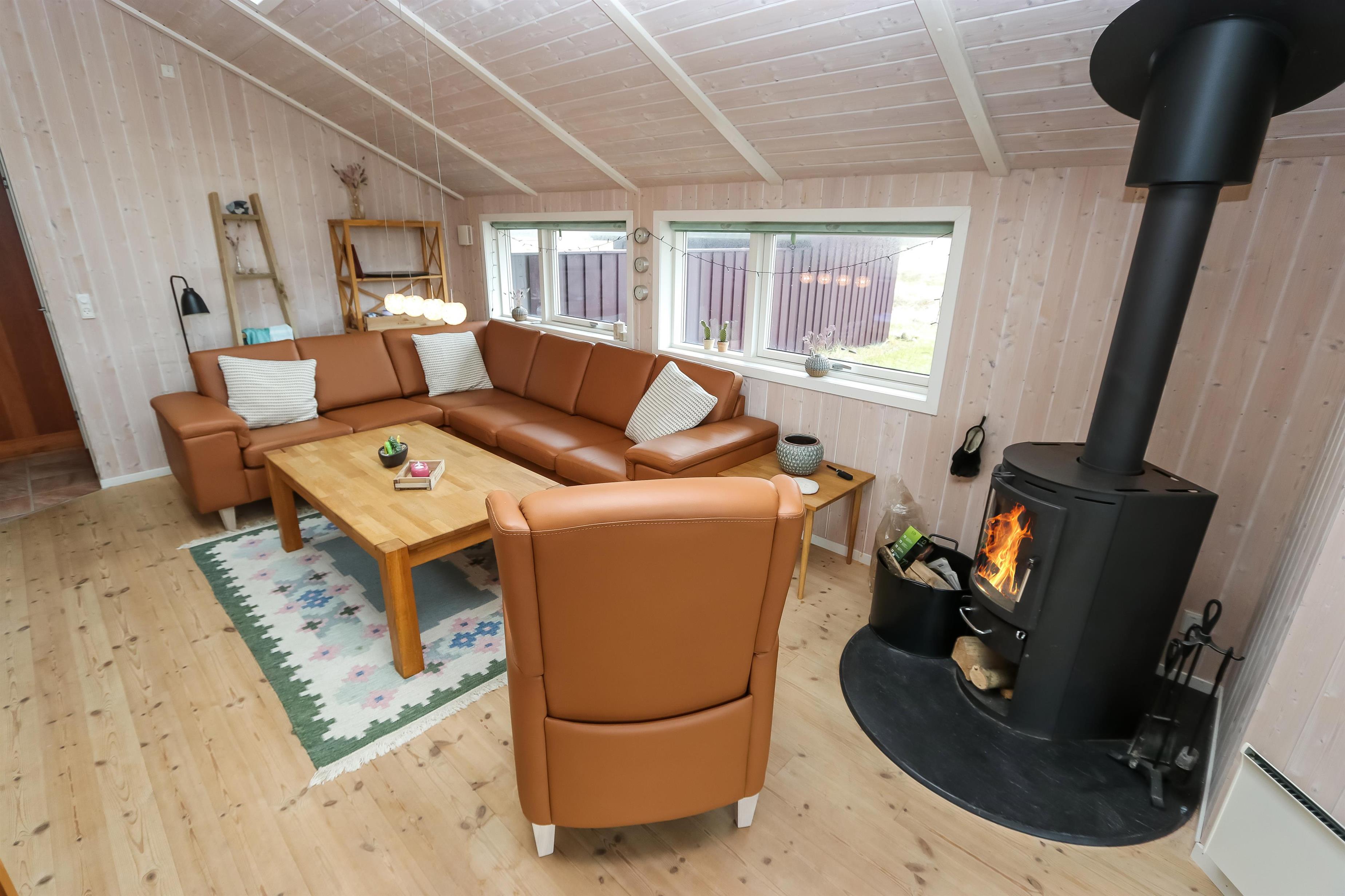 Godt feriehus på 99 m2 bygget i 2005 og løbende renoveret. Der er 3 soverum i huset (1DS, 1ES, 2ES). Desuden er der en hems, hvor der er 2 sovemuligheder. Husets stue er indrettet med lædermøbler af god kvalitet og indeholder desuden TV med danske og tyske programmer, DVD og CD-afspiller samt trægulv. Husets brændeovn og varmepumpe er medvirkende til at forbrugsomkostninger er lavere. Dejlig køkken med glaskeramisk komfur, opvaskemaskine, emhætte, mikroovn og køle-/fryseskab. Gulvet i køkkenafdelingen er linoleum. Der er 2 badeværelser i huset. Det ene badeværelse er med toilet, håndvask, bruser, spa og adgang til sauna. Det andet badeværelse er med toilet og håndvask. Der forefindes vaskemaskine og tørretumbler. Har man el-bil eller en Plug-In hybrid, så er der Ladeboks ved huset. Huset er et ikke ryger hus og husdyr er ikke tilladt.
