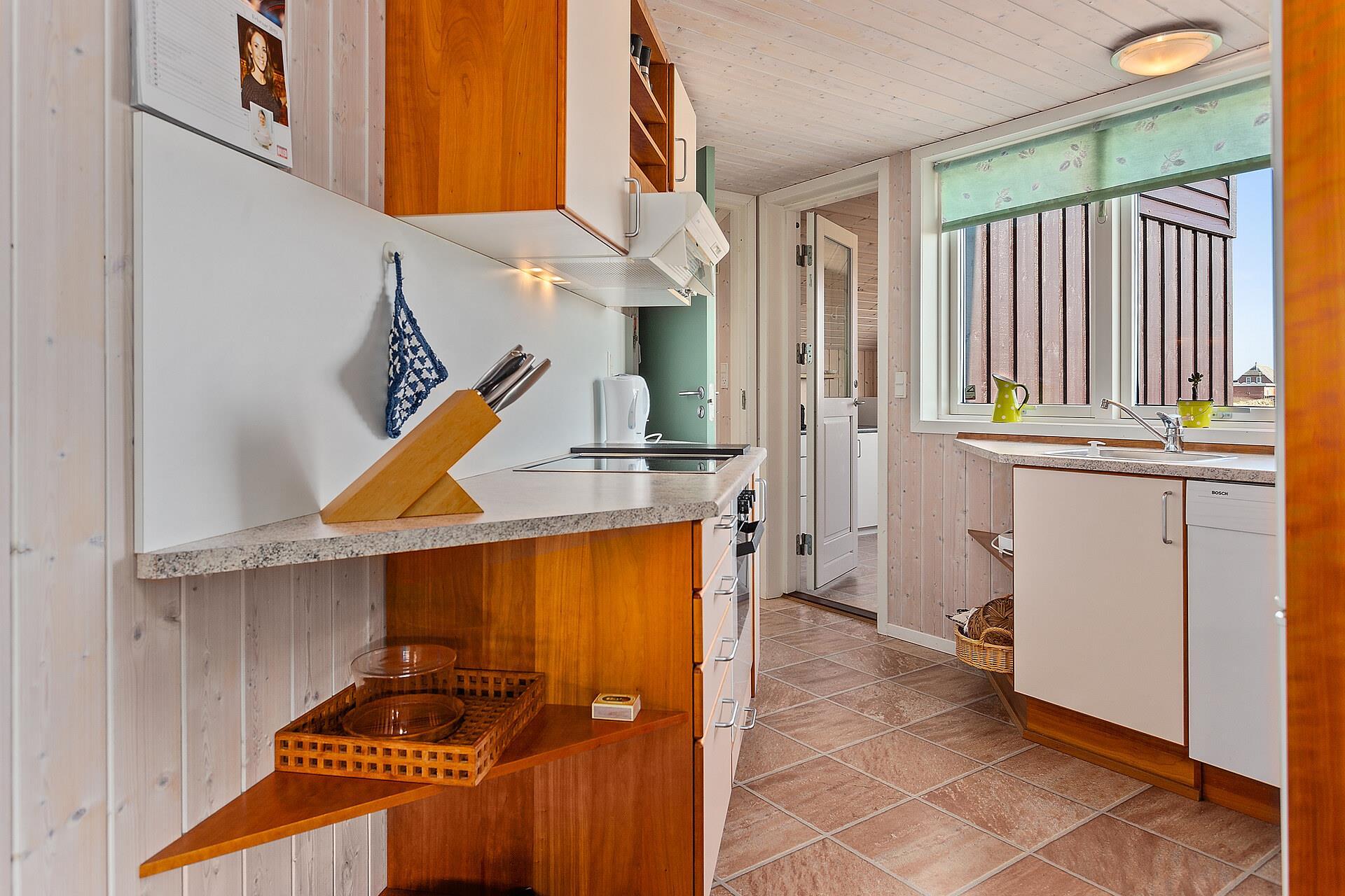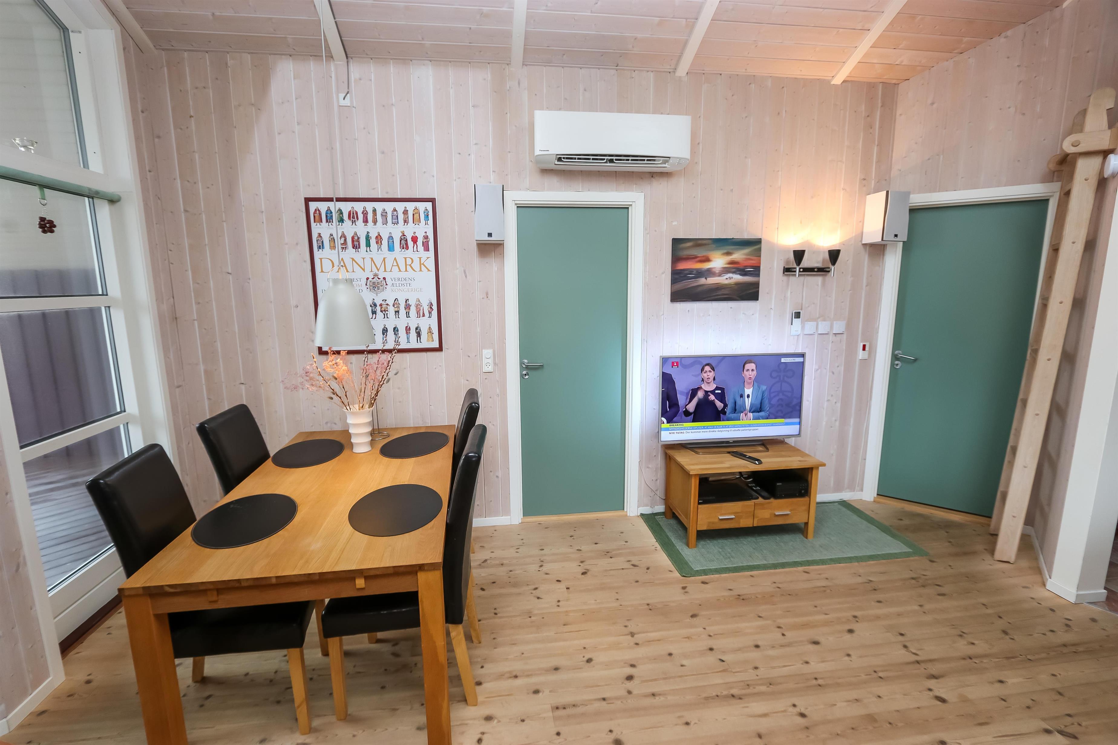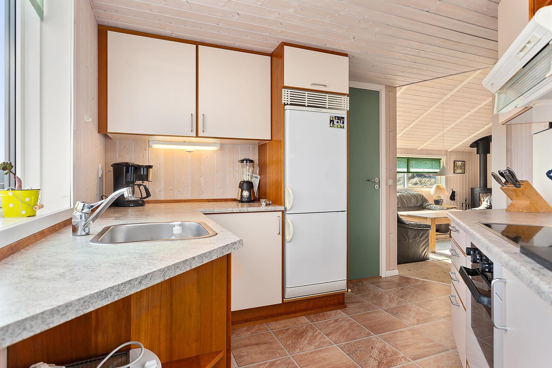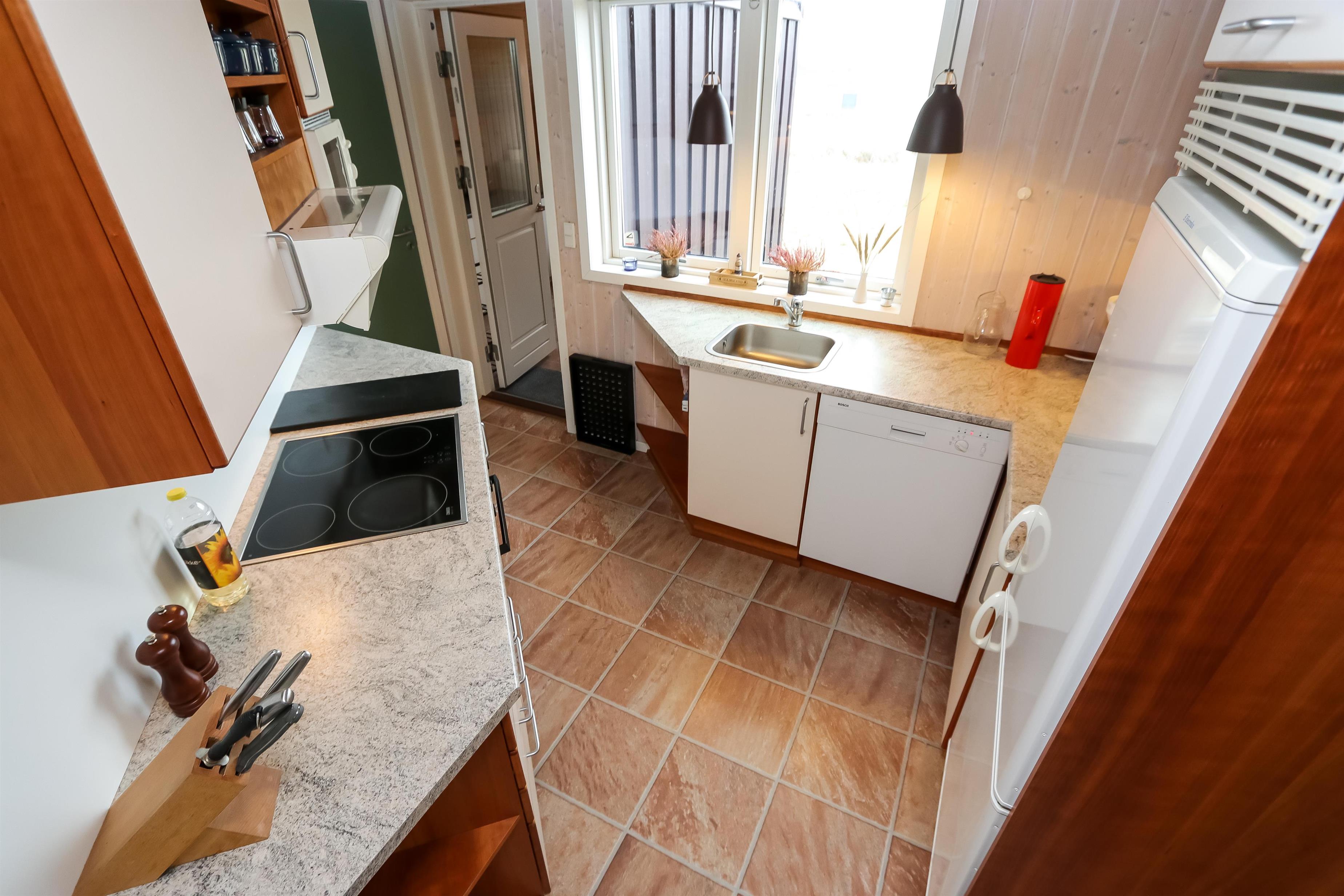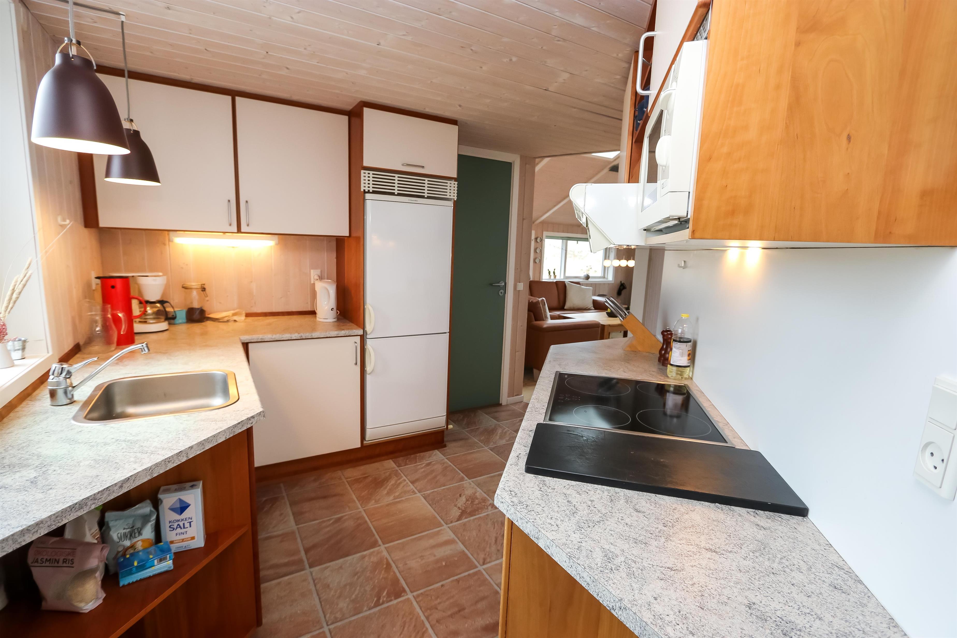 Godt feriehus på 99 m2 bygget i 2005 og løbende renoveret. Der er 3 soverum i huset (1DS, 1ES, 2ES). Desuden er der en hems, hvor der er 2 sovemuligheder. Husets stue er indrettet med lædermøbler af god kvalitet og indeholder desuden TV med danske og tyske programmer, DVD og CD-afspiller samt trægulv. Husets brændeovn og varmepumpe er medvirkende til at forbrugsomkostninger er lavere. Dejlig køkken med glaskeramisk komfur, opvaskemaskine, emhætte, mikroovn og køle-/fryseskab. Gulvet i køkkenafdelingen er linoleum. Der er 2 badeværelser i huset. Det ene badeværelse er med toilet, håndvask, bruser, spa og adgang til sauna. Det andet badeværelse er med toilet og håndvask. Der forefindes vaskemaskine og tørretumbler. Har man el-bil eller en Plug-In hybrid, så er der Ladeboks ved huset. Huset er et ikke ryger hus og husdyr er ikke tilladt.
