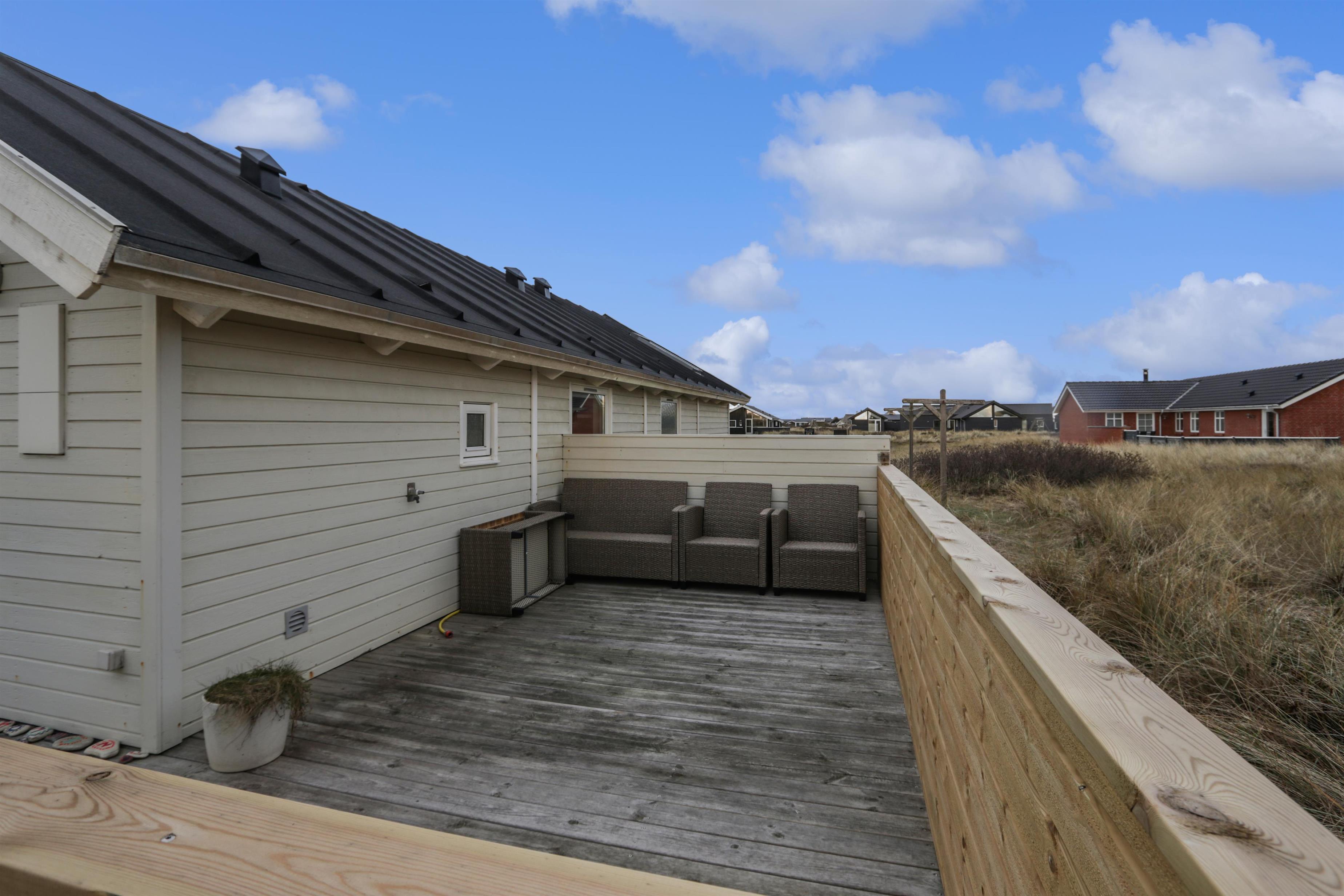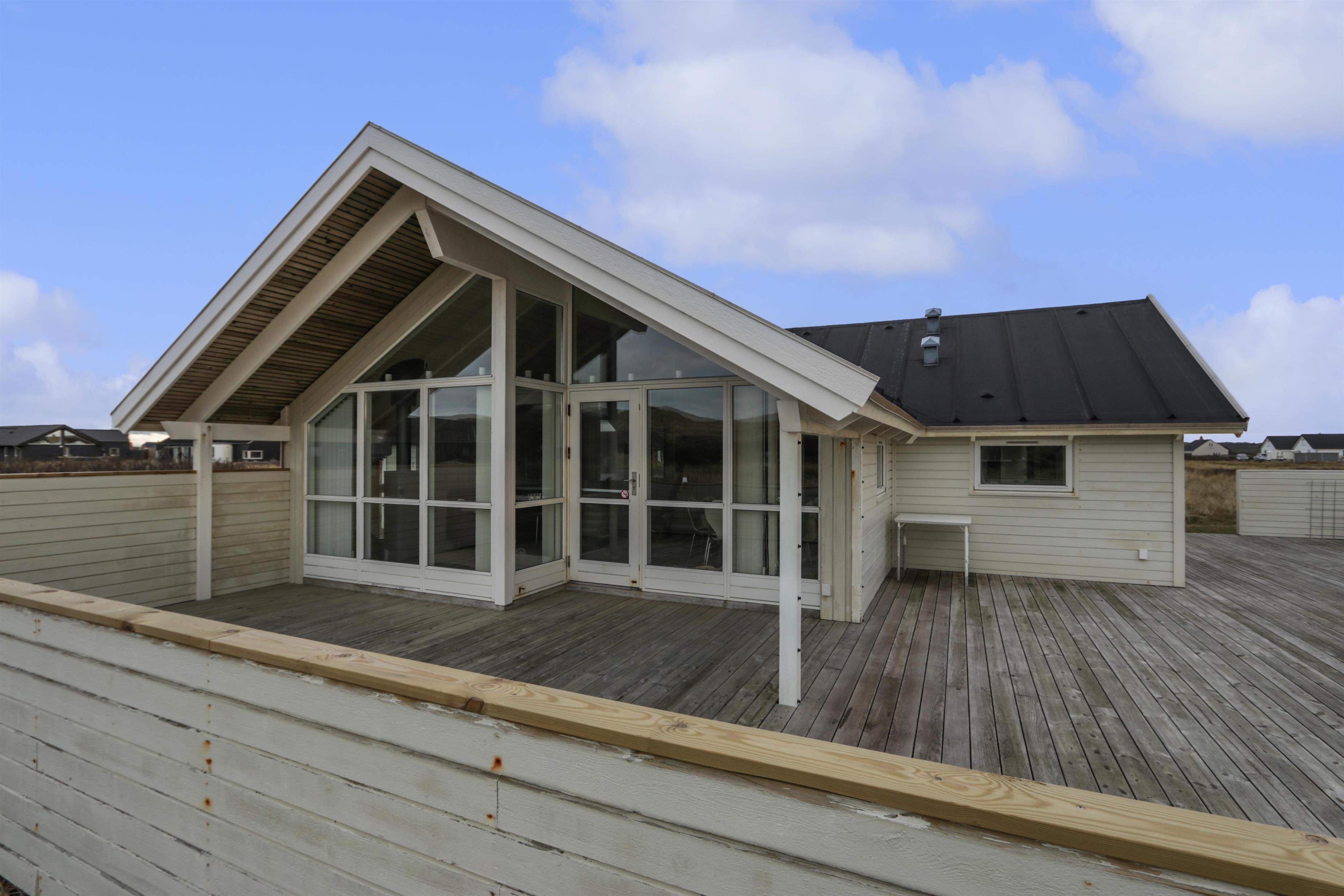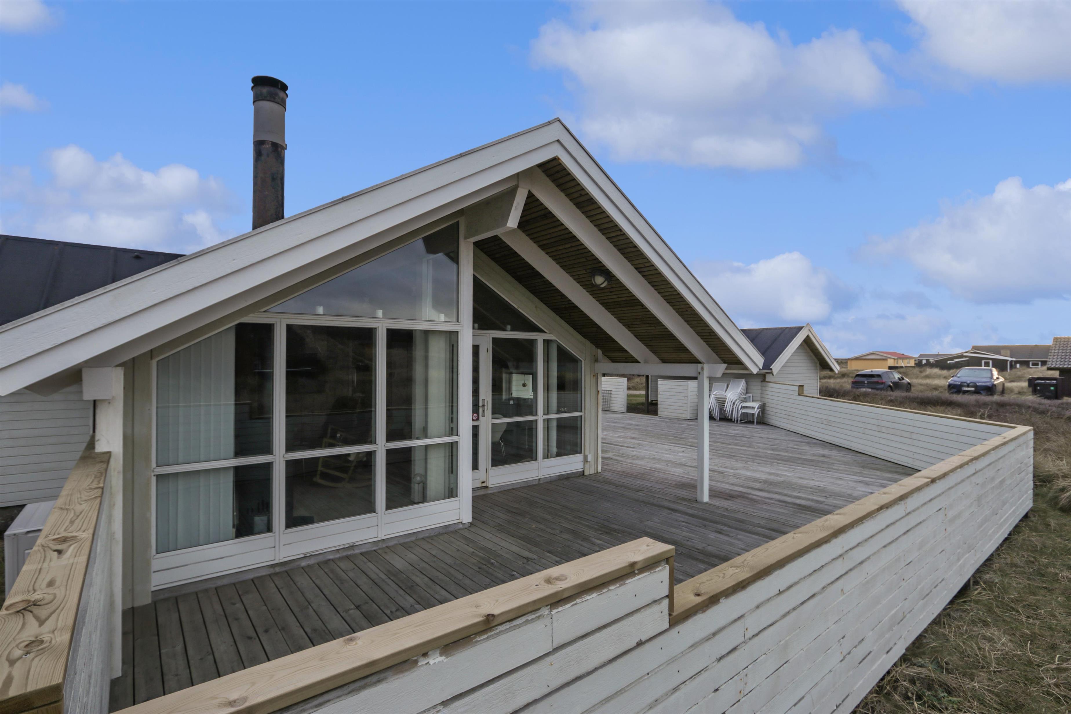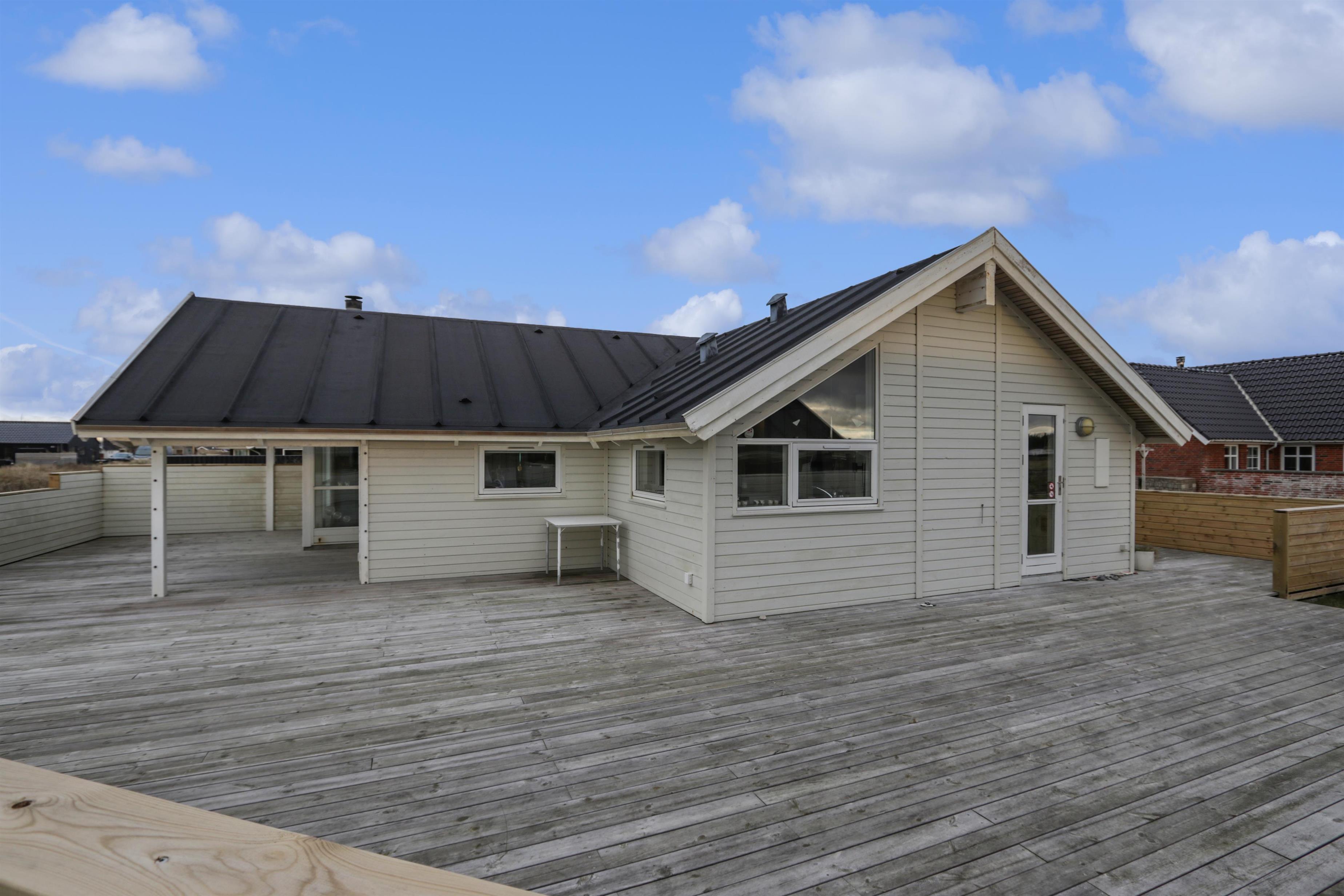 Udendørs kan ferien nydes på husets store, skønne terrasseanlæg. den vestvendt terrassedel er delvist overdækket og perfekt til de lange sommeraftener.