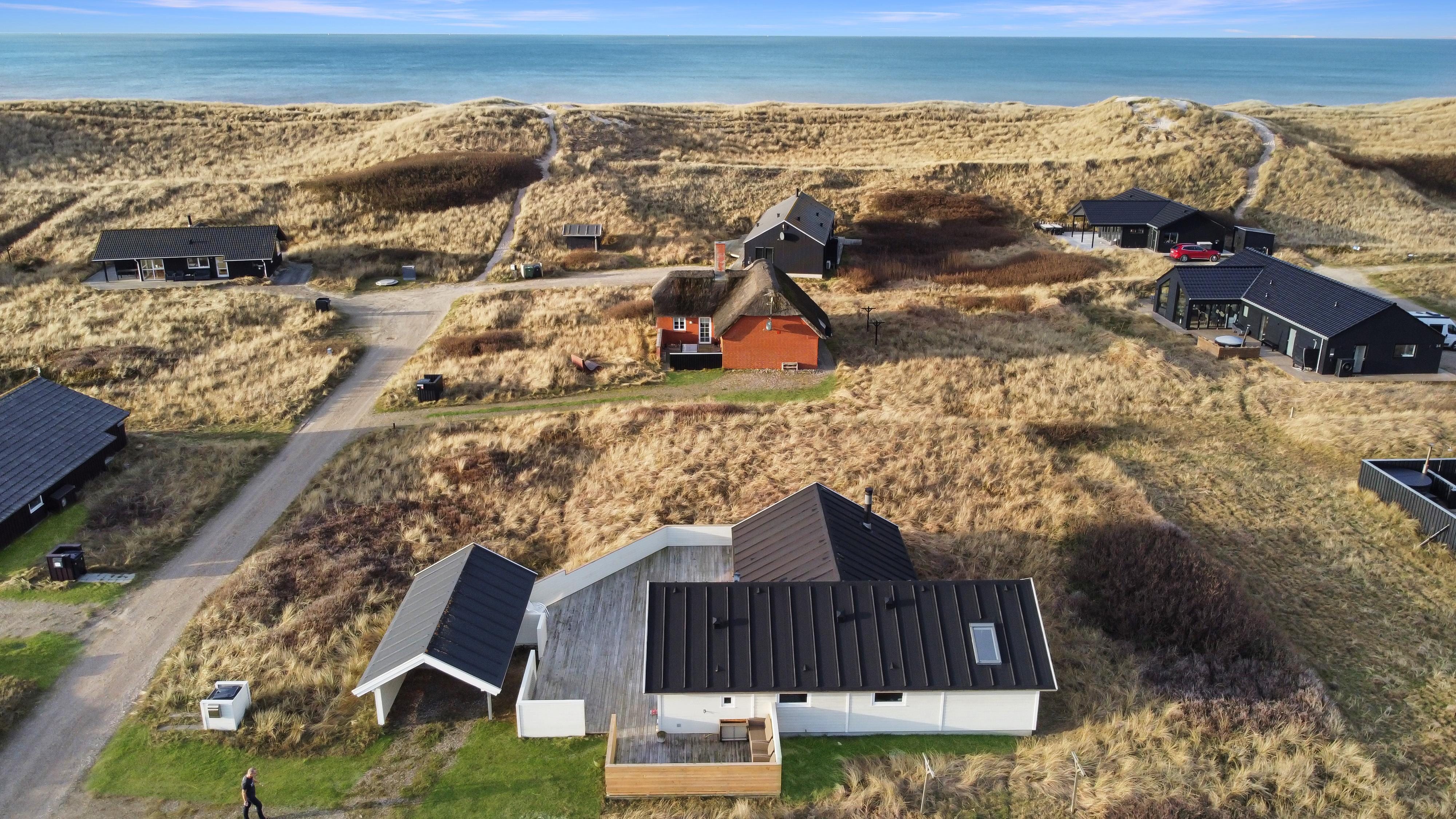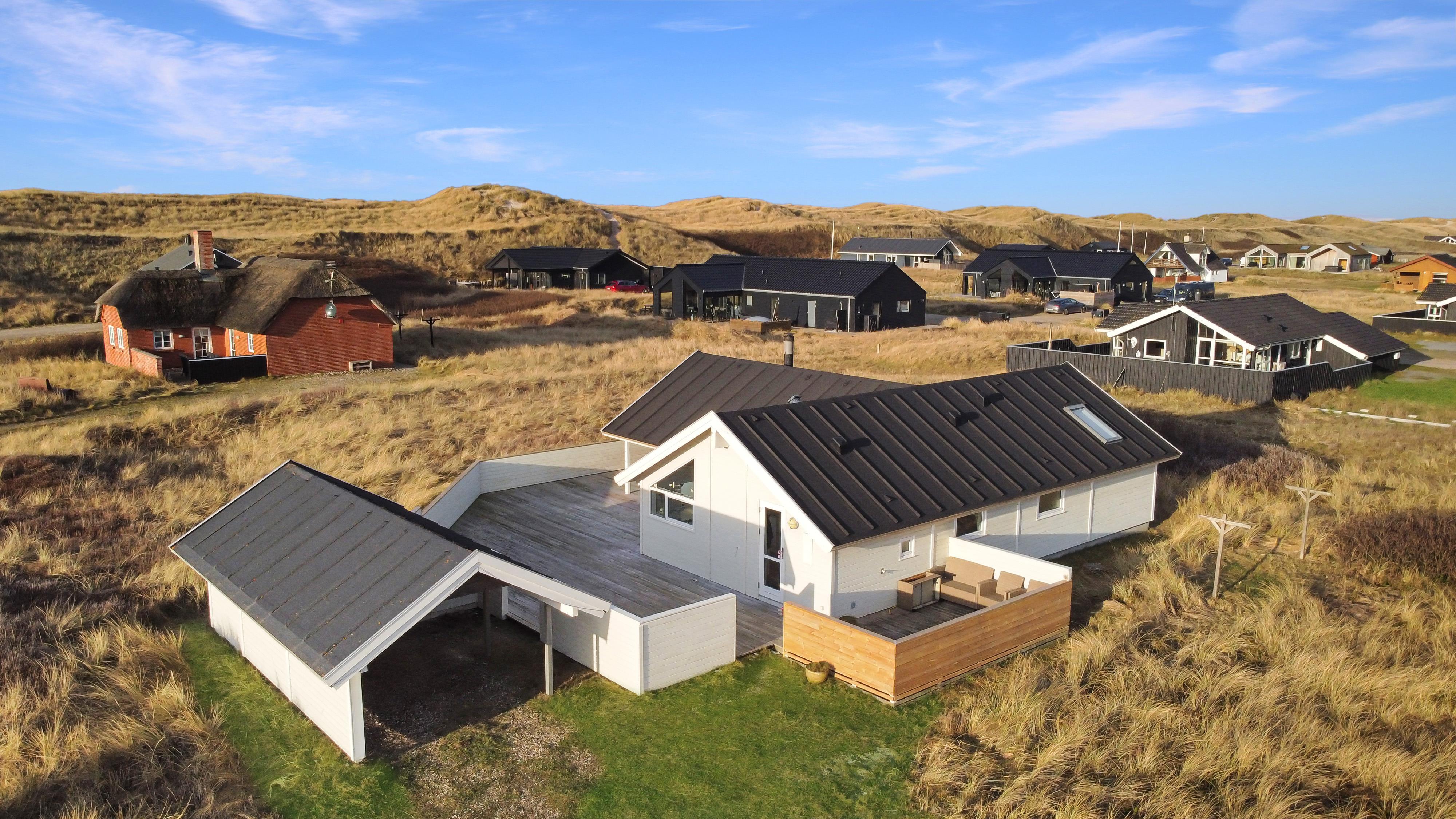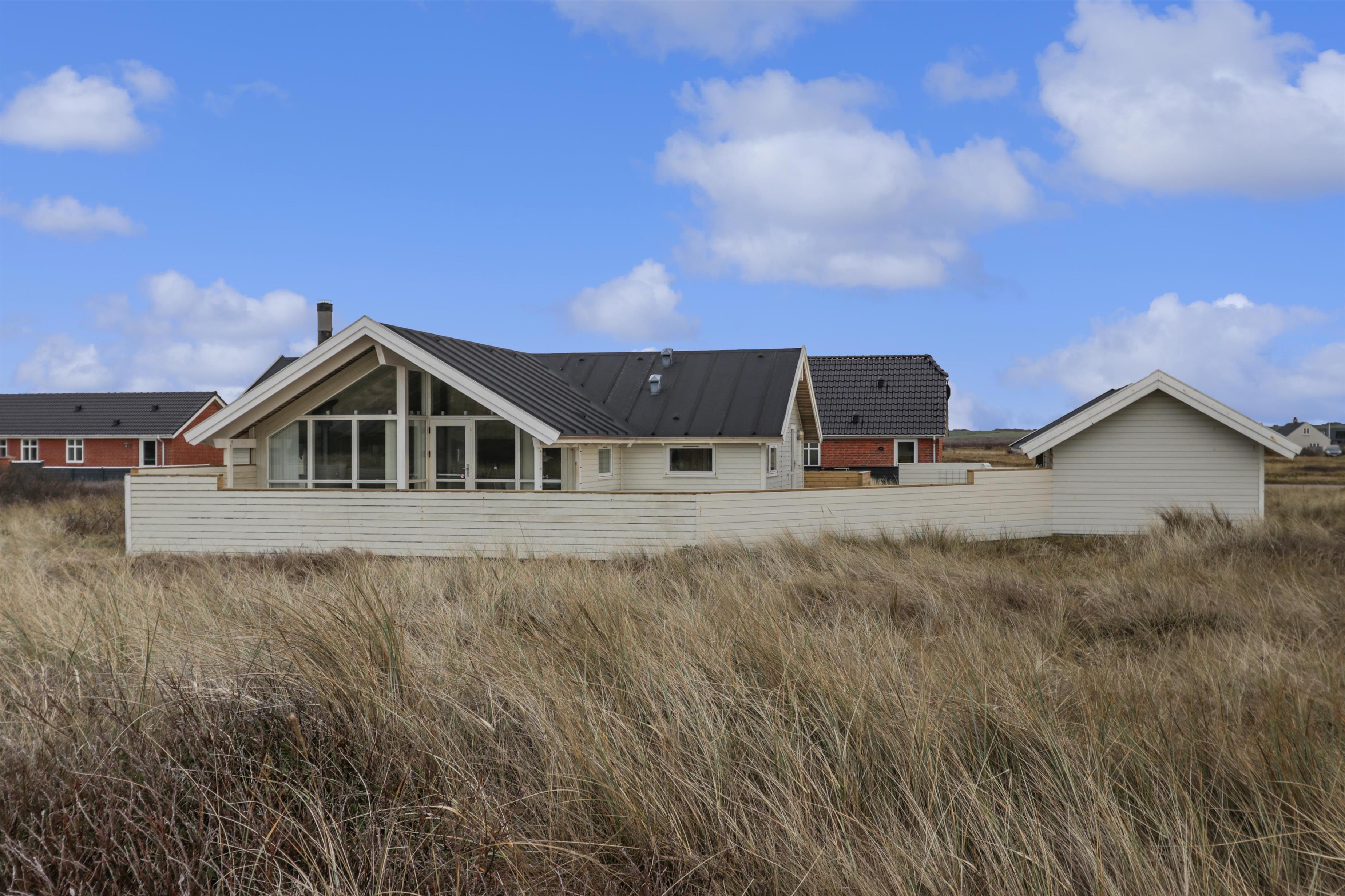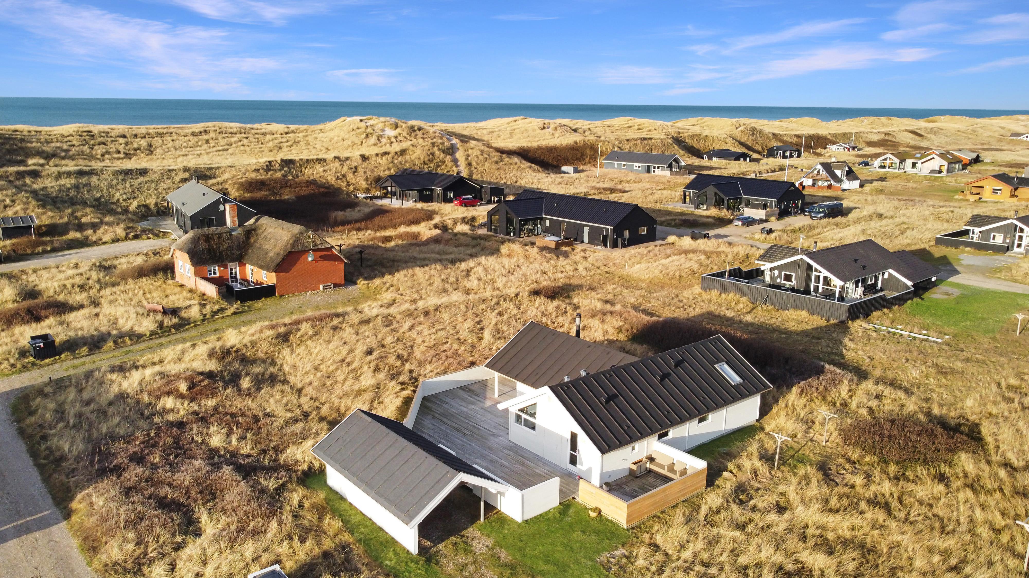 Huset ligger ugeneret på en stor 1.241 m² natur- og klitgrund, hvor marehalmen vajer i vinden, og hvor I kan nyde stilheden og den friske havluft. Indenfor mødes I af en lys, venlig og indbydende atmosfære med trægulve i hele huset og en gennemtænkt indretning, der indbyder til nærvær og afslapning.