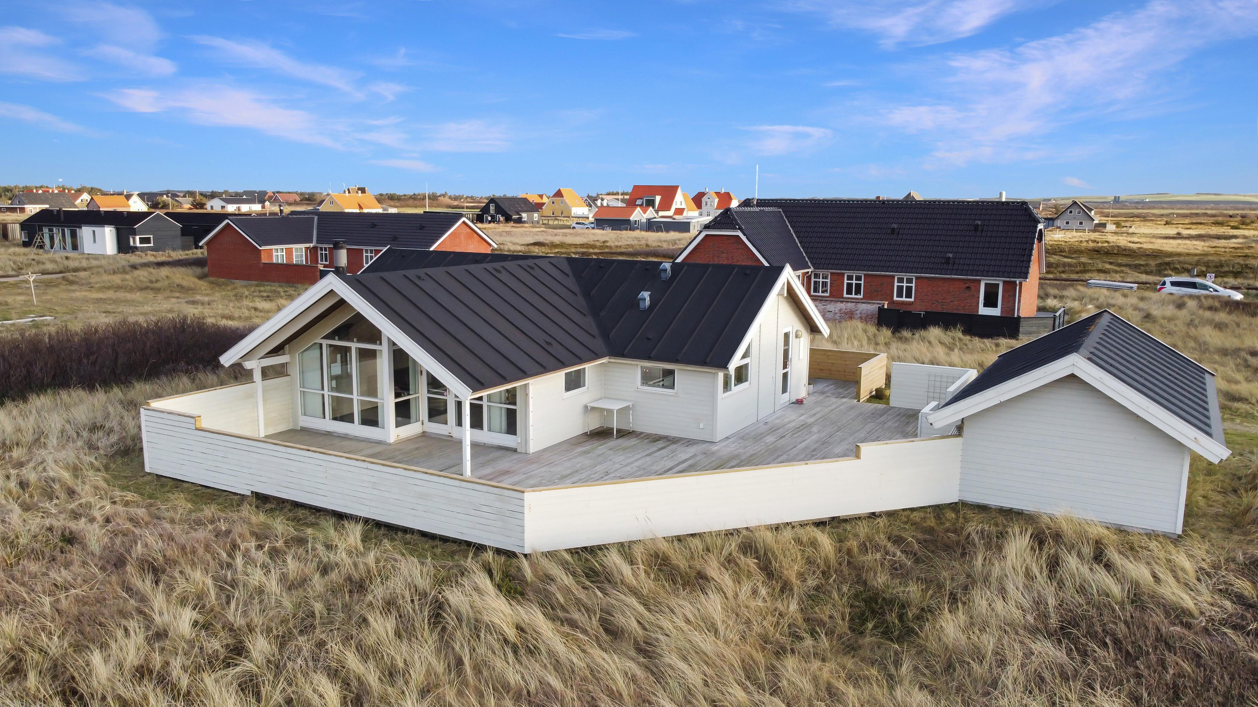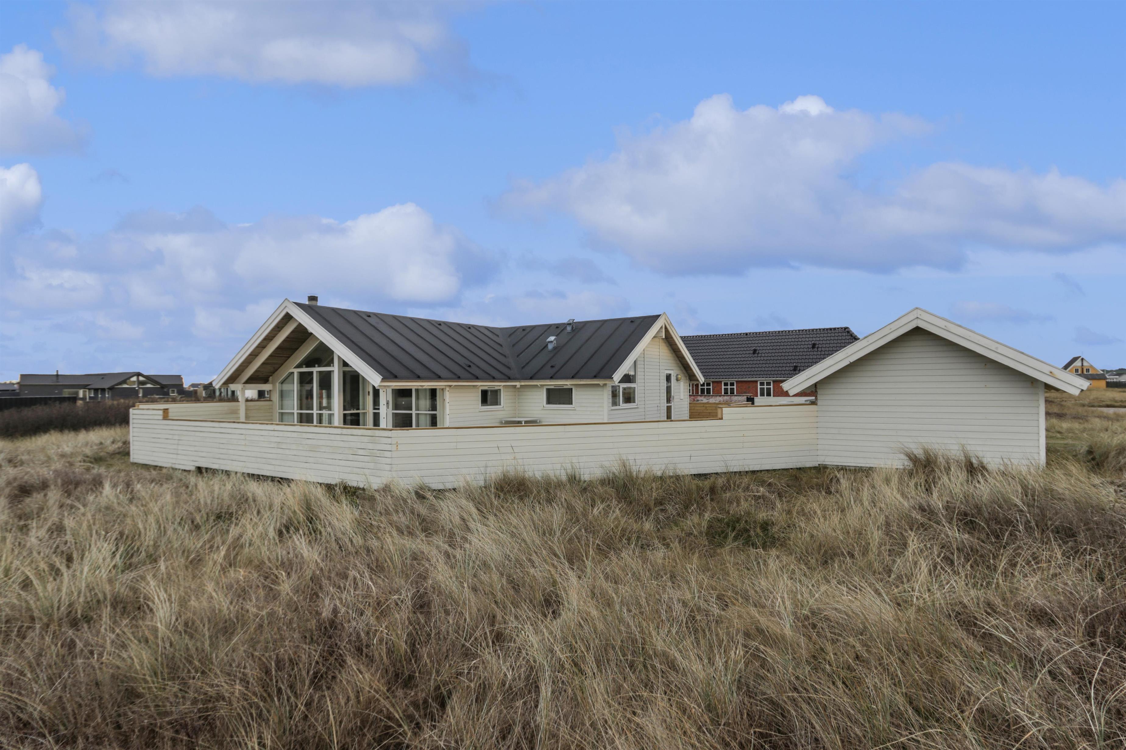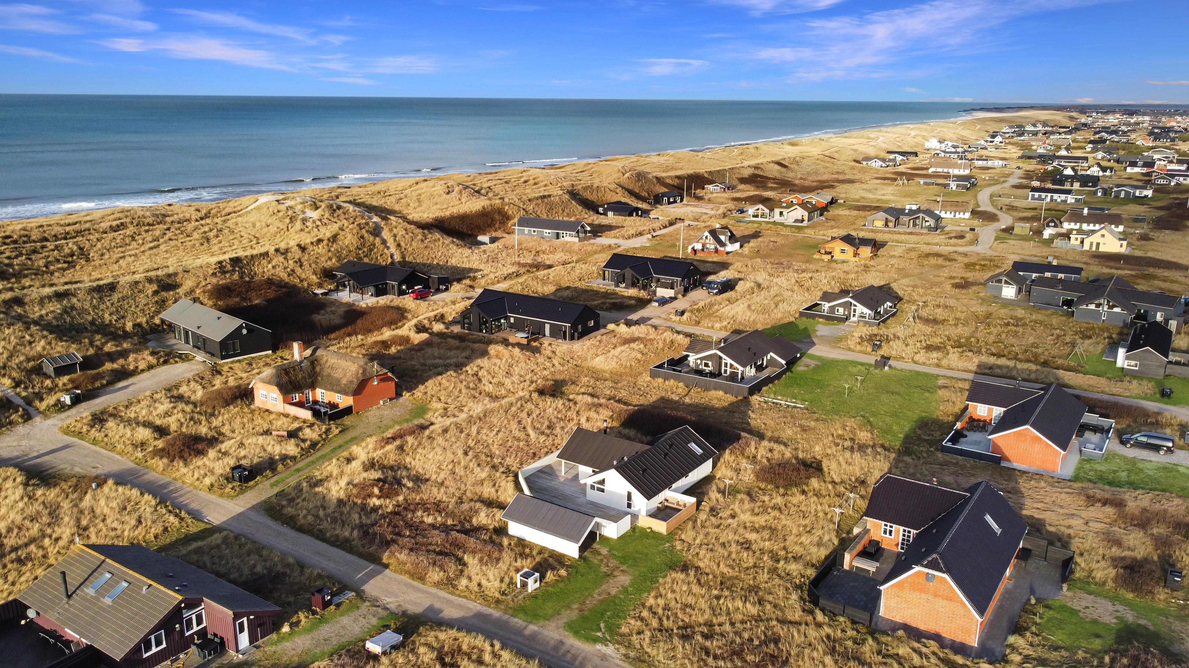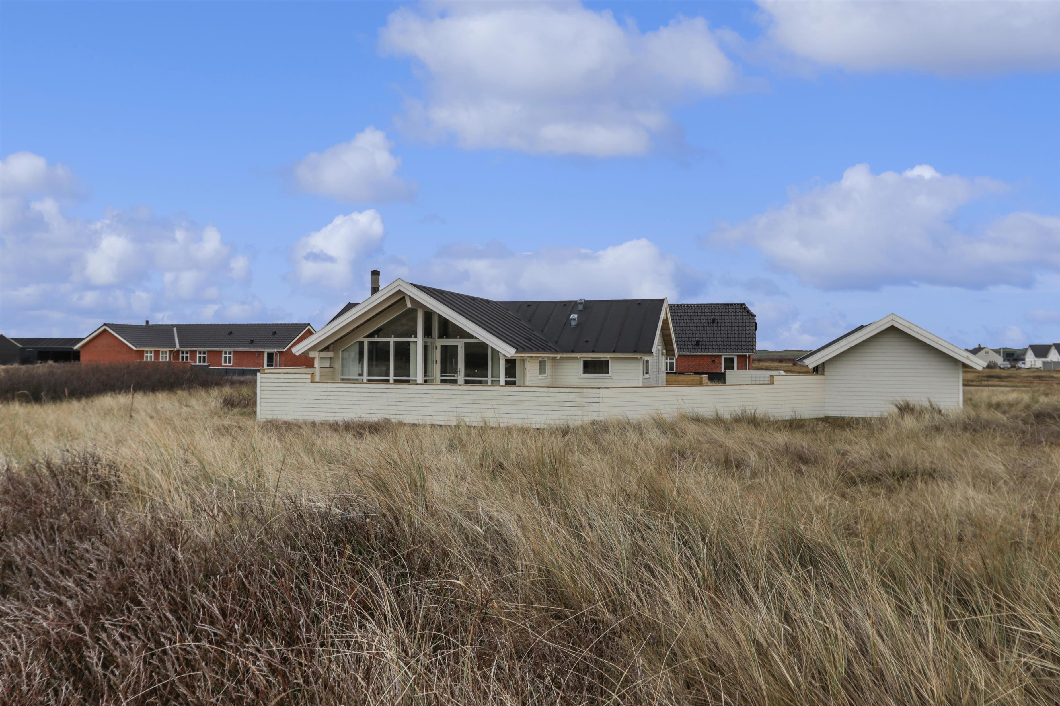 Huset ligger ugeneret på en stor 1.241 m² natur- og klitgrund, hvor marehalmen vajer i vinden, og hvor I kan nyde stilheden og den friske havluft. Indenfor mødes I af en lys, venlig og indbydende atmosfære med trægulve i hele huset og en gennemtænkt indretning, der indbyder til nærvær og afslapning.