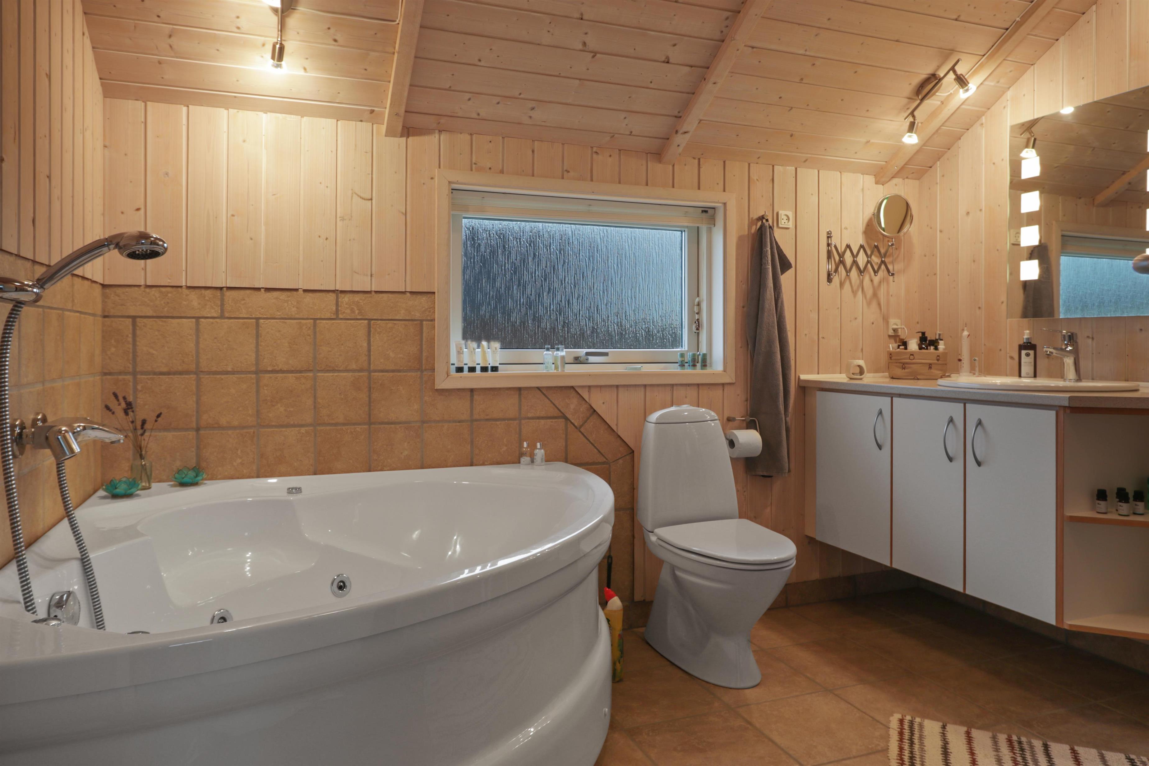 Huset rummer tre dejlige soveværelser med gode senge og plads til hele familien, samt to badeværelser. Det store badeværelse er en sand wellness-oase med gulvvarme, spabad og direkte adgang til sauna – perfekt efter en lang gåtur langs stranden.