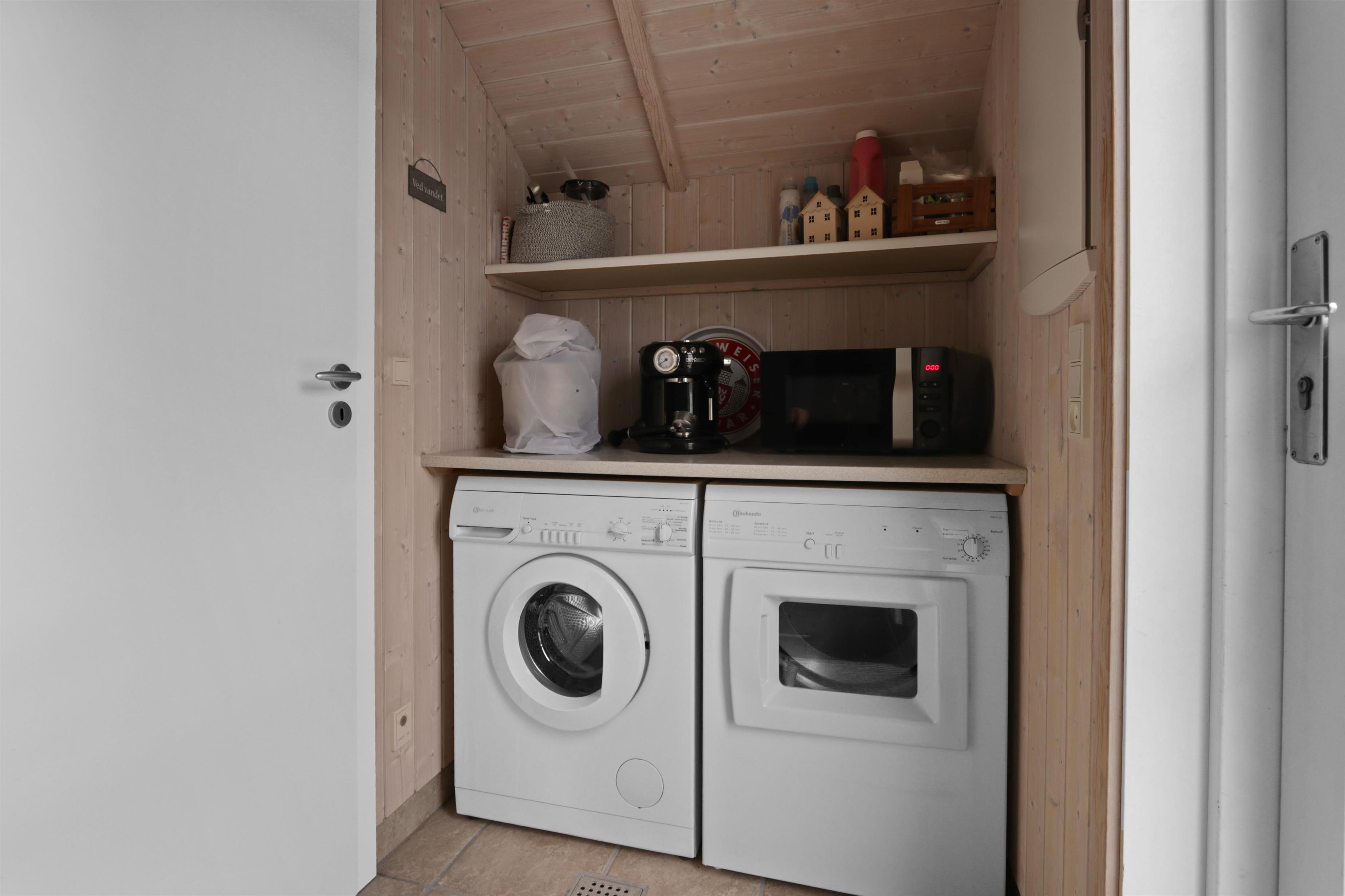 Dejlig entré med vaskemaskine, tørretumbler og god plads til overtøj og sko.