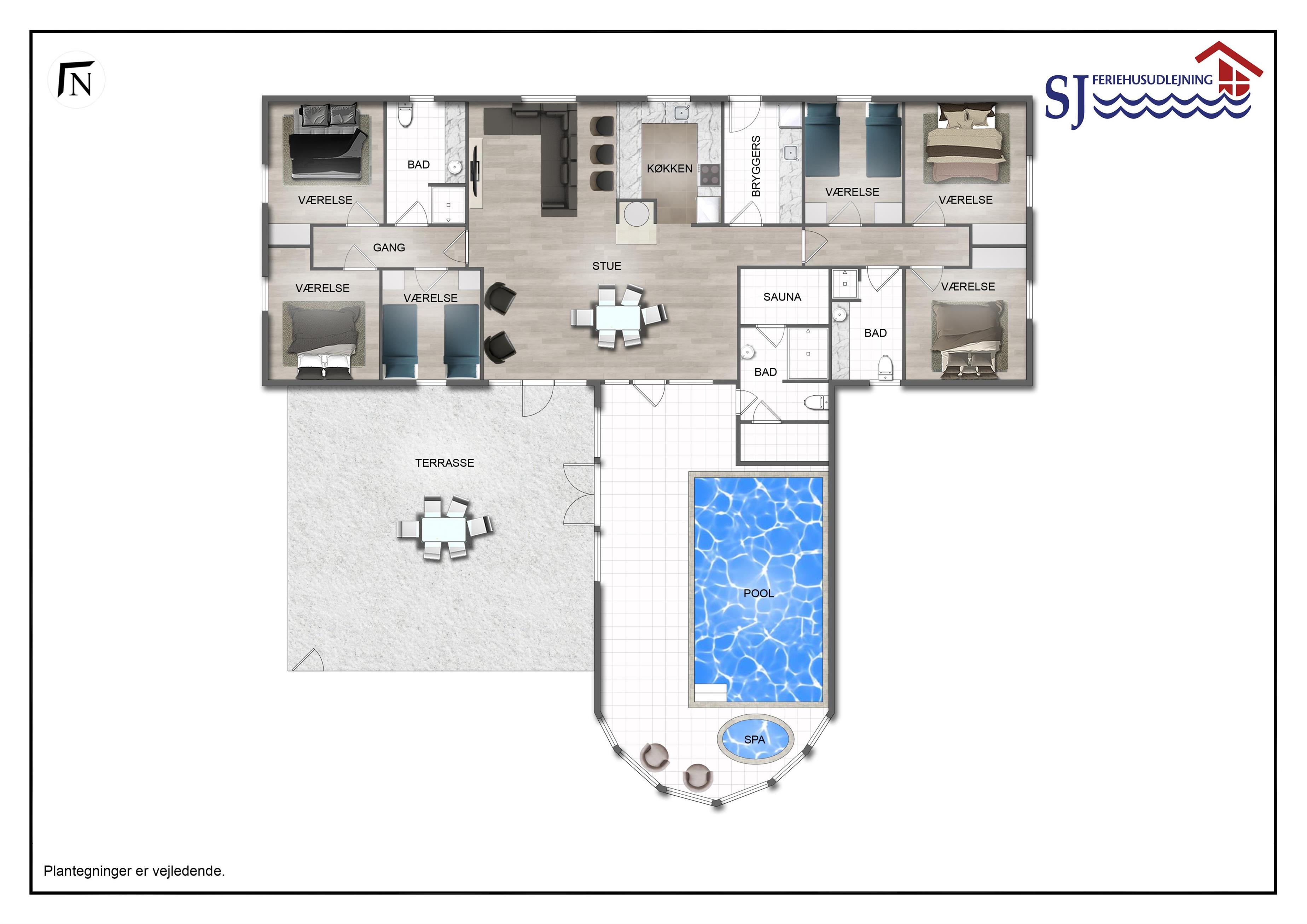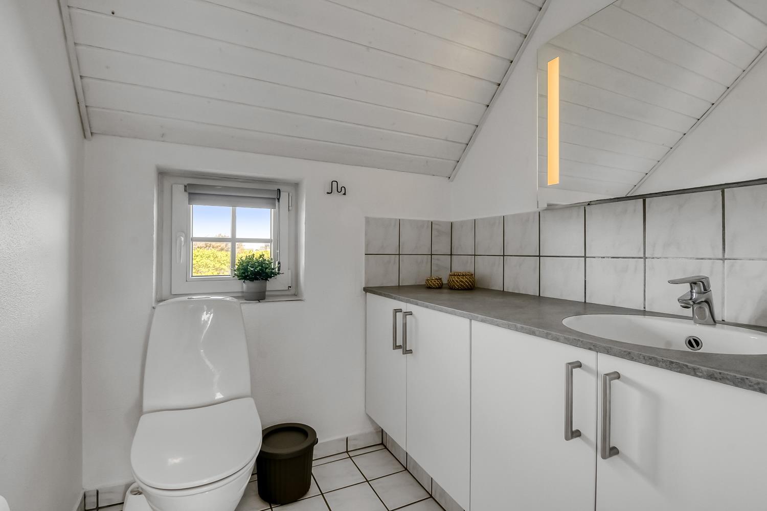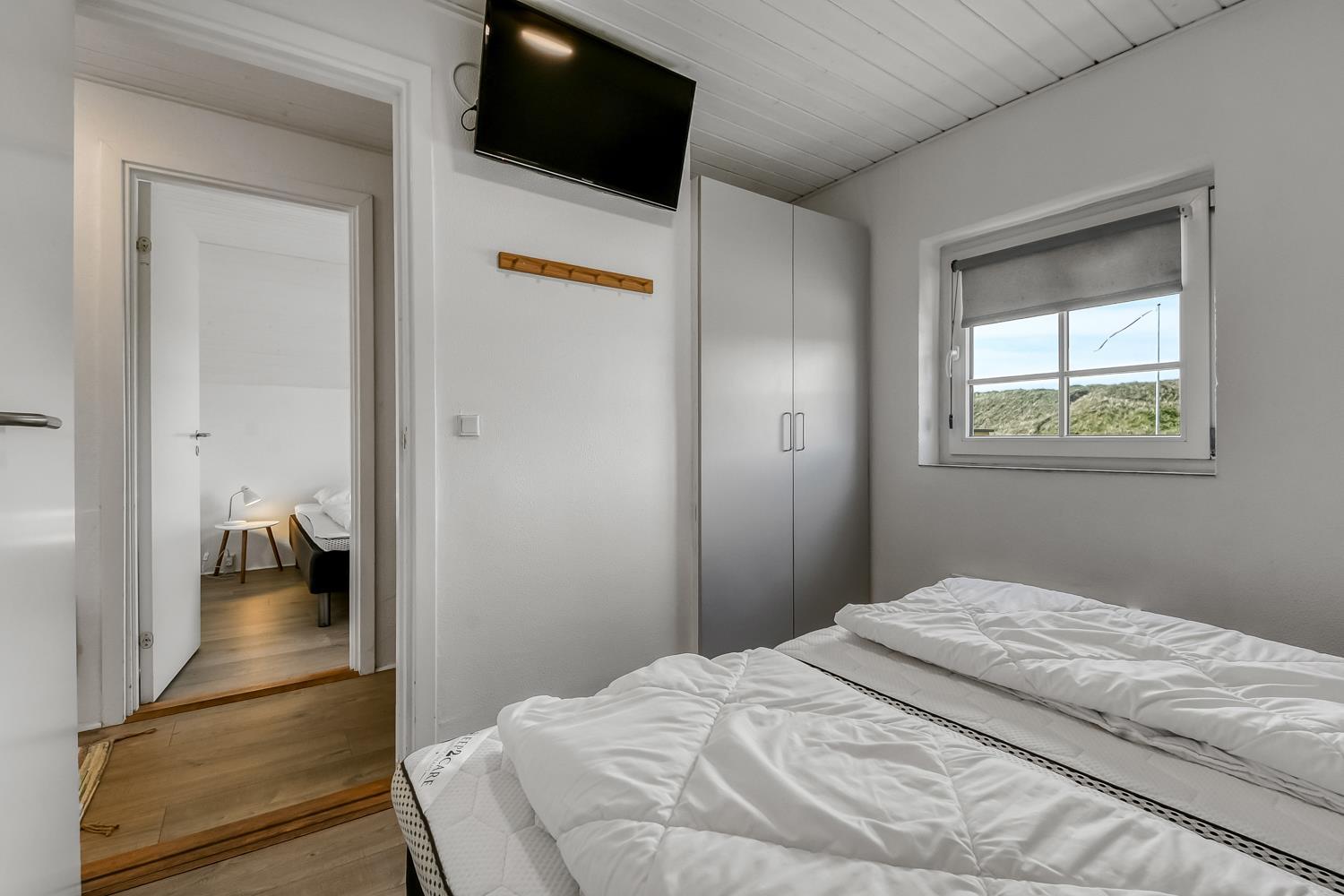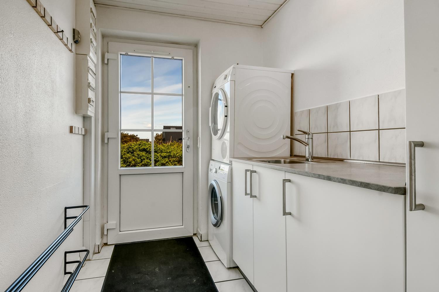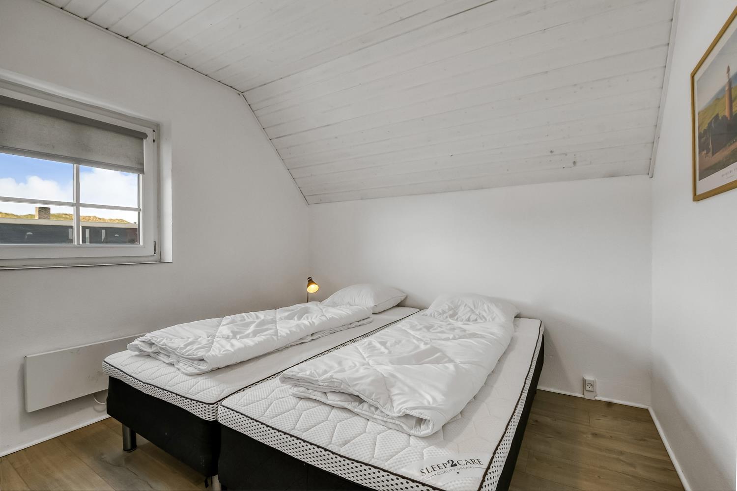 Huset er 199 m2 stort og har 6 dejlige soverum (1DS, 1DS, 1DS, 1DS, 2ES, 2ES). I de 4 værelser med dobbeltseng er der TV med tyske og danske kanaler. I hjertet af huset findes et veludstyret køkken/alrum med alt i hårde hvidevarer, keramiske kogeplader, indbygningsovn, emhætte, opvaskemaskine, mikroovn og køleskab med fryseboks. Nyd maden ved spisebordet, kig ud ad vinduet og se de store høje klitter direkte ved Vesterhavet eller slap af i de bløde kvalitetsmøbler. Se TV på dansk og tysk på husets fladskærm der har fuld Via sat pakke. Der er også radio/DVD. Udgang fra opholdsstuen til husets delvis indhegnede terrasse. Der er lagt et flot, hårdt gulv i både opholds- og soverum. Skulle det blive for koldt, eller skal stemningen blusses op, sætter man blot gang i husets brændeovn, hvor flammerne og den intensive varme kan nydes. Husets wellness pool afdeling rummer også spabad og sauna. Poolen er ca. 25 m2. 3 badeværelser, med toilet, bruser, håndvask samt gulvvarme. Vaskemaskine og tørretumbler er en selvfølge og er placeret i husets entré. Nyt luft til vand anlæg gør huset særdeles energivenligt og bevirker også et billigere forbrug. Barnestol er i huset. Max. 2 husdyr er tilladt. Ikke rygerhus.