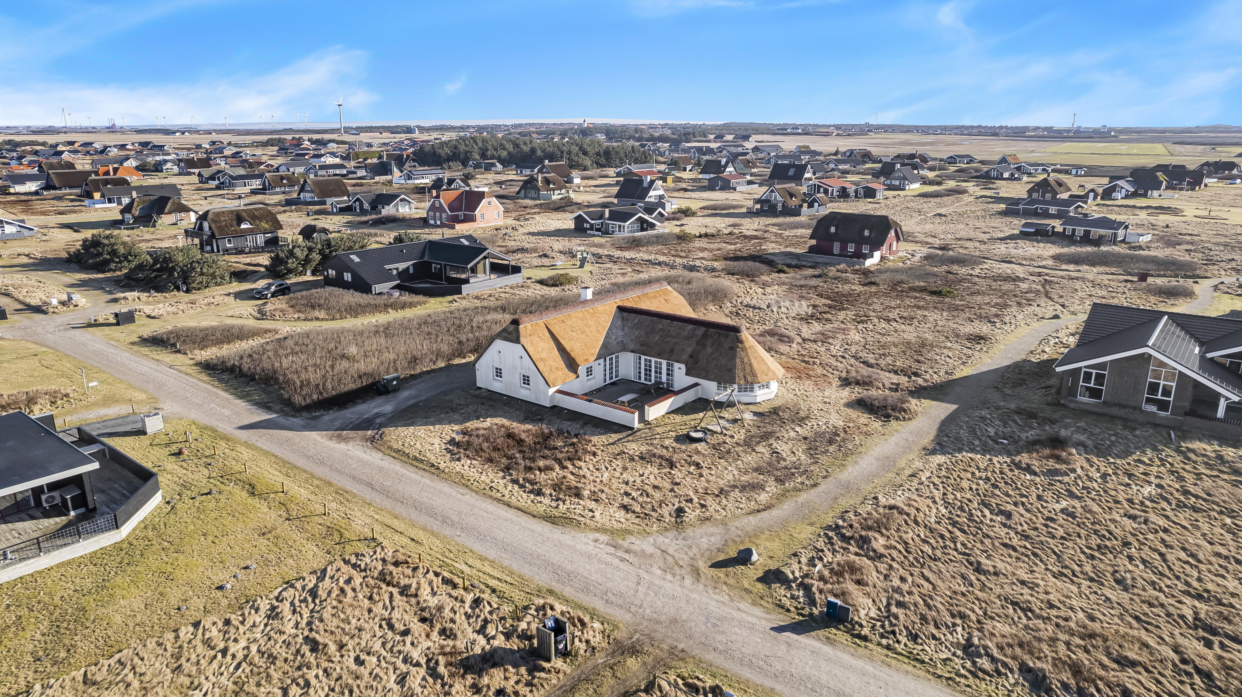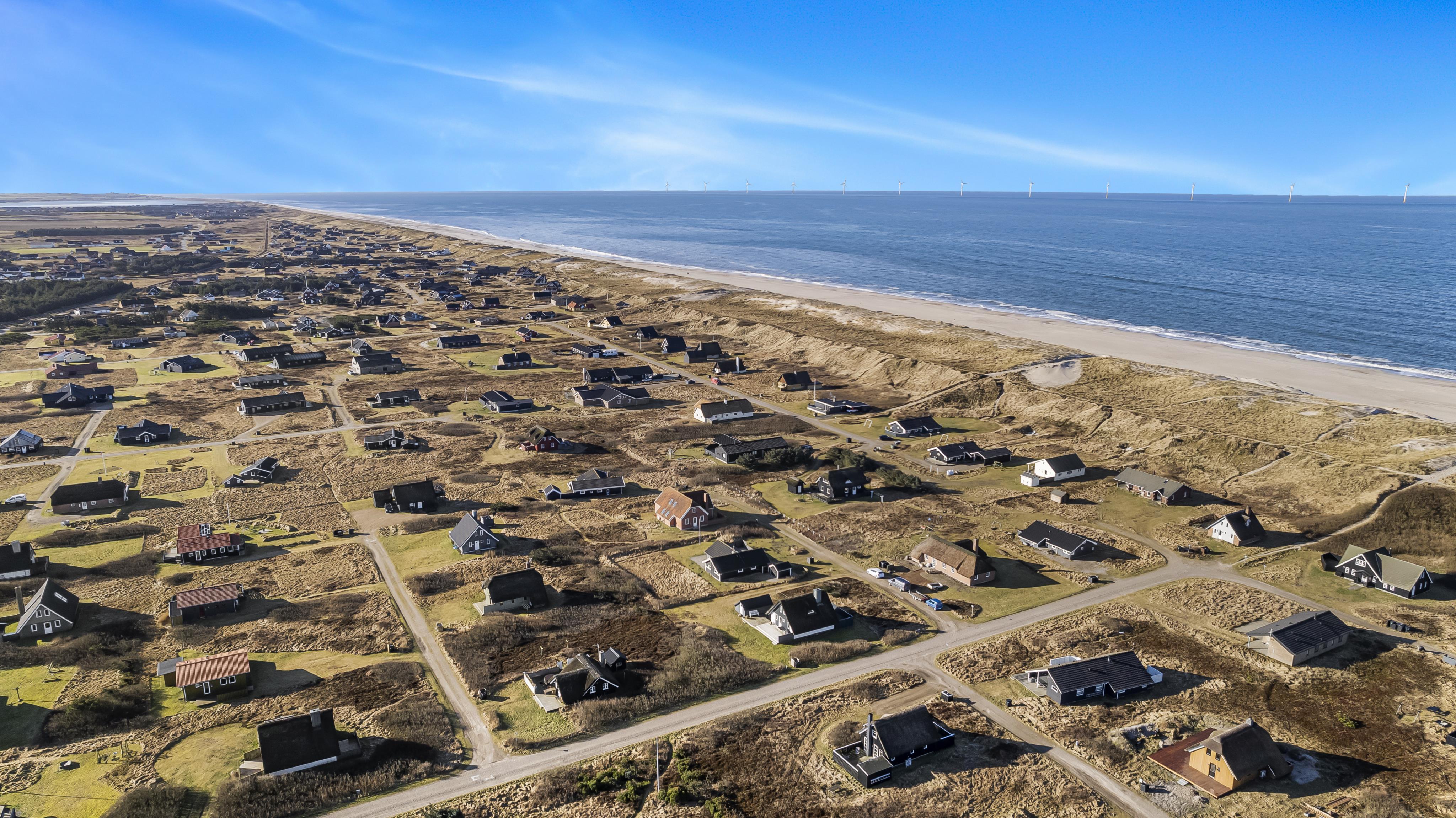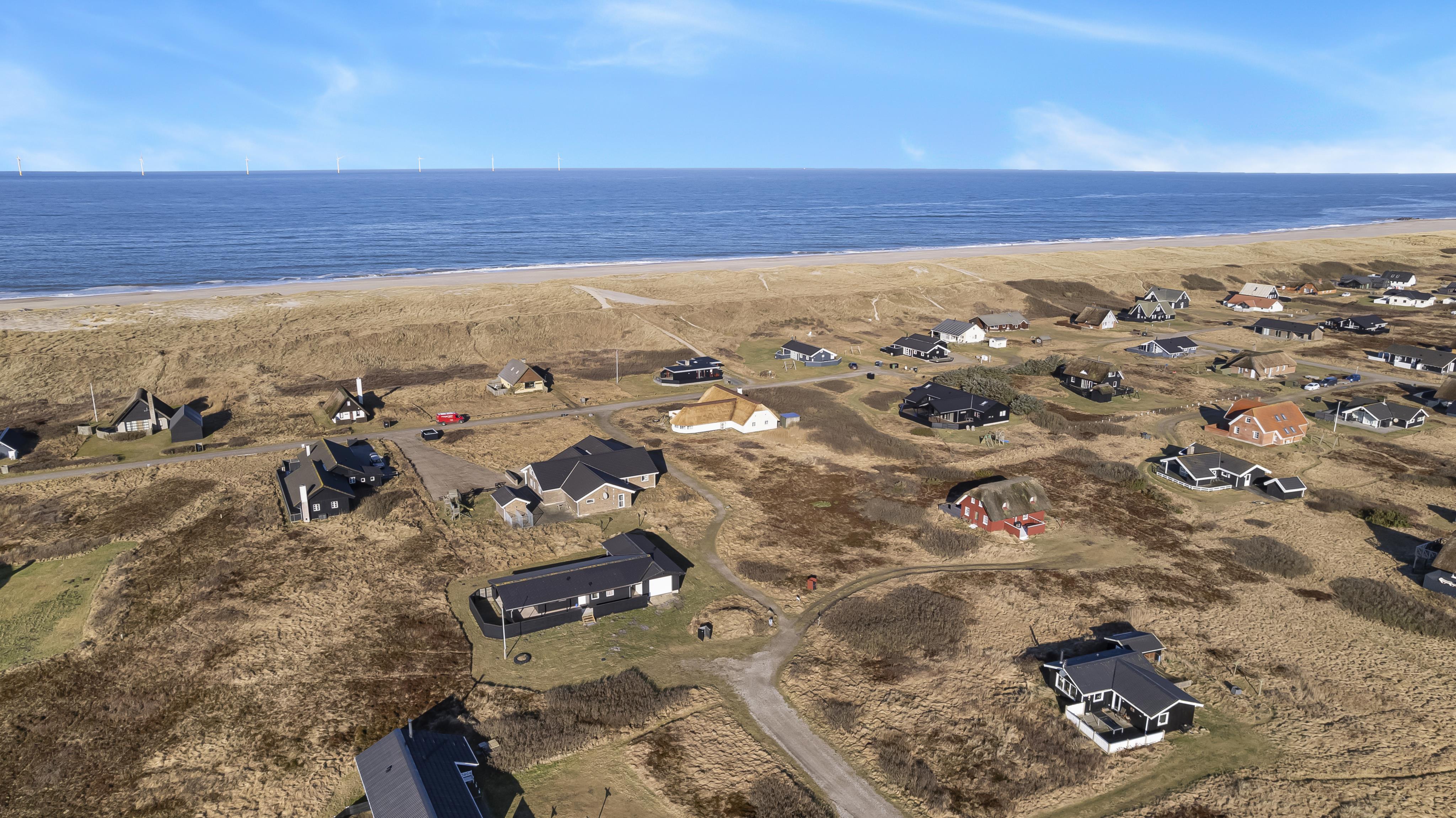 Feriehuset er beliggende på en 2.500 m2 stor klitgrund kun 100 meter fra Vesterhavet. Delvis indhegnet terrasse med borde/bænkesæt, solvogne og grill. Ideelt for både børn og husdyr. Nyd solen, hinanden eller en god grillaften. Gå en tur med hunden i det rolige feriehusområde, henover de høje klitter og straks derefter åbenbarer Vesterhavet sig. Et besøg værd på alle årstider. På den store grund er der gynger til børnene. Huset ligger 800 meter fra dagligvarebutikker. Indenfor kort køreafstand nås både den aktive handelsby i Lemvig med flere specialbutikker eller den unikke fiskerby Thyborøn som udover den aktive fiskerihavn også byder på badestrand og op til flere aktivitetstilbud, som alle er et besøg værd.