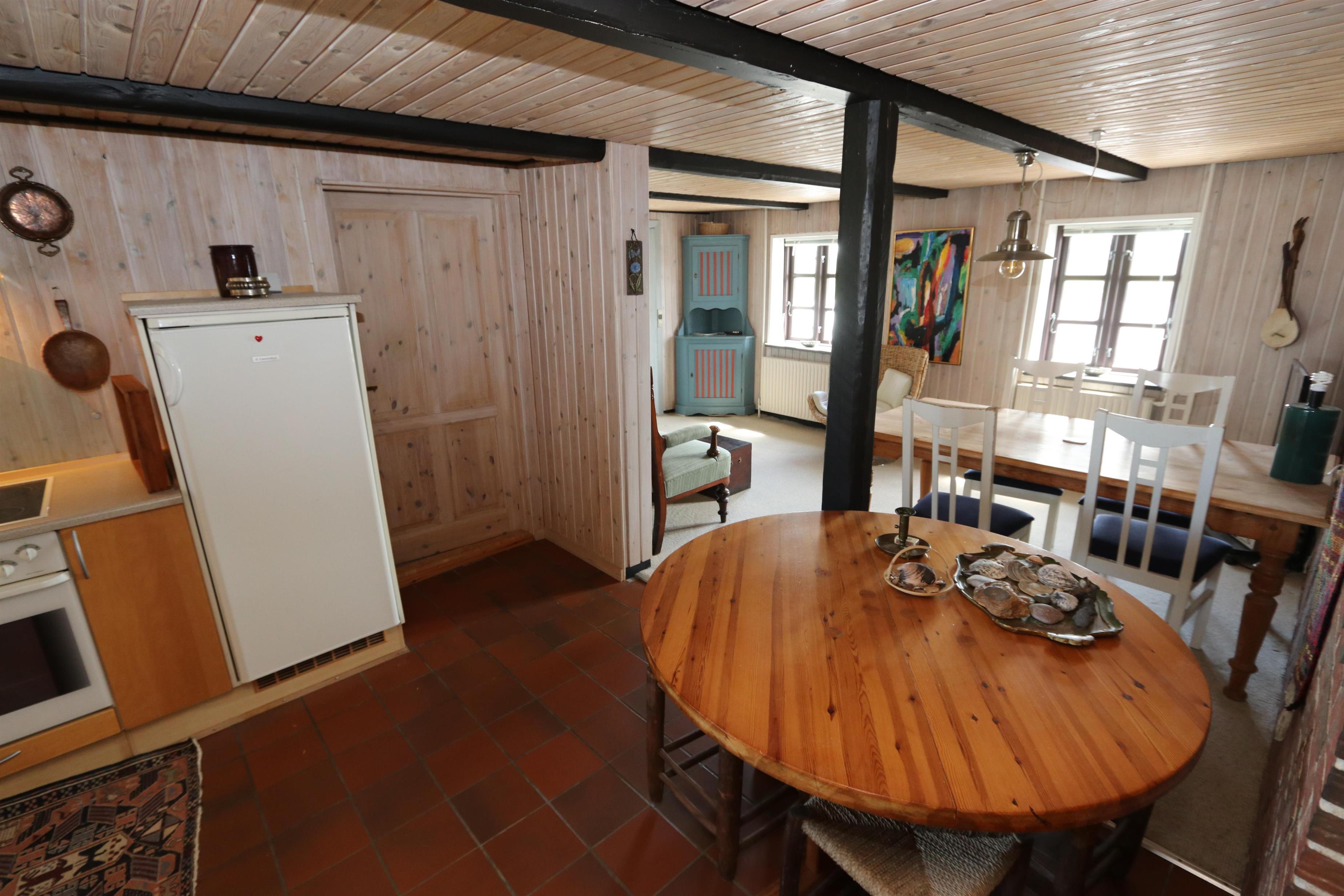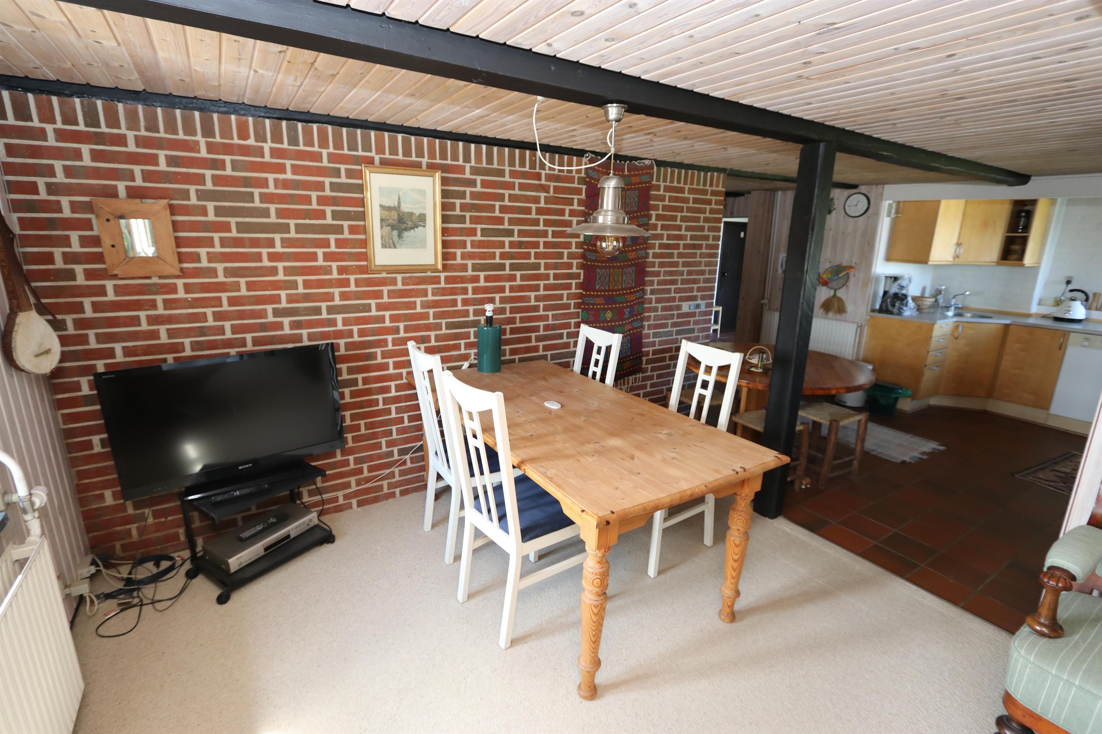 Klitgård med 3 soverum (1DS, 1DS, 1DS). Når bilen er parkeret ved den kombinerede indgang og overdækkede morgenterrasse kommer I ind i et brygges med ekstra håndvask, vaskemaskine, fryser (185 L) og ekstra aflæggeplads. Badeværelse med bruser, toilet, håndvask, sauna og klinkegulv med gulvvarme. Hyggelig kombineret køkken og opholdsrum. Køkken med keramiske kogeplader, indbygningsovn, emhætte, køleskab, opvaskemaskine og mikroovn. I åben forbindelse med køkkenet er der et mindre opholdsrum med spisebord, polstermøbler og med mulighed for streamingtjenester via Chromecast. Fra opholdsrummet kommer man via en lille entré ind i en hyggelig ”pejsestue” med brændeovn, stort spisebord, polstermøbler og klinkegulv med gulvvarme. Det perfekte rum for ”ægte dansk hygge” uden TV. I underetagen er den oprindelige konstruktion med synlige bjælker bevaret, her er loftshøjden ca 1,9 m. På overetagen er der højt til loftet, helt op i kip med synlige hanebånd. Huset opvarmes med luft til vand varmepumpe. Ikke ryger hus. 1 husdyr tilladt.