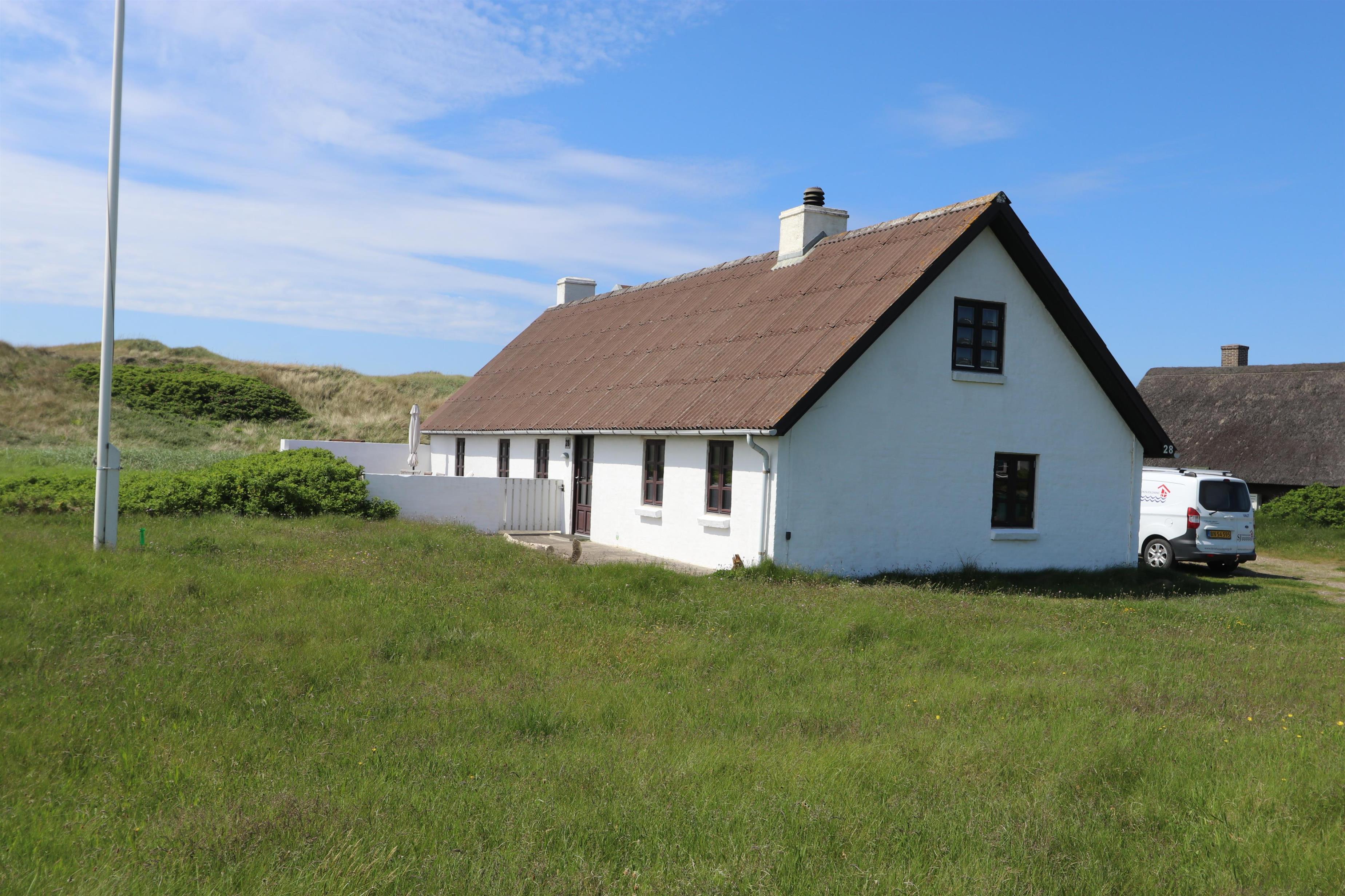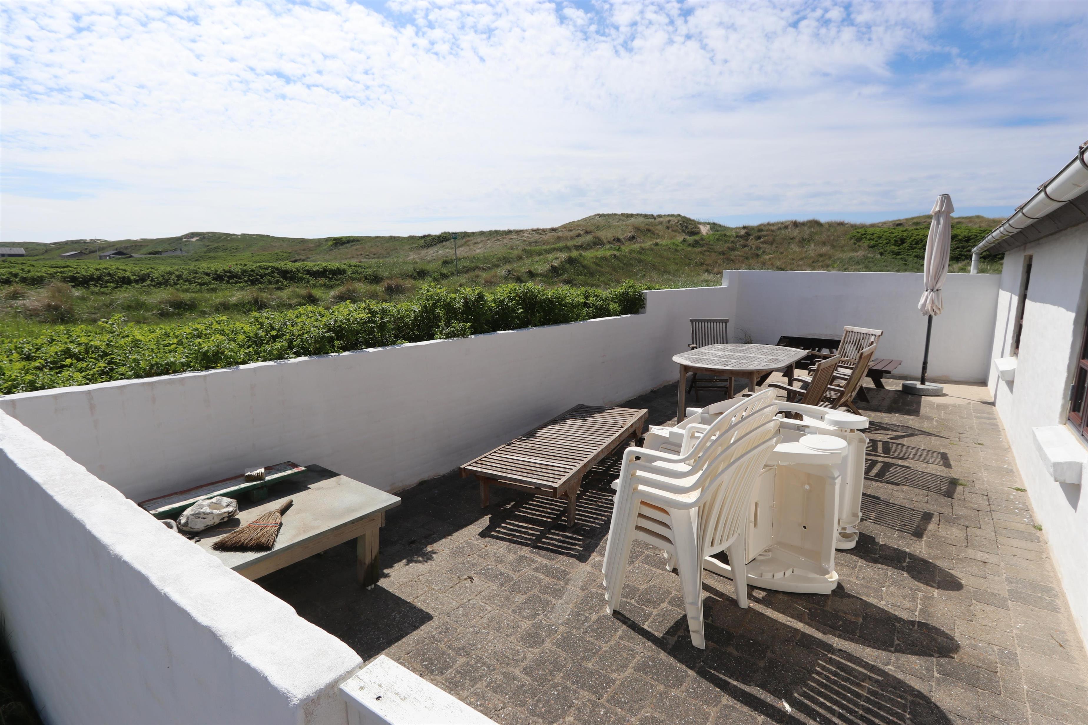 Fra bryggers og fra entré er der udgang til de 2 terrasser. Nyd den indhegnet terrasse med havemøbler, liggestole og grill eller den overdækkede morgenterrasse med havemøbler. Lige ved huset er der offentlige sti og efter en MEGET kort gåtur over klitterne åbenbarer Vesterhavet sig i alt sin pragt. Huset ligger på en knap 1.400 m2 stor klitgrund kun 50 meter fra Vesterhavet. Nyd en ferie tæt ved Vesterhavet i en charmerende Klitgård med en helt unik beliggenhed. Parker bilen og nyd at I resten af ferien kan gå til stranden på under 5 minutter.