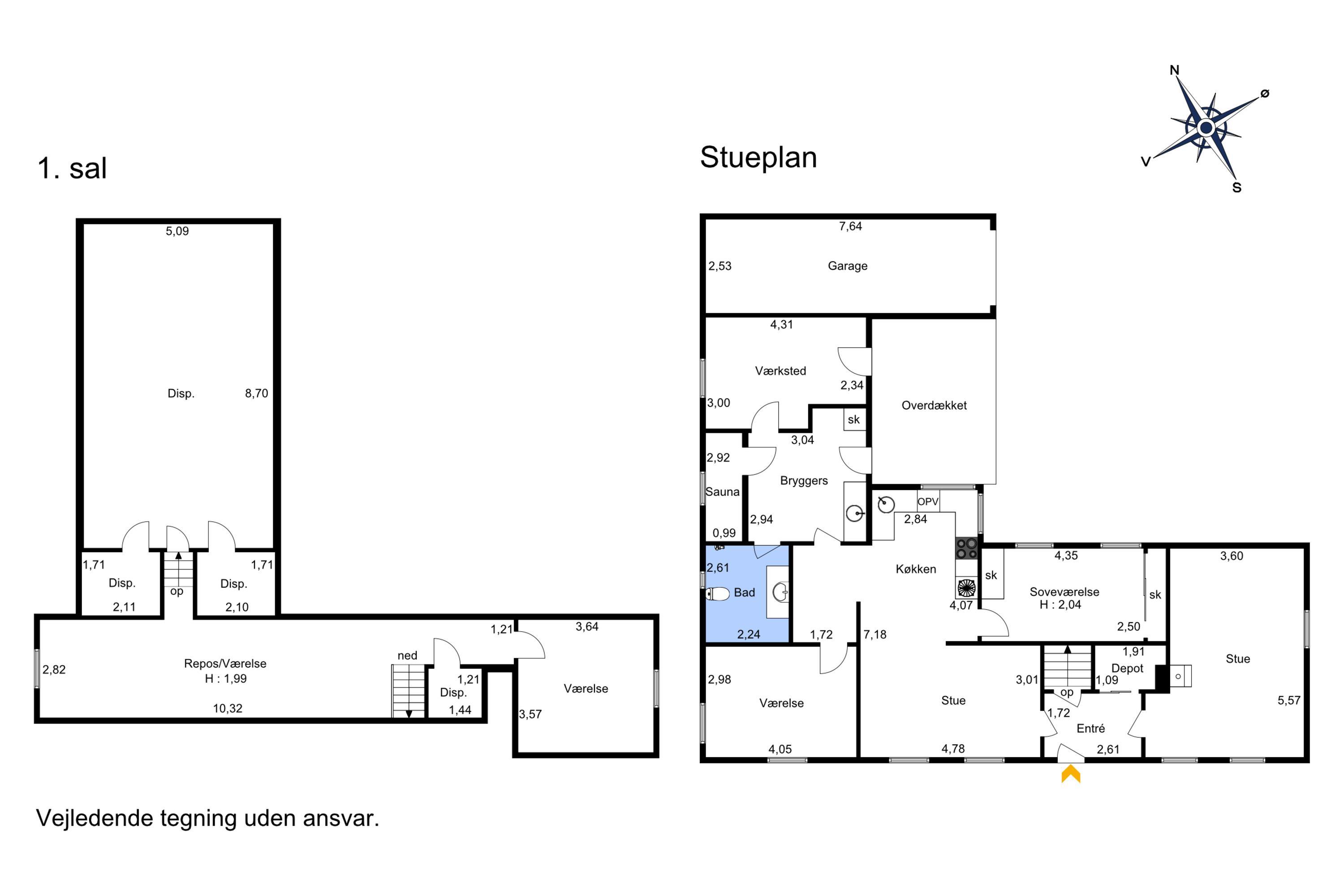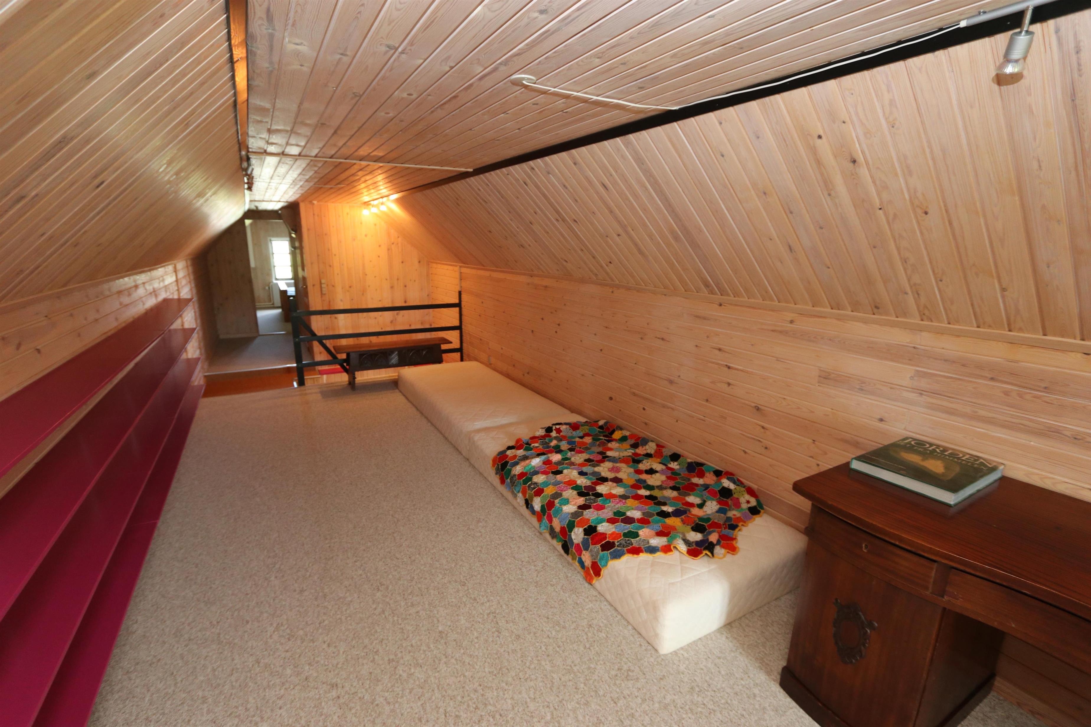 Via trappen i den lille entré kommer I via en stejl trappe op på 1. Etage. Her er der 1 soverum (1DS) samt et stor rum med mulighed for leg, spil eller måske bare fordybelse samtidig med man nyder den unikke beliggenhed med udsigt til klitterne.