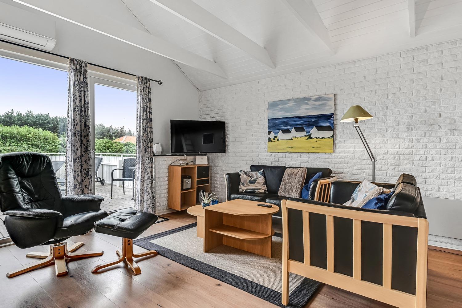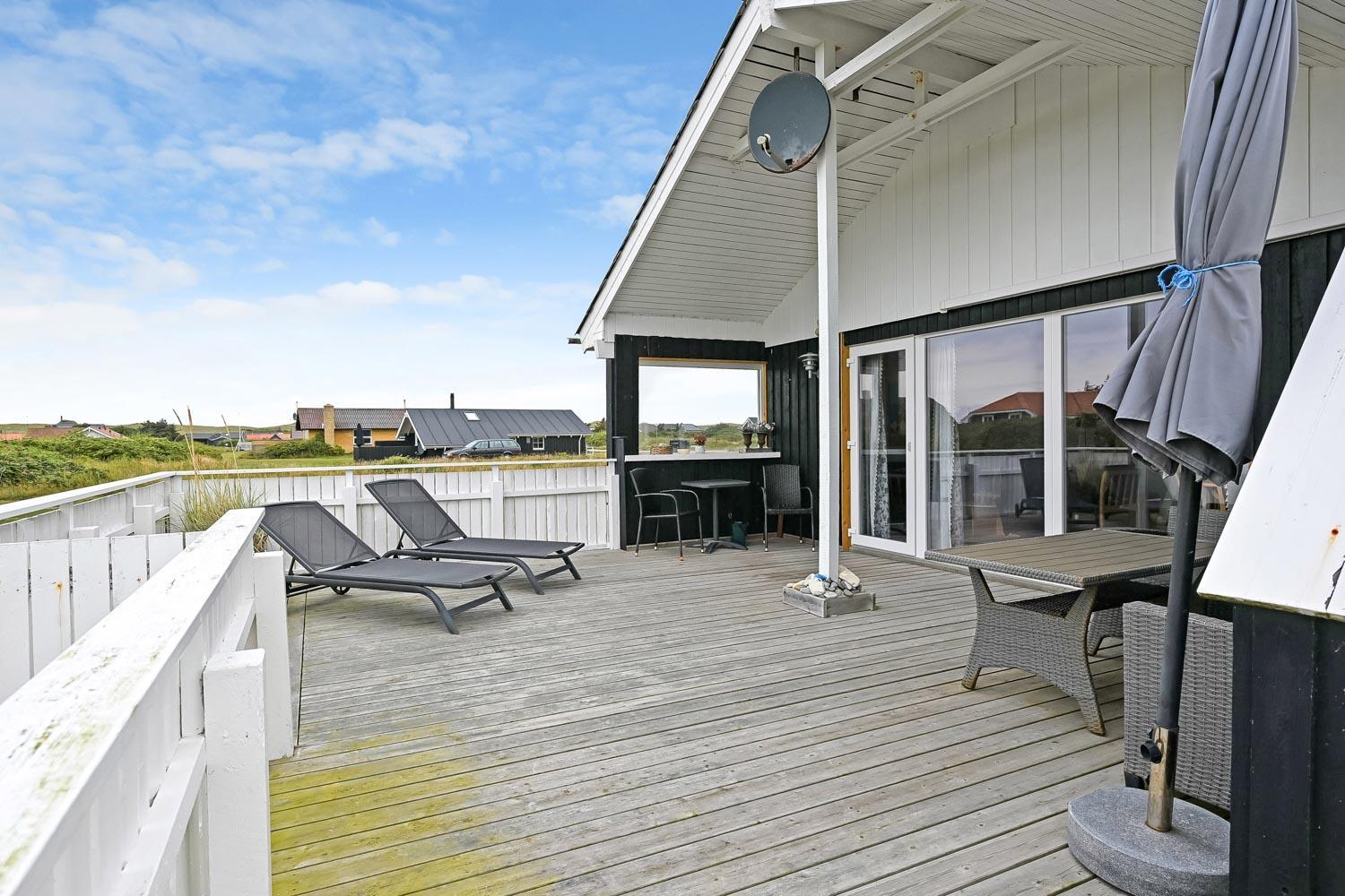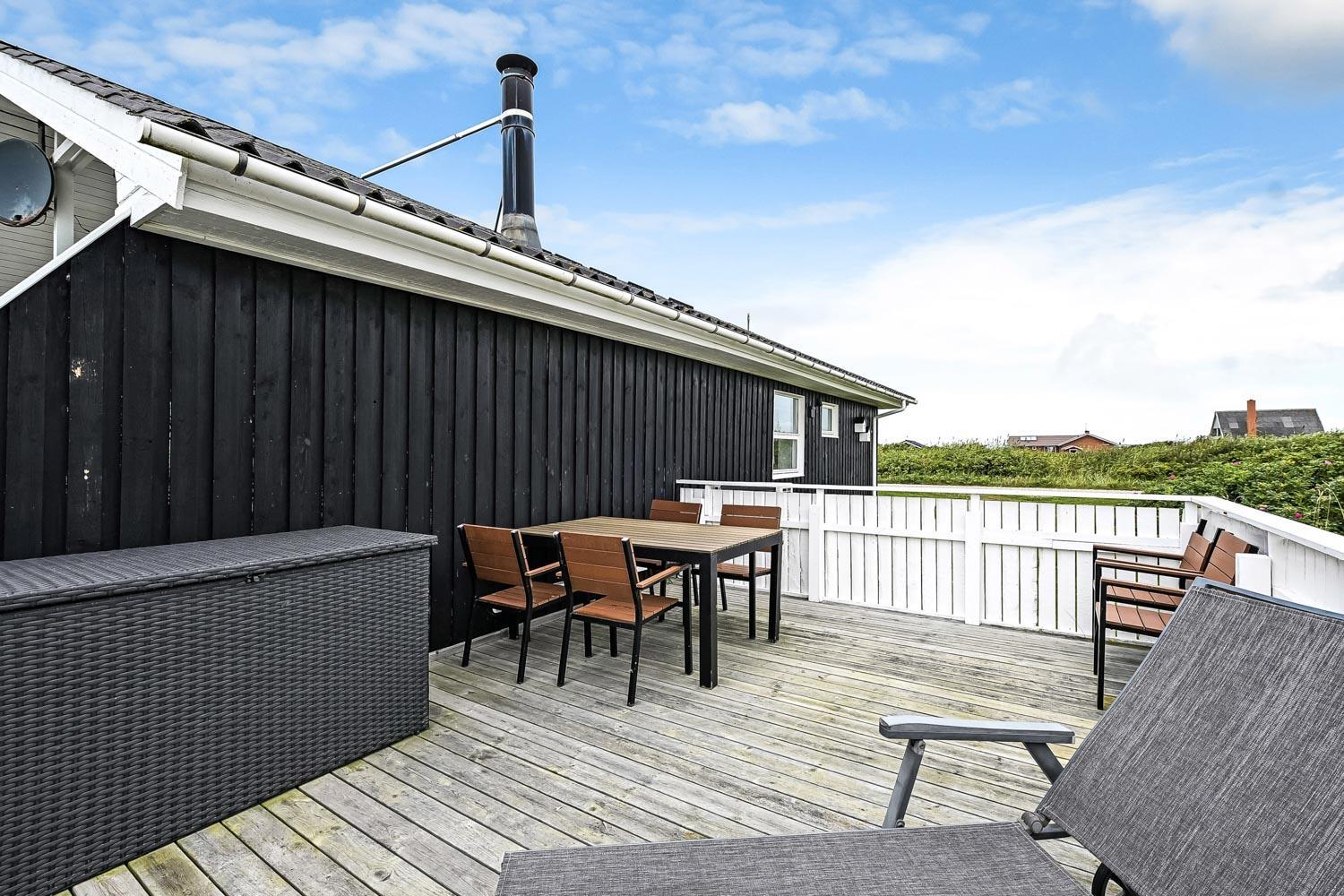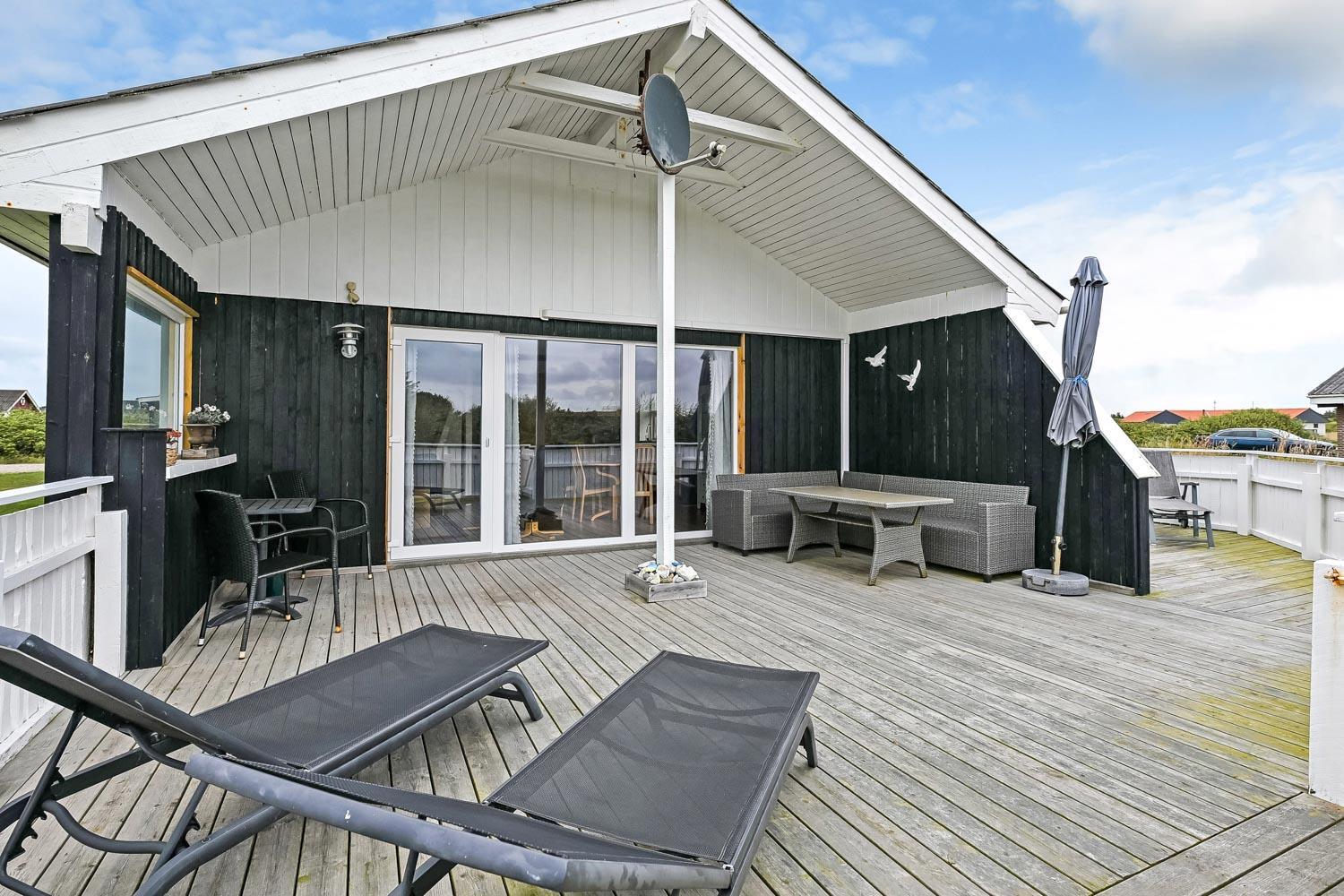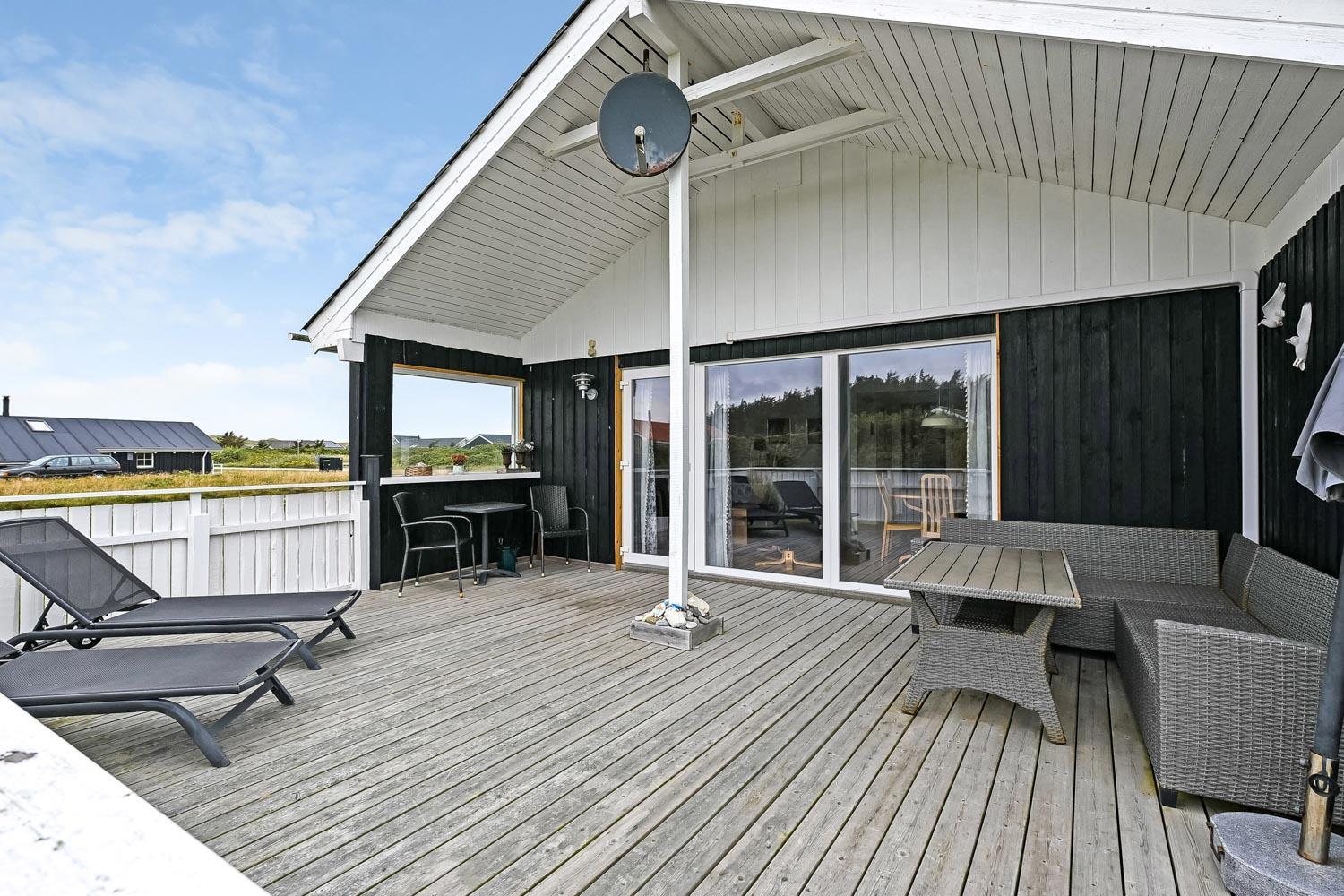 Velbeliggende lyst og venligt murstenssommerhus beliggende kun 300 meter fra Vesterhavet med en aflukket sydvendt terrasse. Her er 2 hunde tilladt. Badeværelse med sauna. Rygning er ikke tilladt. Gratis trådløs internetadgang.