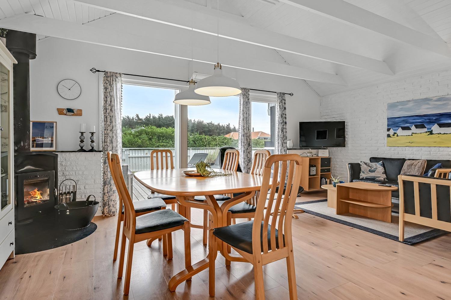 Fra huset er der kun 1600 meter til indkøbsmuligheder som Dagli'Brugen og Aldi i Harboøre. I retning vest er der kun 300 meter til stranden og Vesterhavet. Her er der en stor og bred strand hvor der altid er masser er plads og er et godt udgangspunkt for en god badedag. Andre aktiviteter på stranden er lystfiskeri, ravsøgning, drageflyvning og de små elsker at bygge sandslotte. Der er 14 km til Thyborøn som har attraktioner som Kystcentret, Jyllandsakvariet eller een af de mest børnevenlige Vesterhavsstrande. Ikke rygerhus.
