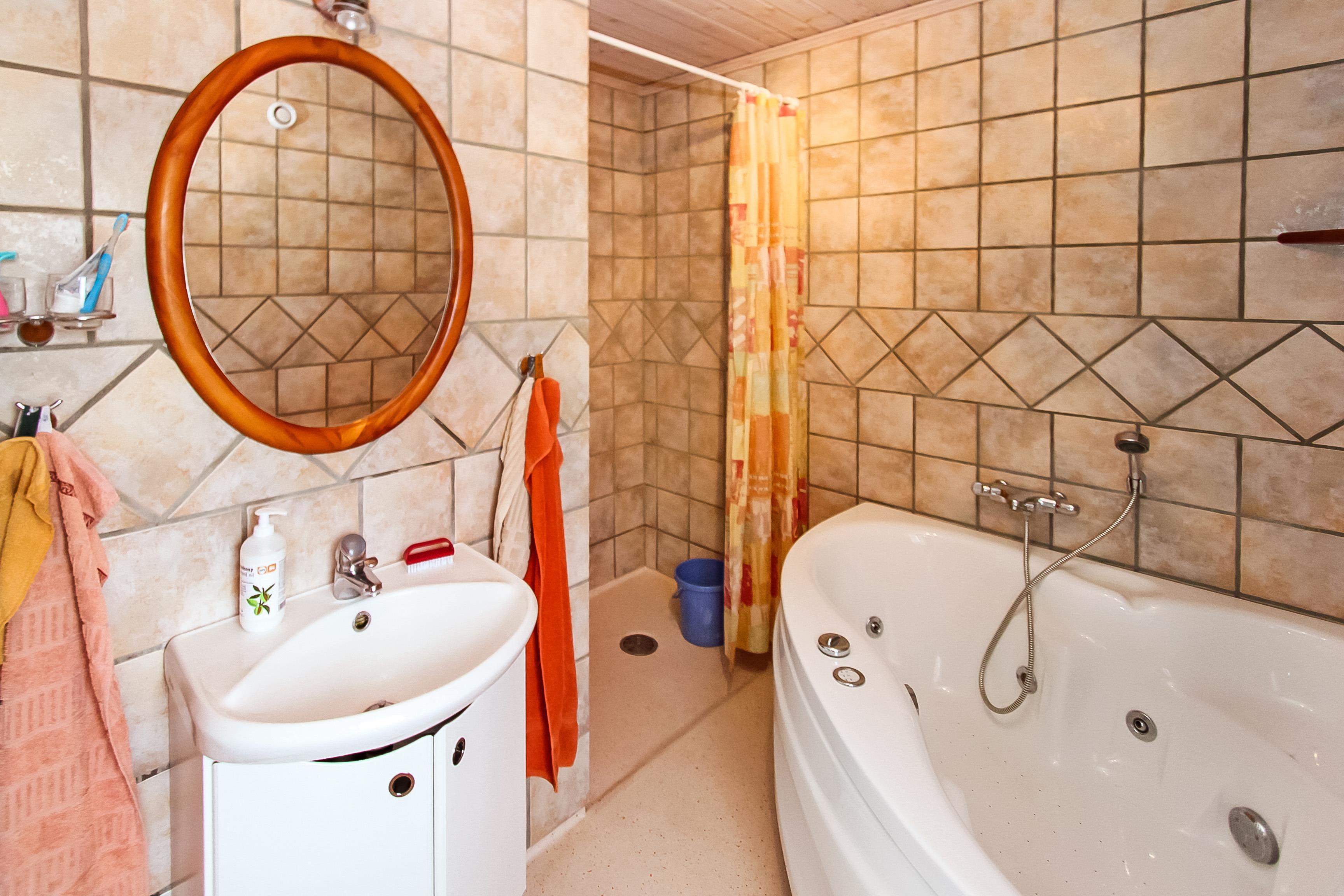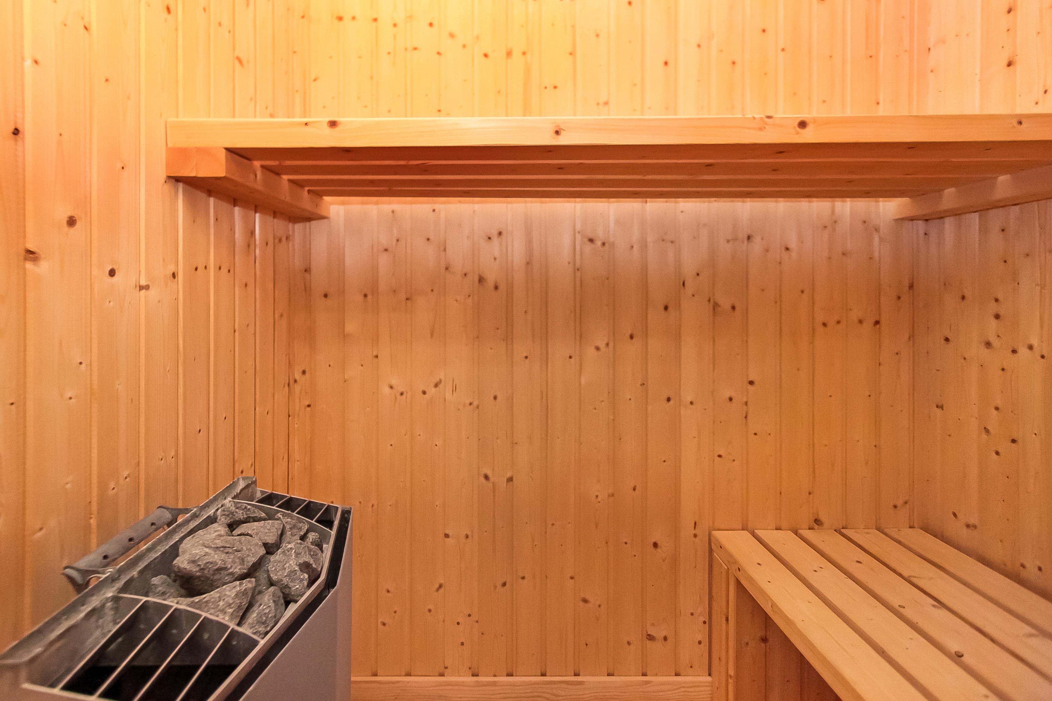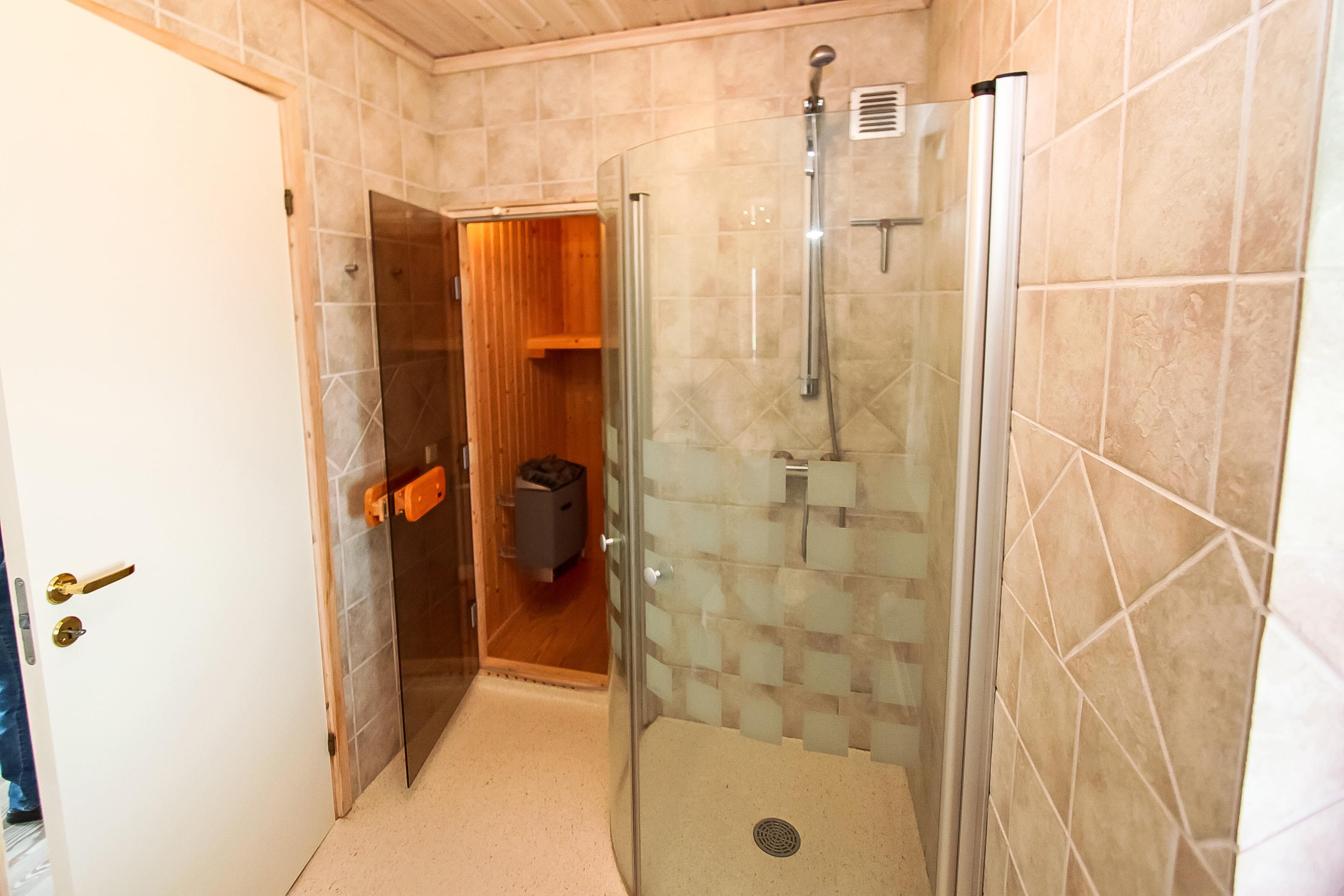 Der er 2 badeværelser, hvoraf det ene har adgang til sauna, og det andet byder på luksus i form af en inviting whirlpool. Derudover er der vaskemaskine og barnestol til rådighed.